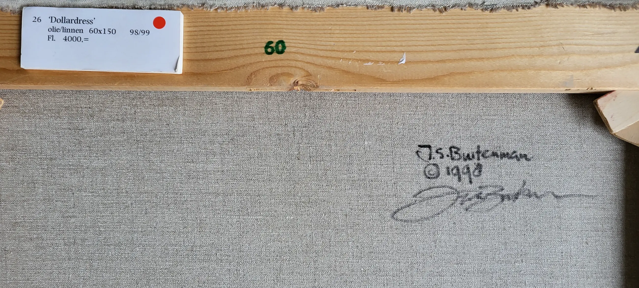Dollardress. Origineel fraai olieverf op linnen van Jeroen Buitenman. Oorspronkelijke galerieprijs 4.000,- (zie foto). Gesigneerd linksonder.