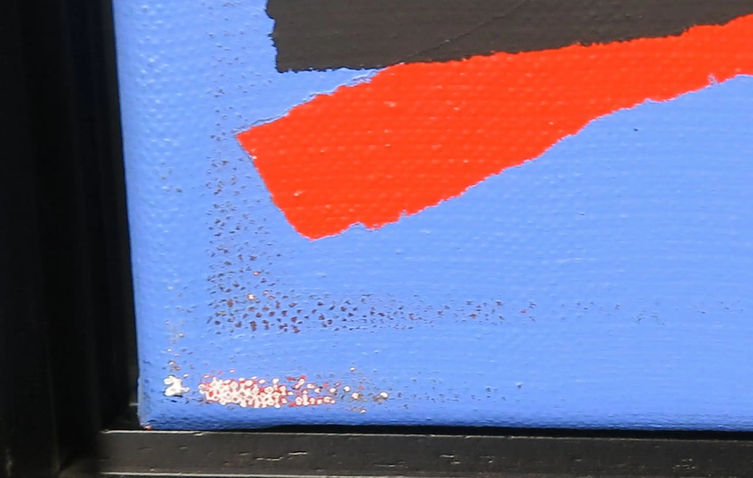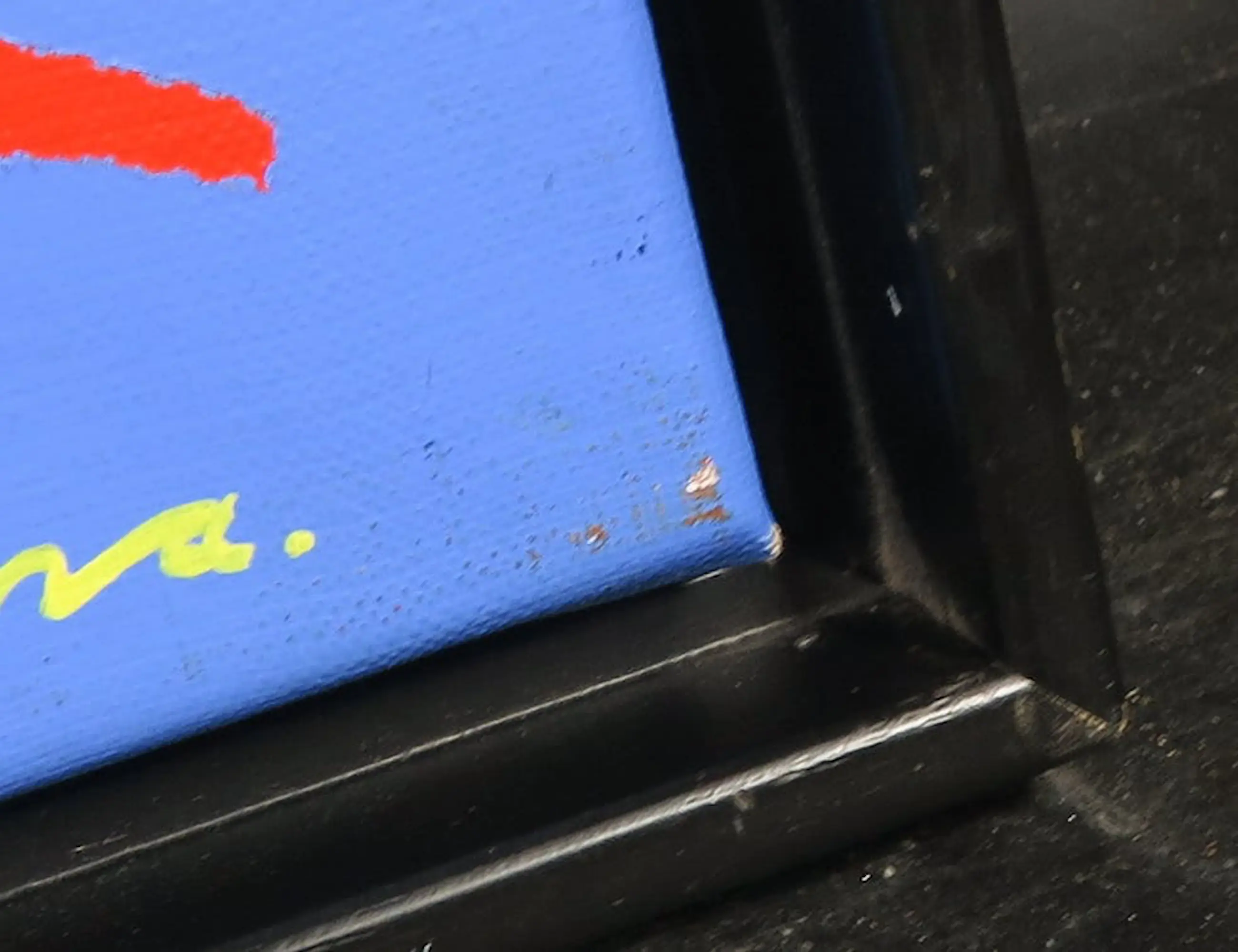 | Slijtagesporen aan de randen van het doek, zie de detailfoto's voor een indruk. | |