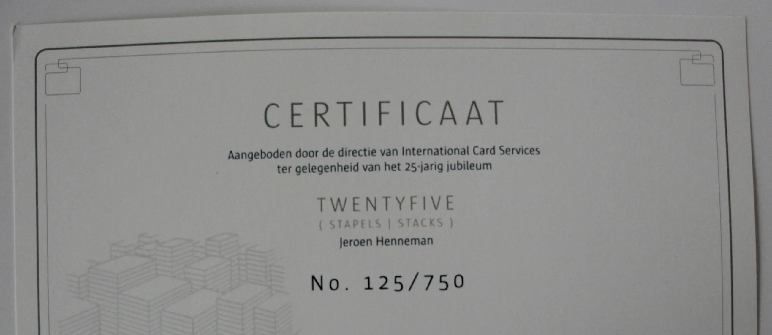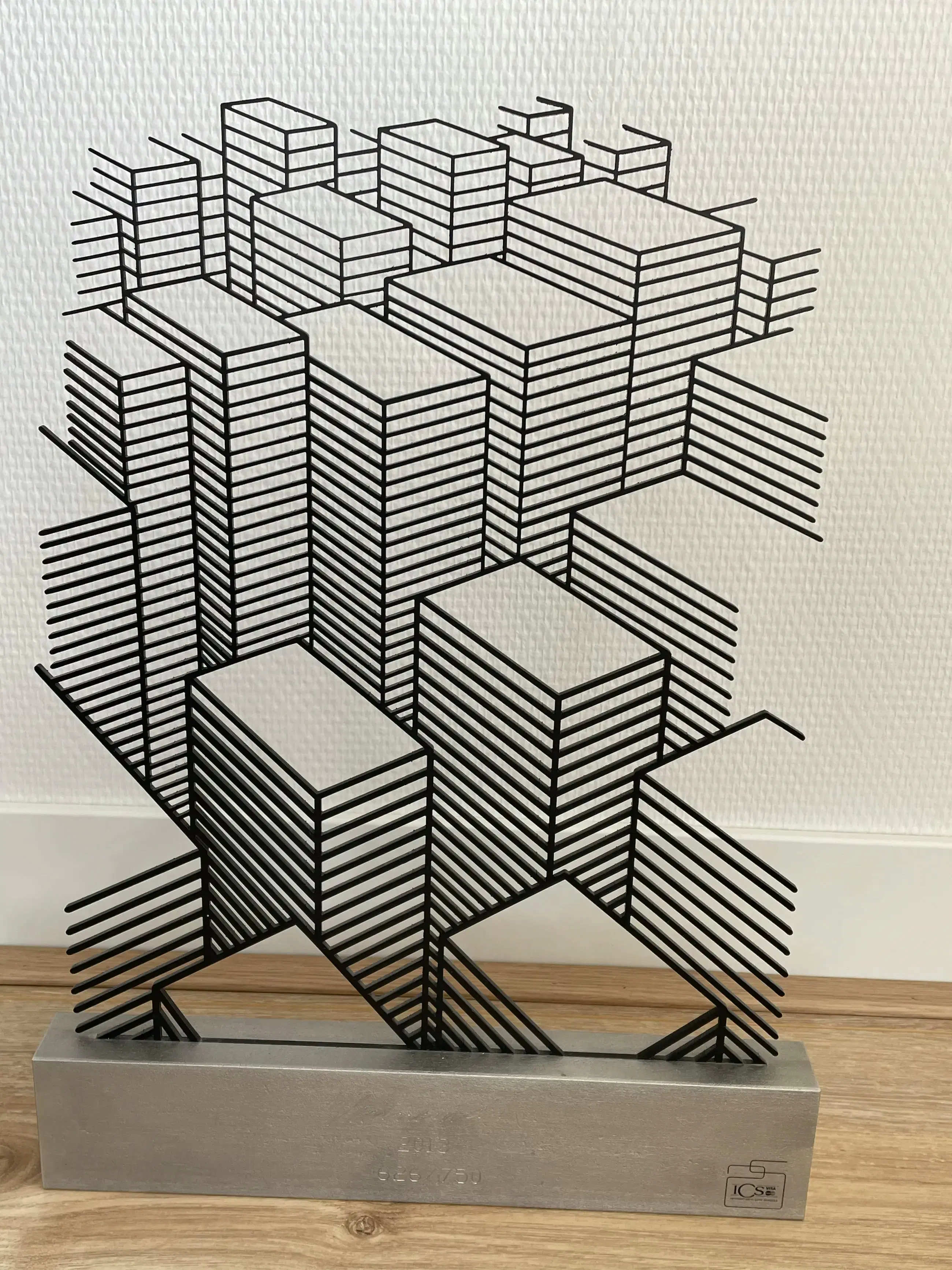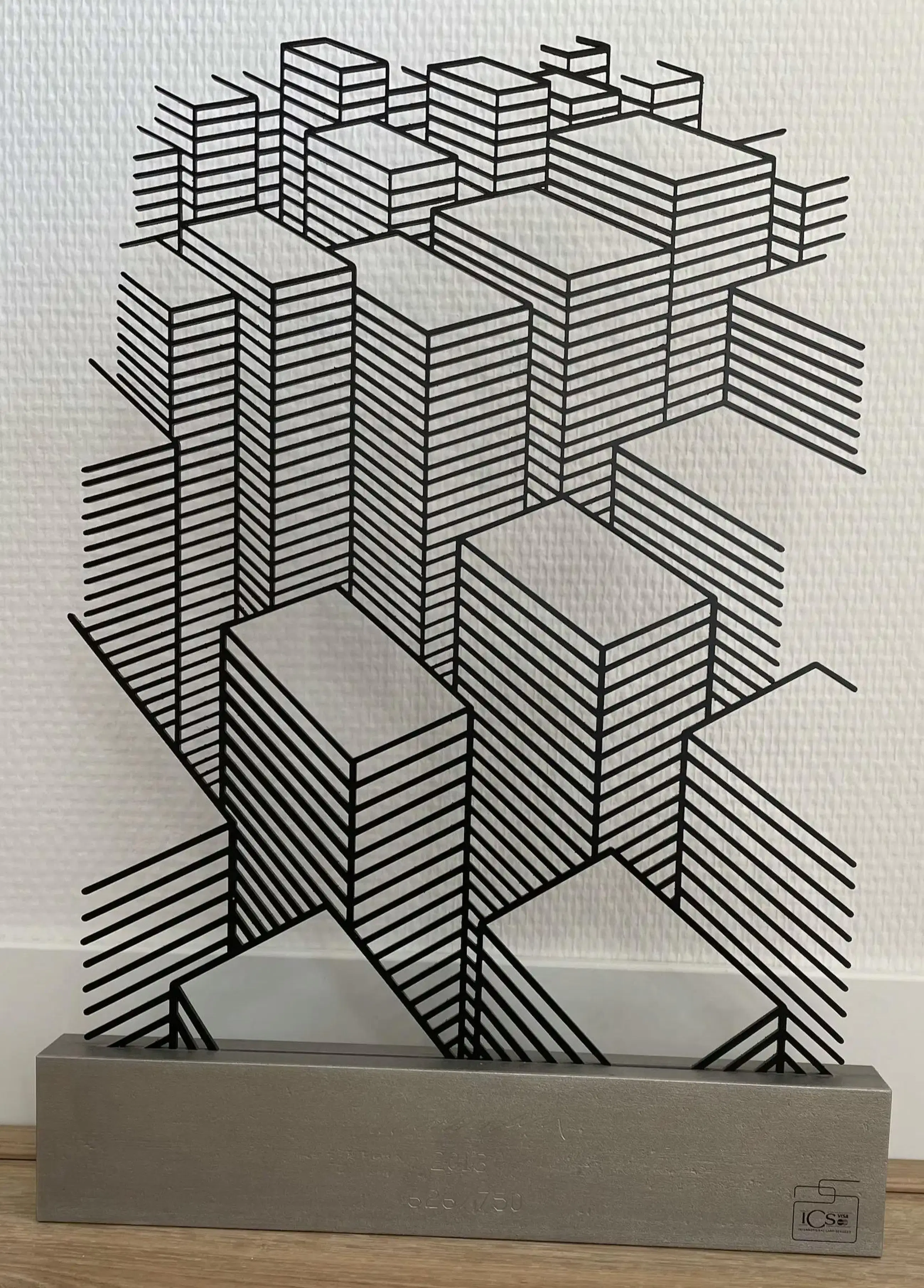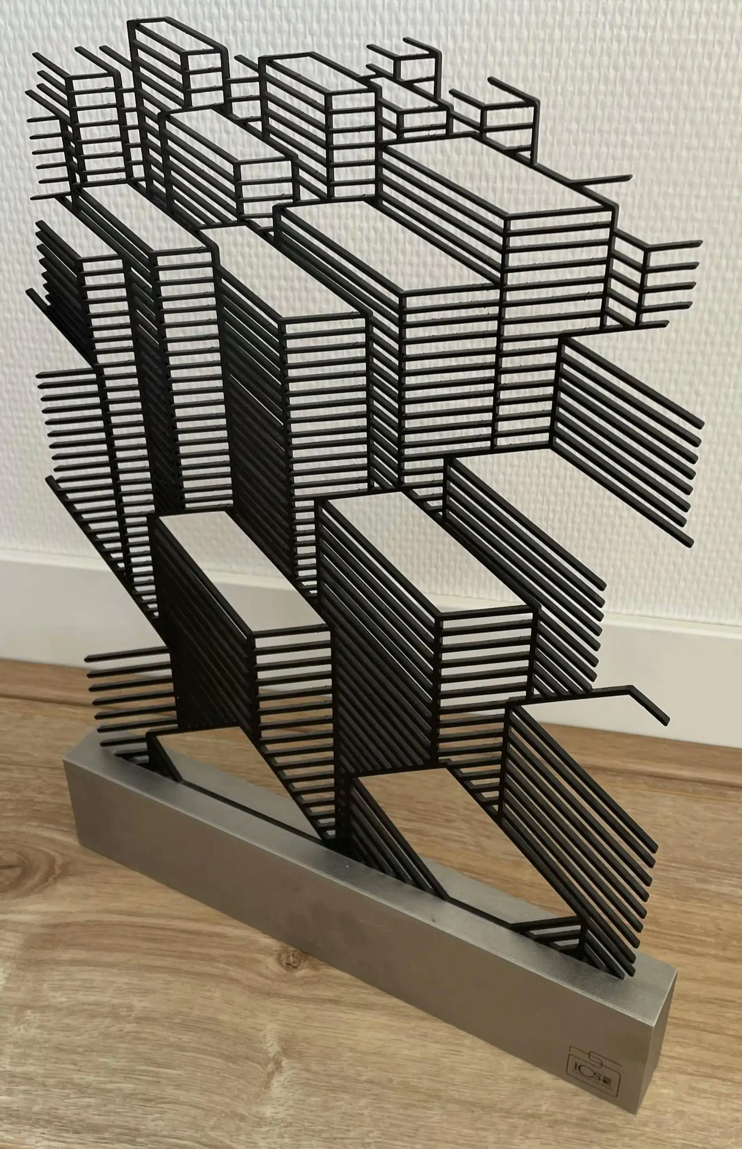 3D object van Jeroen Henneman. Gemaakt ter gelegenheid van het 25-jarig jubileum van International Card Services ( ICS). Het object/kunstwerk wordt geleverd in originele verpakking inclusief boekje , certificaat en verpakking. Object is vervaardigd van RVS | Stainless steel en zwartgelakt staal. Oplage: 125/750. Afmetingen object: H38 x b25 x d4cm. Gewicht: 5kg. Het object is op de sokkel, gesigneerd door de kunstenaar.