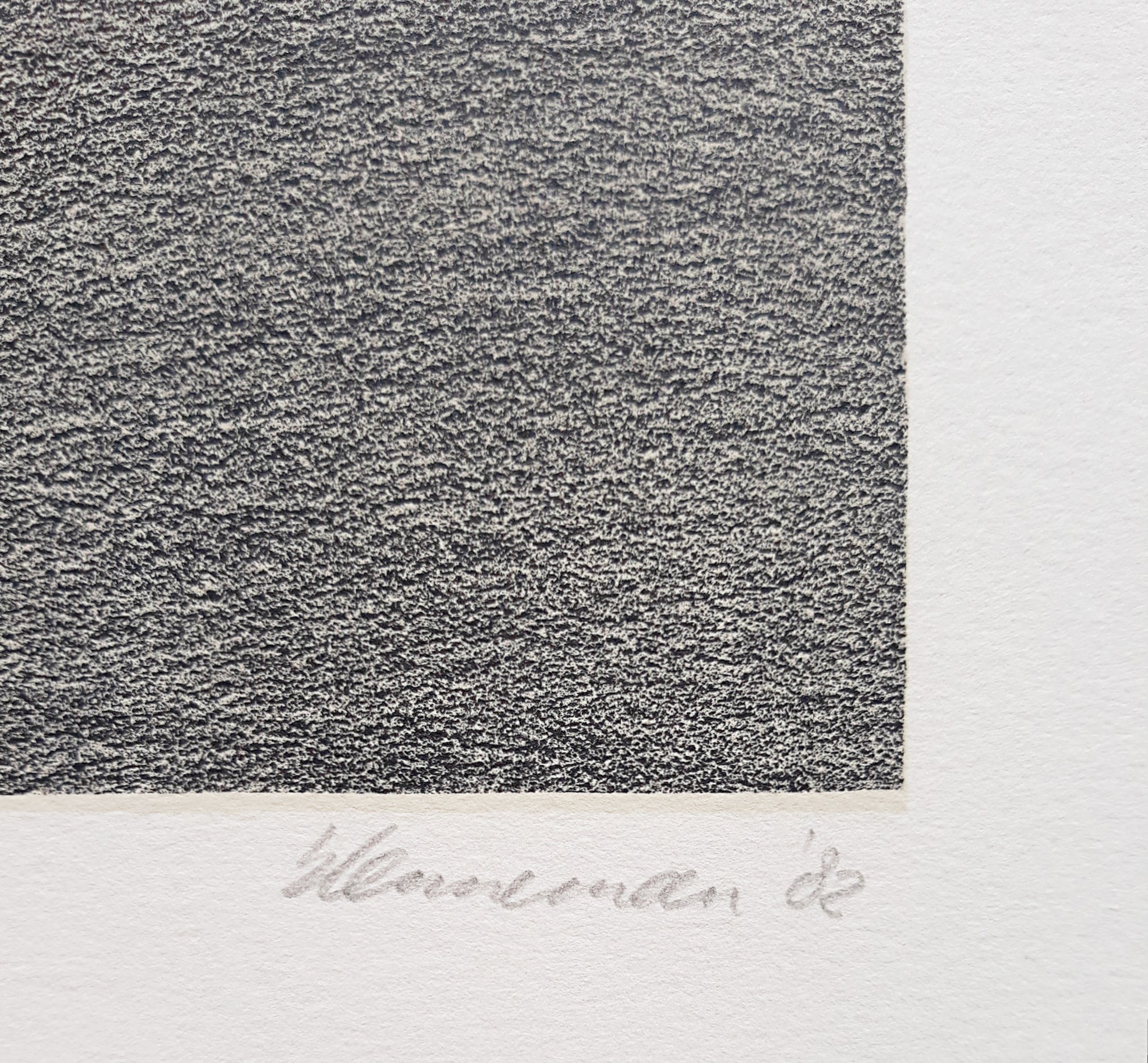 Intrigerend, karakteristiek werk van Jeroen Henneman. Litho op geschept papier, met potlood gesigneerd, gedateerd (‘82) en genummerd (2/75). In uitstekende conditie.