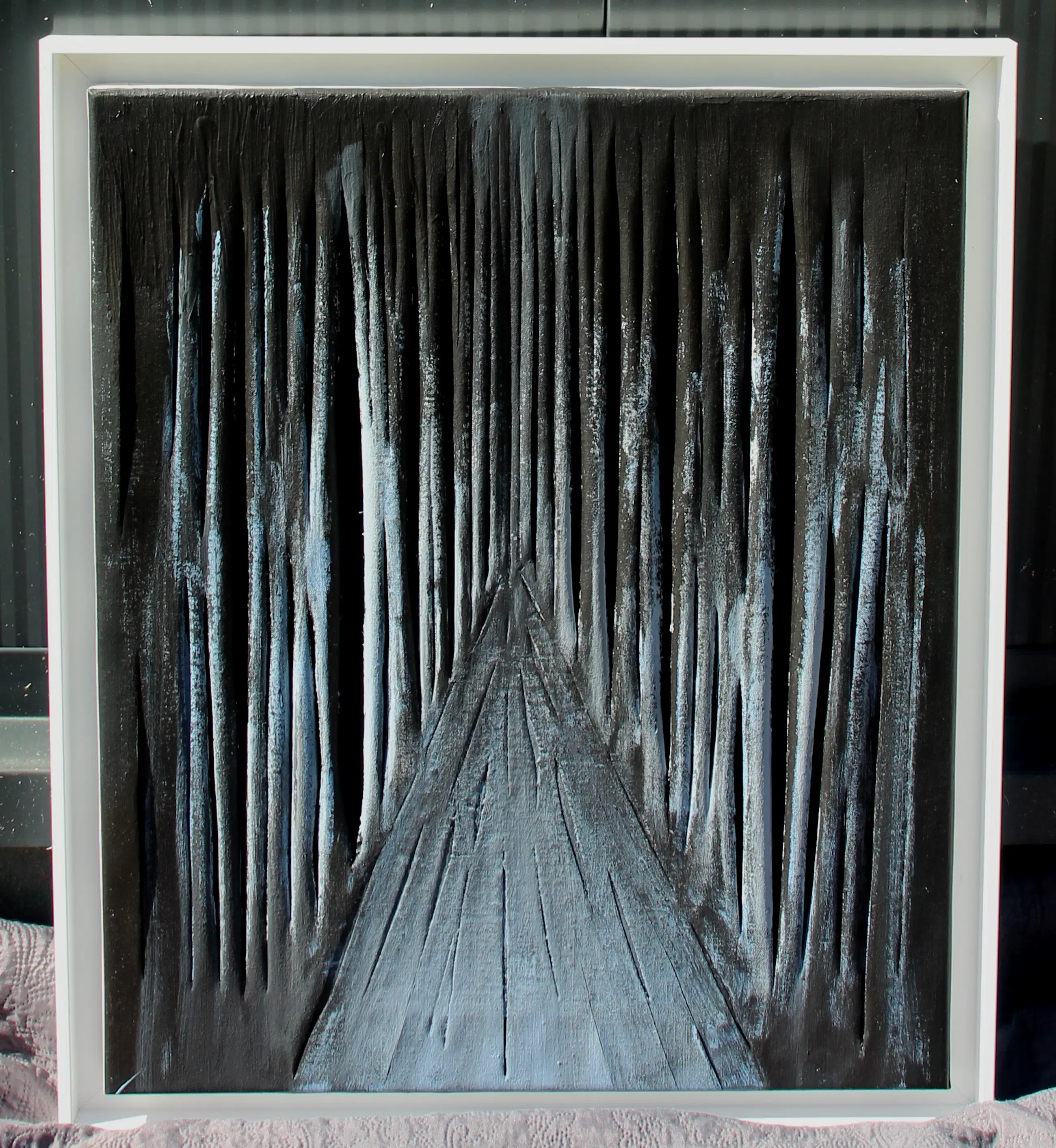 Titel: Weg I. Afmetingen incl lijst: H66cm x b56cm. Afmetingen voorstelling: H60 x b50cm.