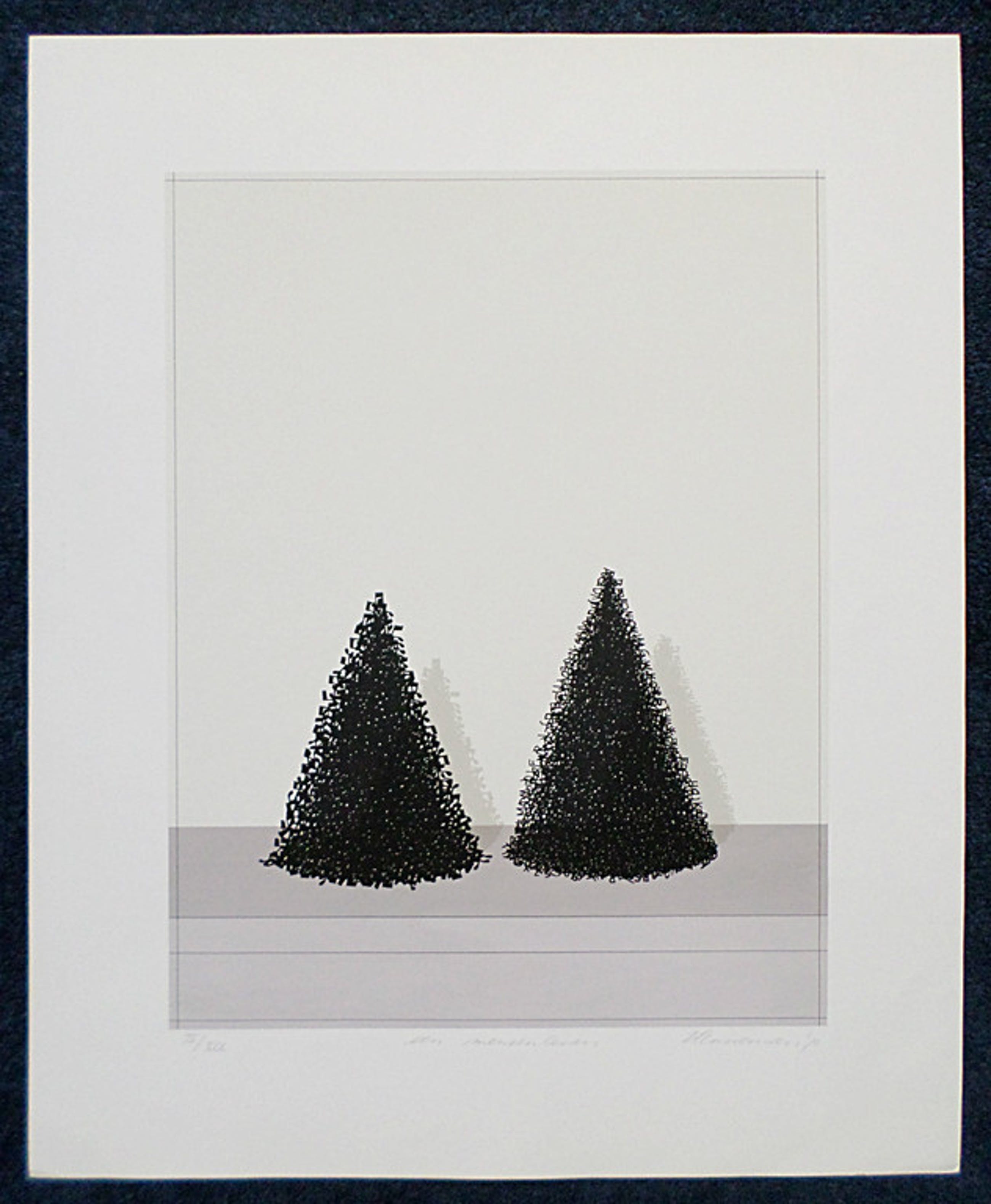 Mooie strakke Jeroen Henneman uit 1972 op dik glad papier. Handgesigneerd en genummerd. Dit is nummer 4 (IV) uit een oplage van slechts 30 (XXX) stuks. In uitstekende conditie, waarschijnlijk nooit ingelijst geweest en altijd in een map gelegen want nauwelijks of geen verkleuring.