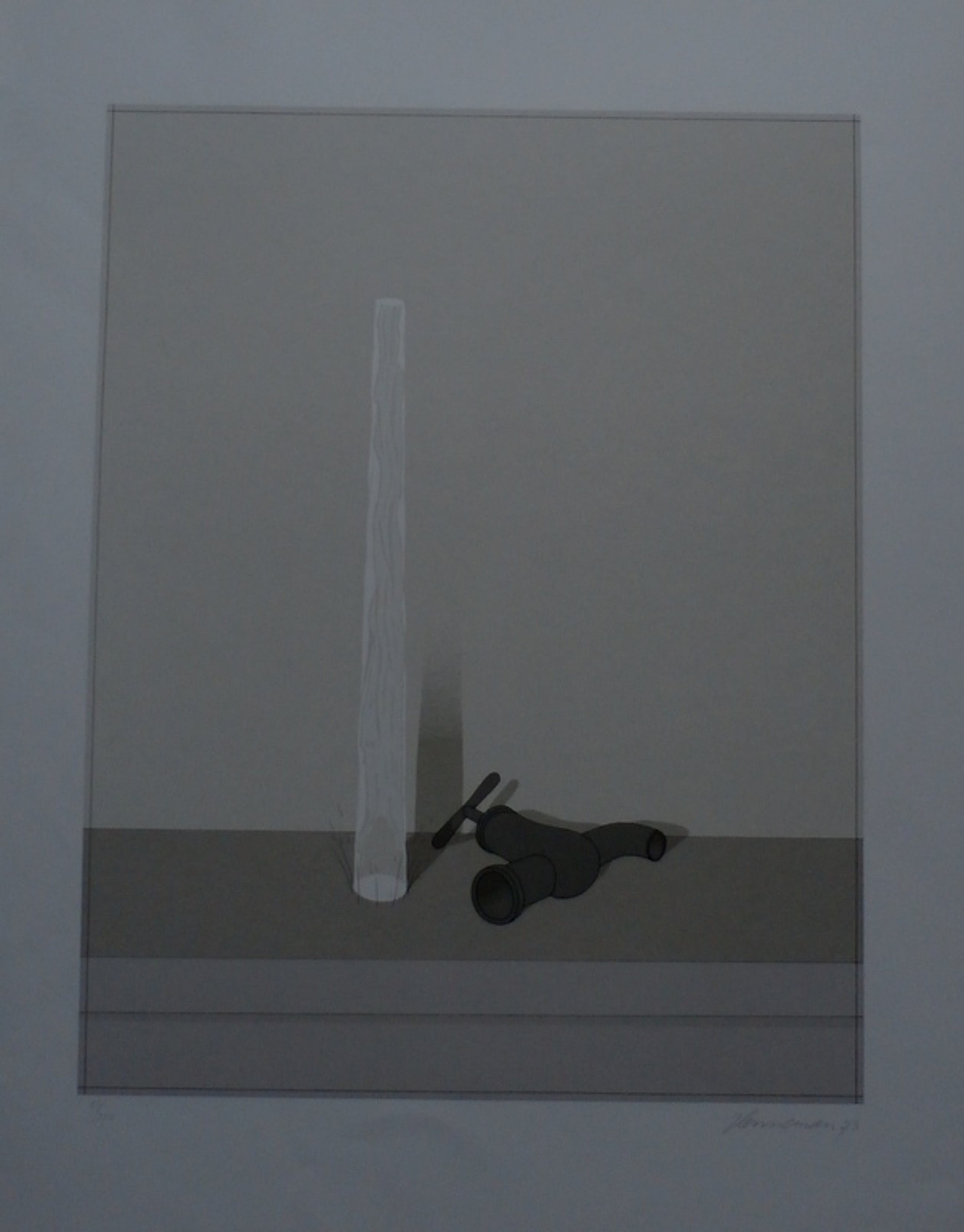 Zeefdruk van Jeroen Henneman. Titel: Kraan en waterstraal. Jaar: 1973. Nummer: 53/190. Afmetingen: h72 x b57 cm. Handgesigneerd rechts onder.