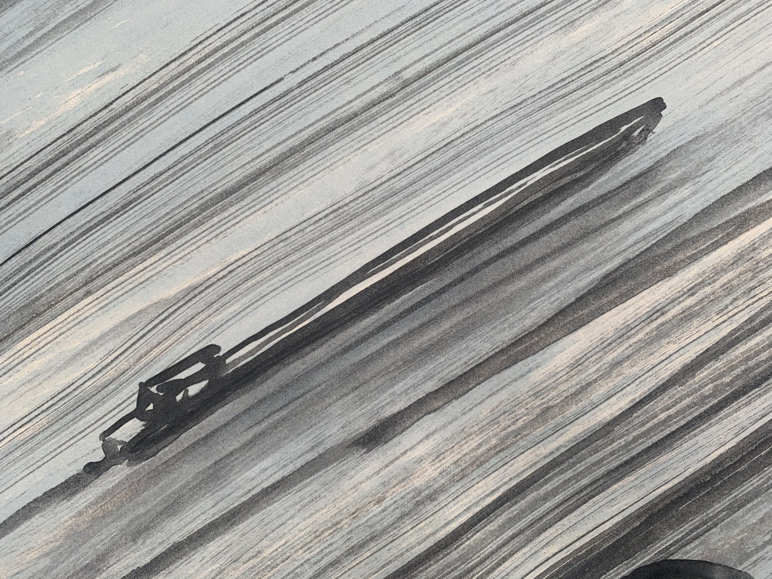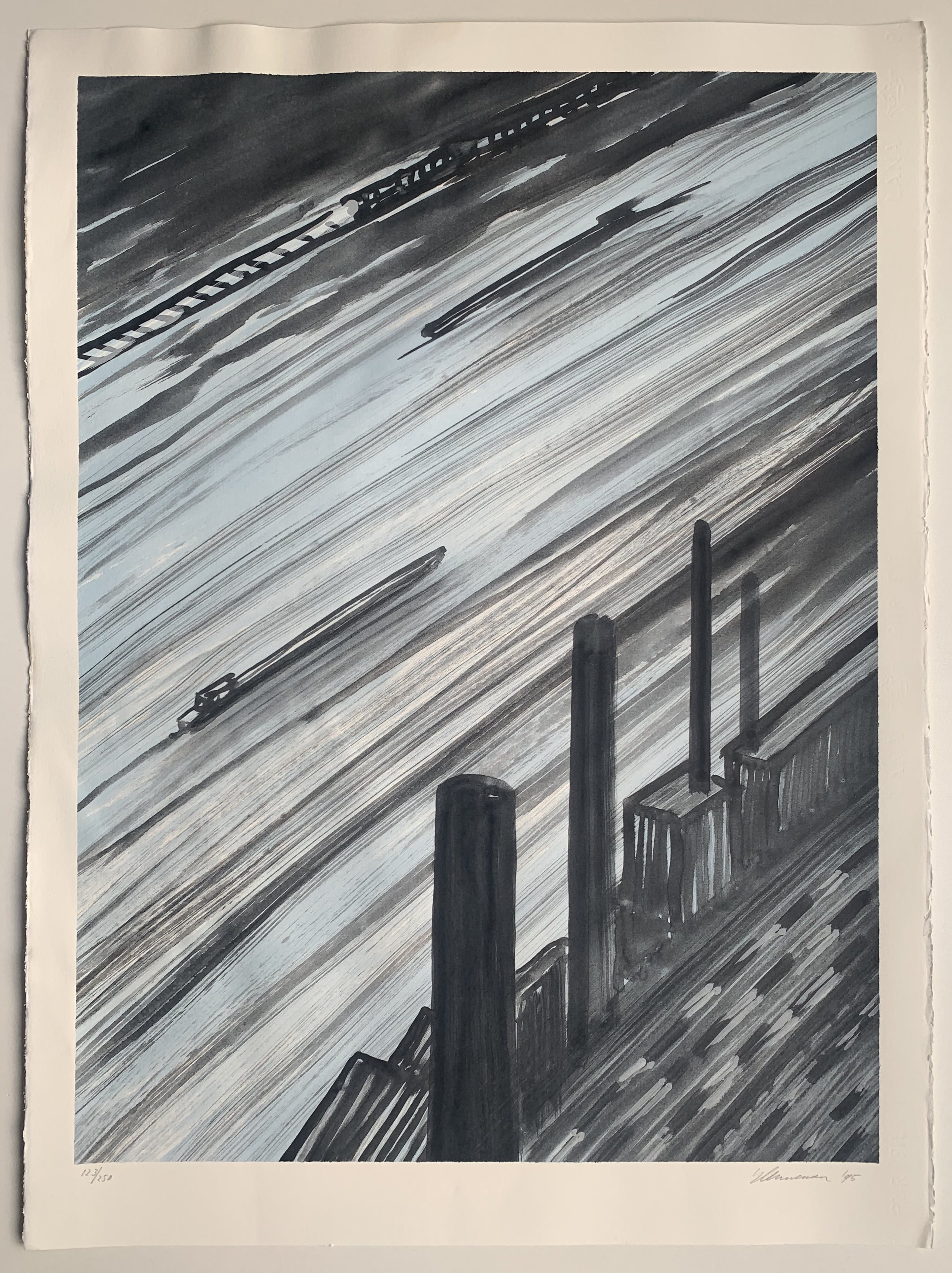 Het werk heeft minimale 'vochtschade' gehad. Er zitten wat golven in het papier en helemaal boven in de marge, zit een klein vlekje. Ingelijst in een passe-partout zal het er nog prima uitzien. | |||||||||||