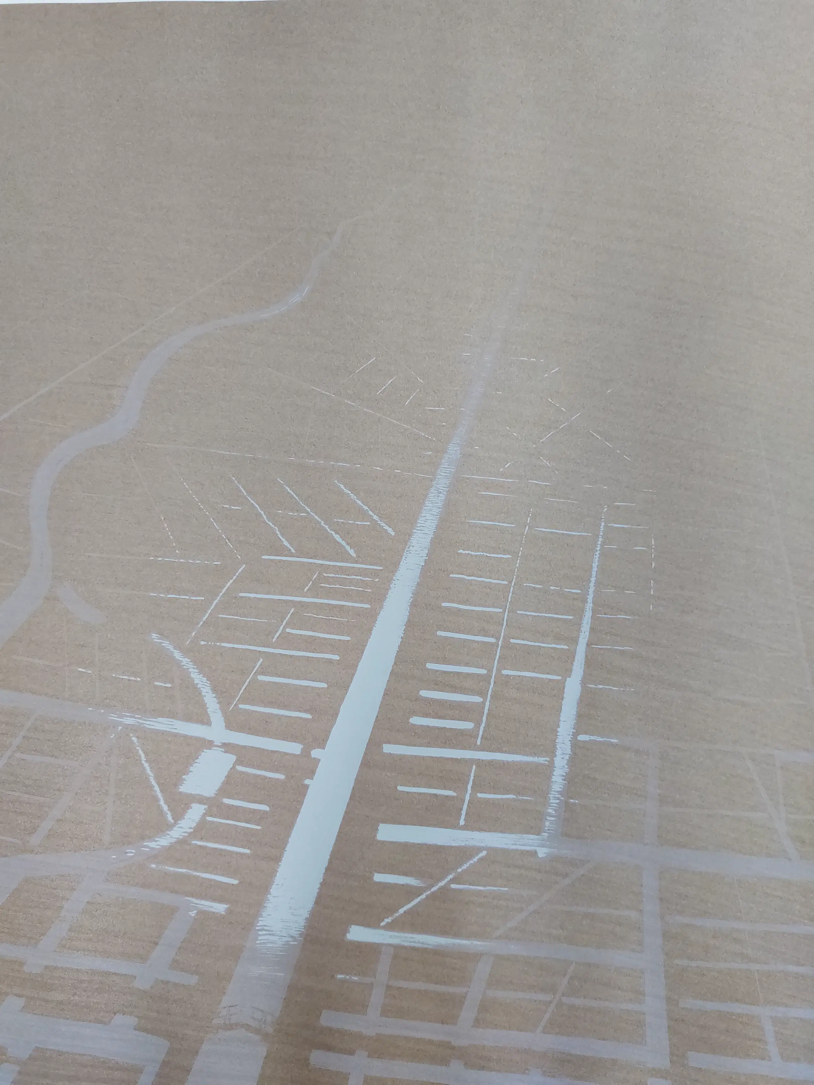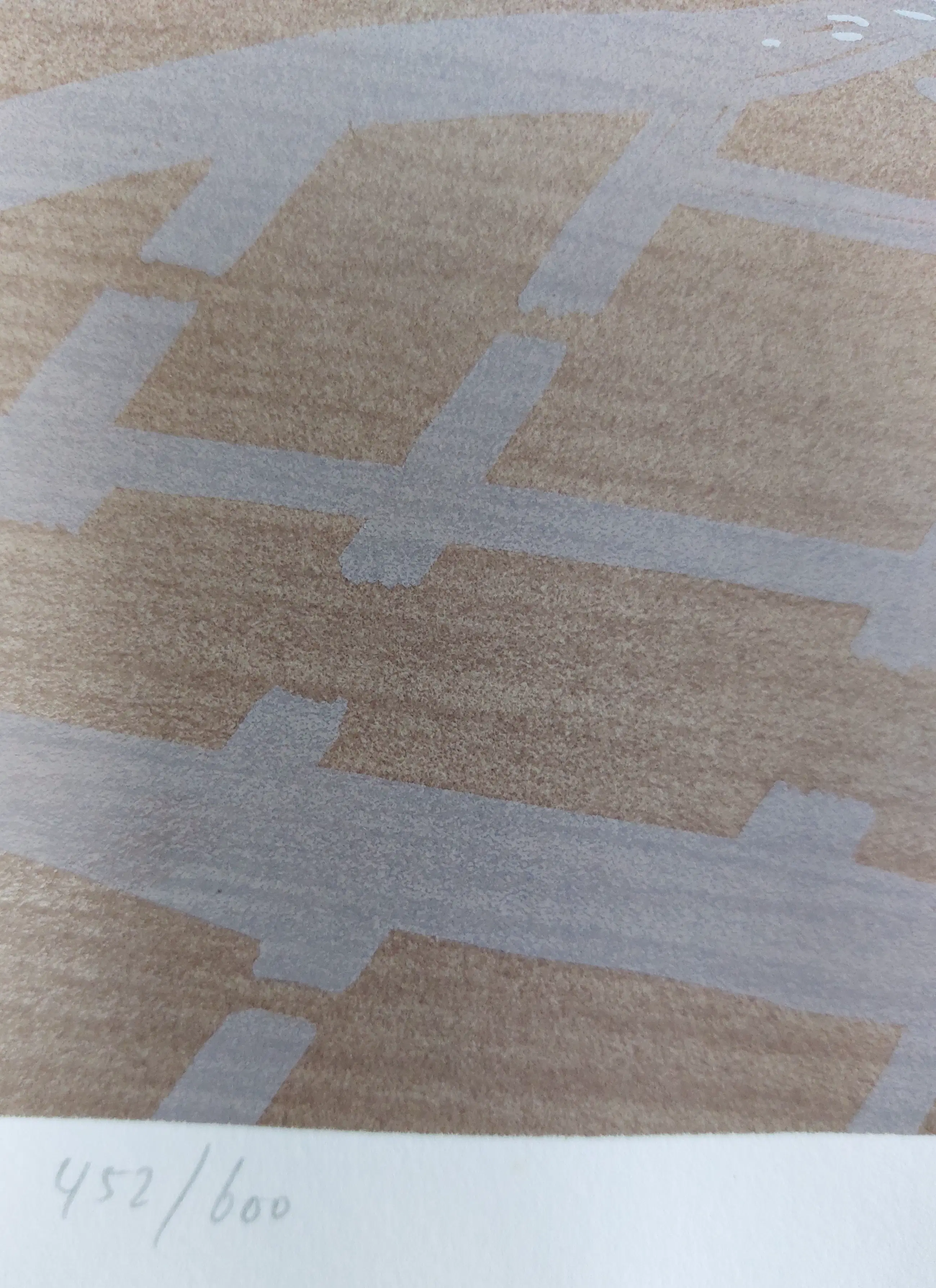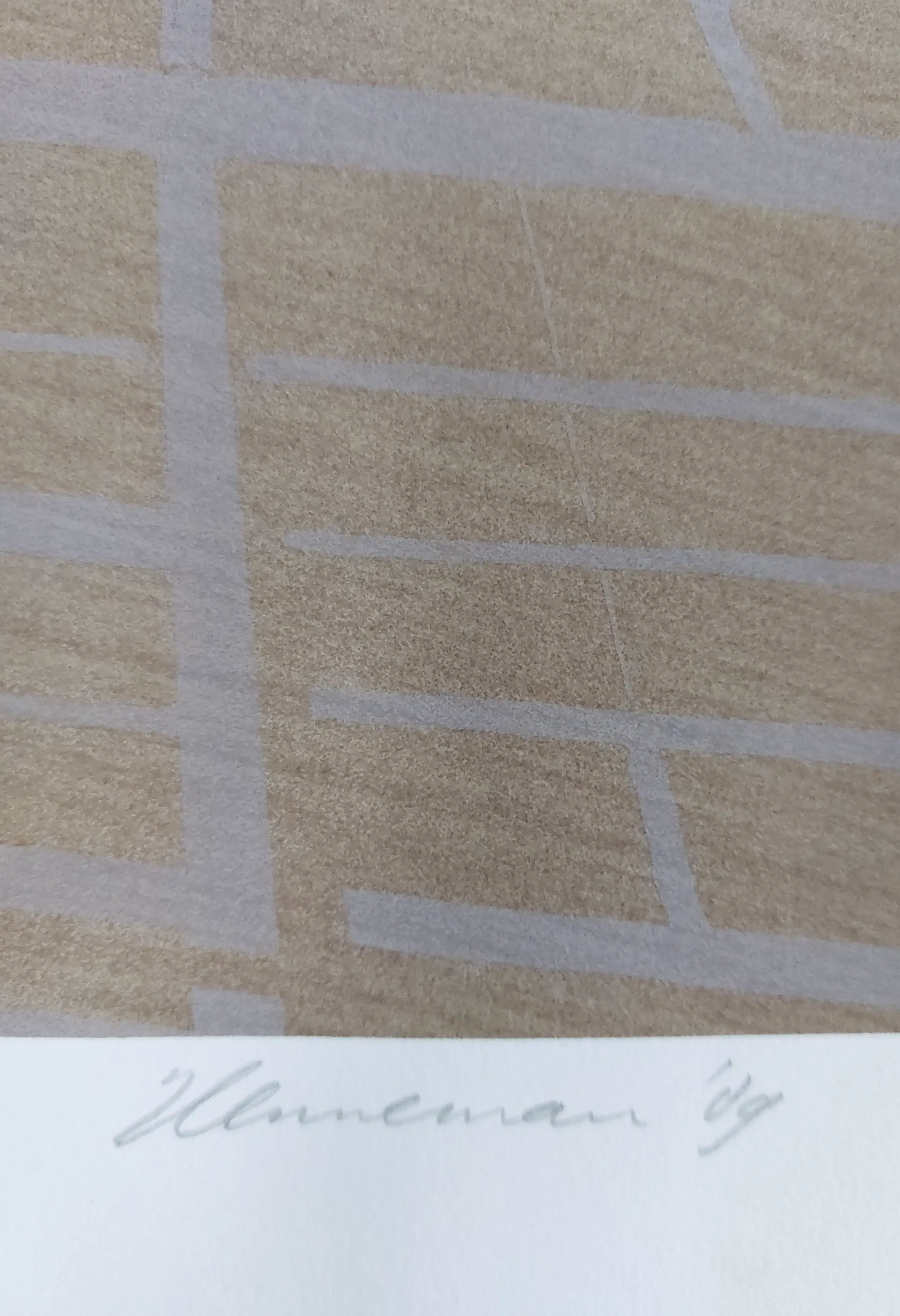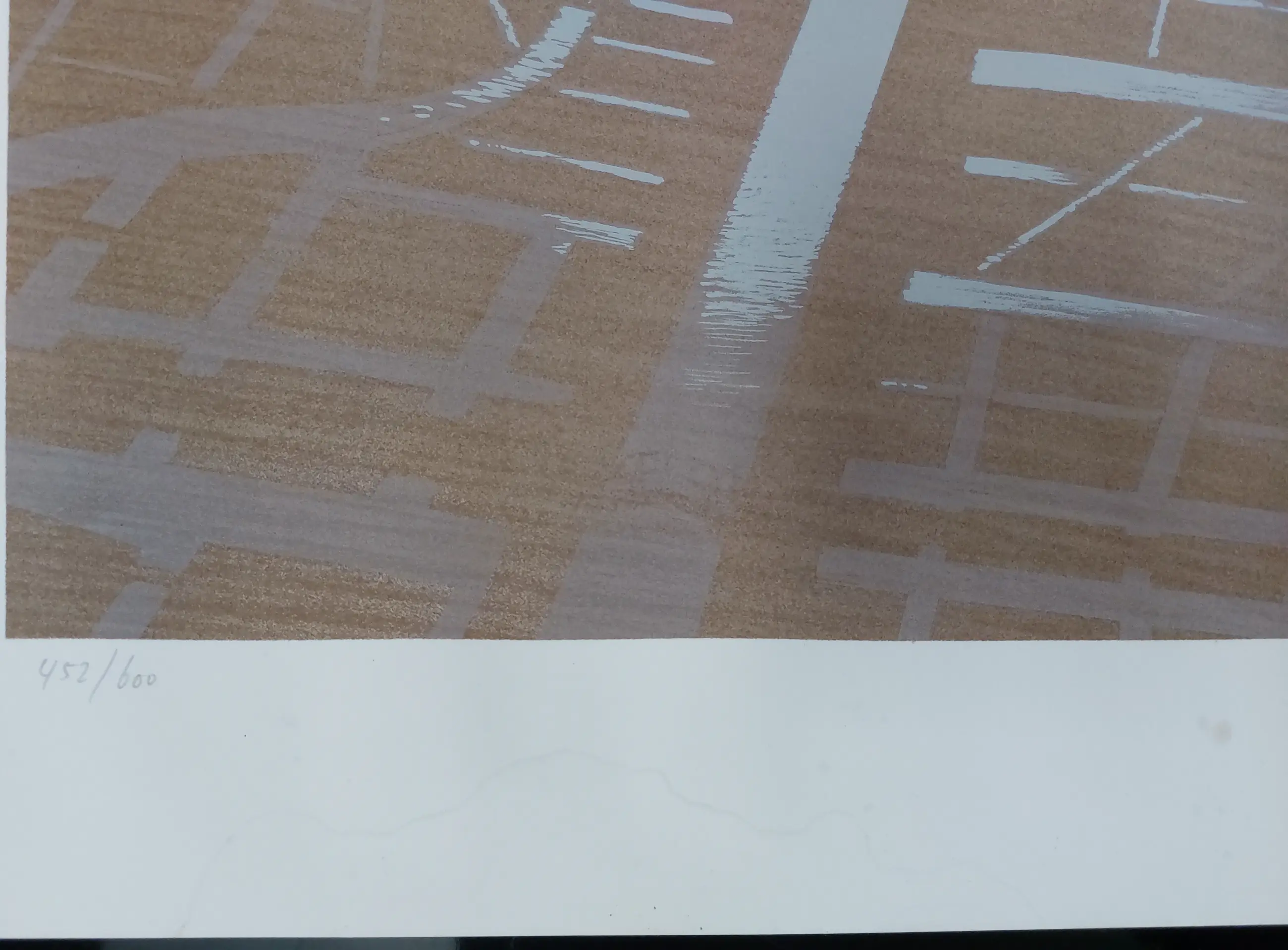 Mooie grote zeefdruk van Jeroen Henneman met afgebeeld een Nederlands landschap in vogelvlucht gezien waardoor een abstract beeld lijkt te ontstaan. Handgesigneerd, gedateerd en genummerd in potlood.