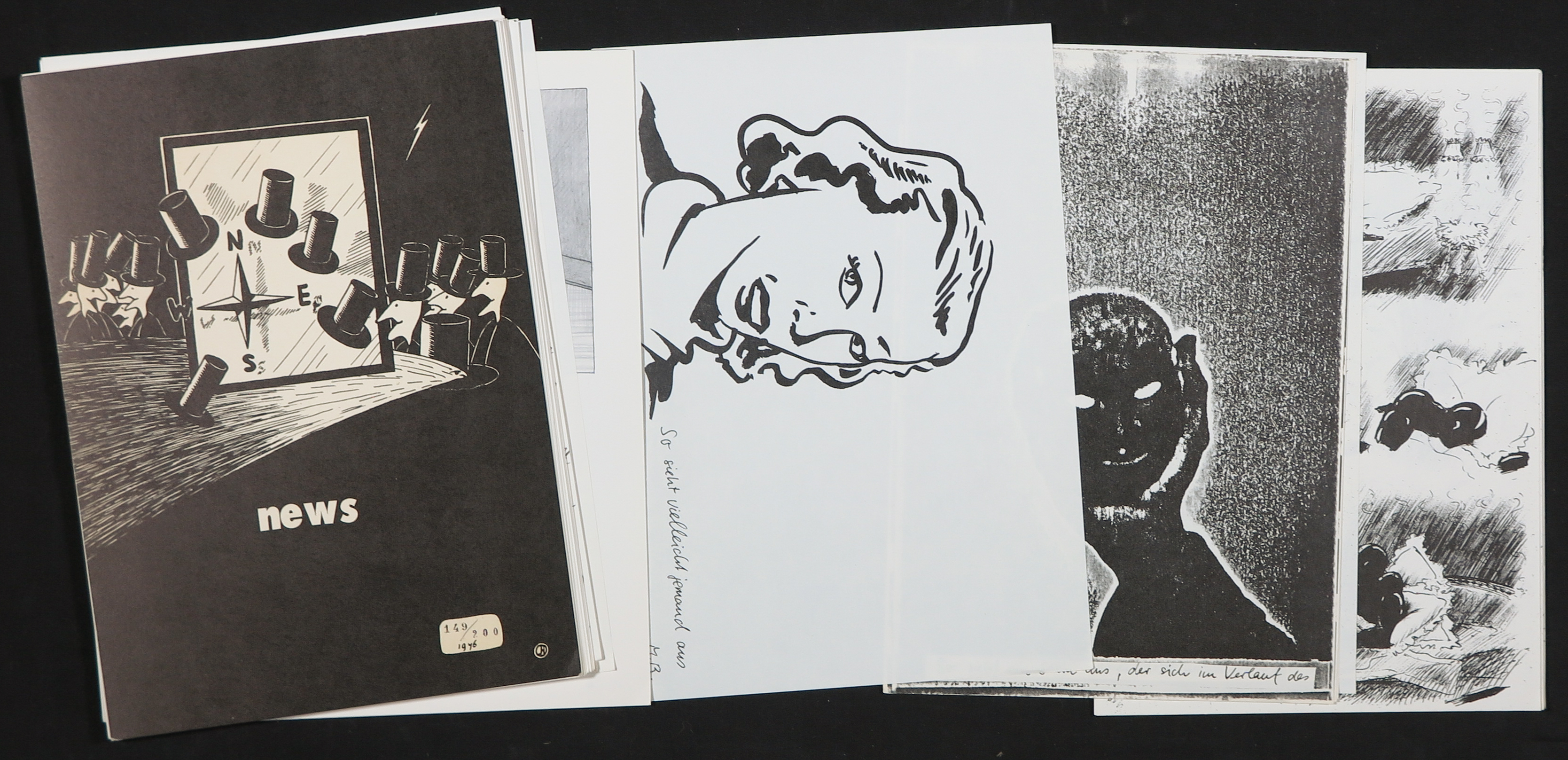 Zeldzaam! Zes delen van de publicatie NEWS (N.E.W.S.), uitgegeven door Uitgeverij De Harmonie in Amsterdam in 1976.