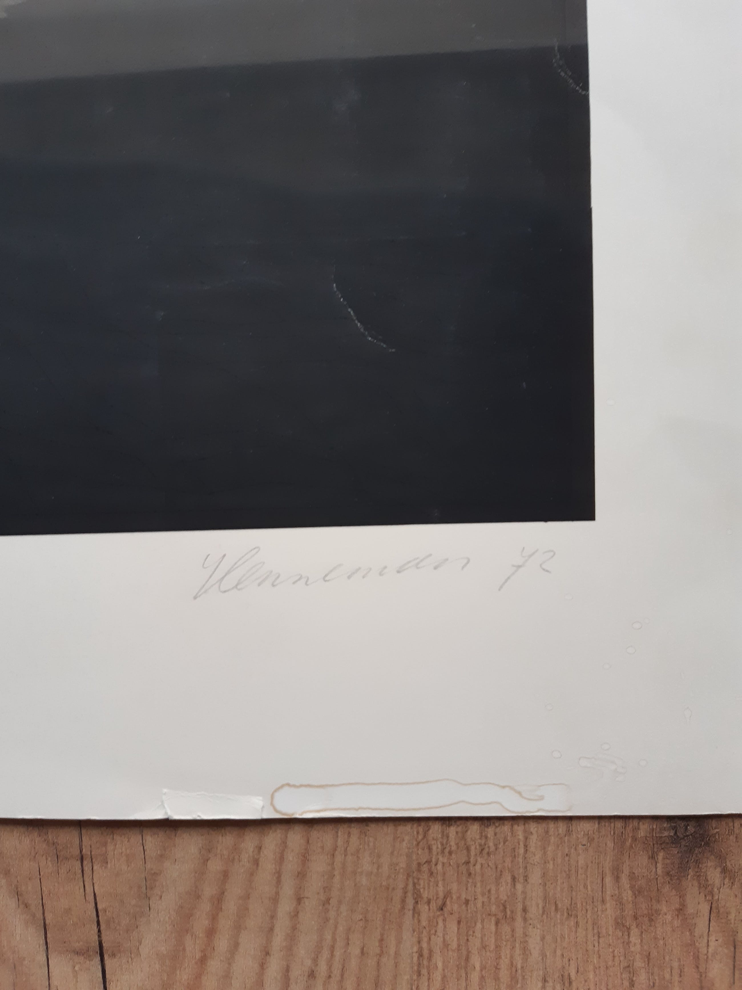 Mijn Schoonmoeder werkt in de jaren 60 in de Bijenkorf, waar zij de heer Jeroen Henneman heeft leren kennen. Deze Litho heeft zij direct van de kunstenaar gekocht. Uiteindelijk is deze werk bij mij beland in mijn kunst verzameling, maar ik heb het nooit opgehangen en wil het nu verkopen aan een liefhebber... Achter een lijst met museumglas, een mooi paspartout, zal het Litho van Jeroen Henneman nog steeds een mooi indruk maken.