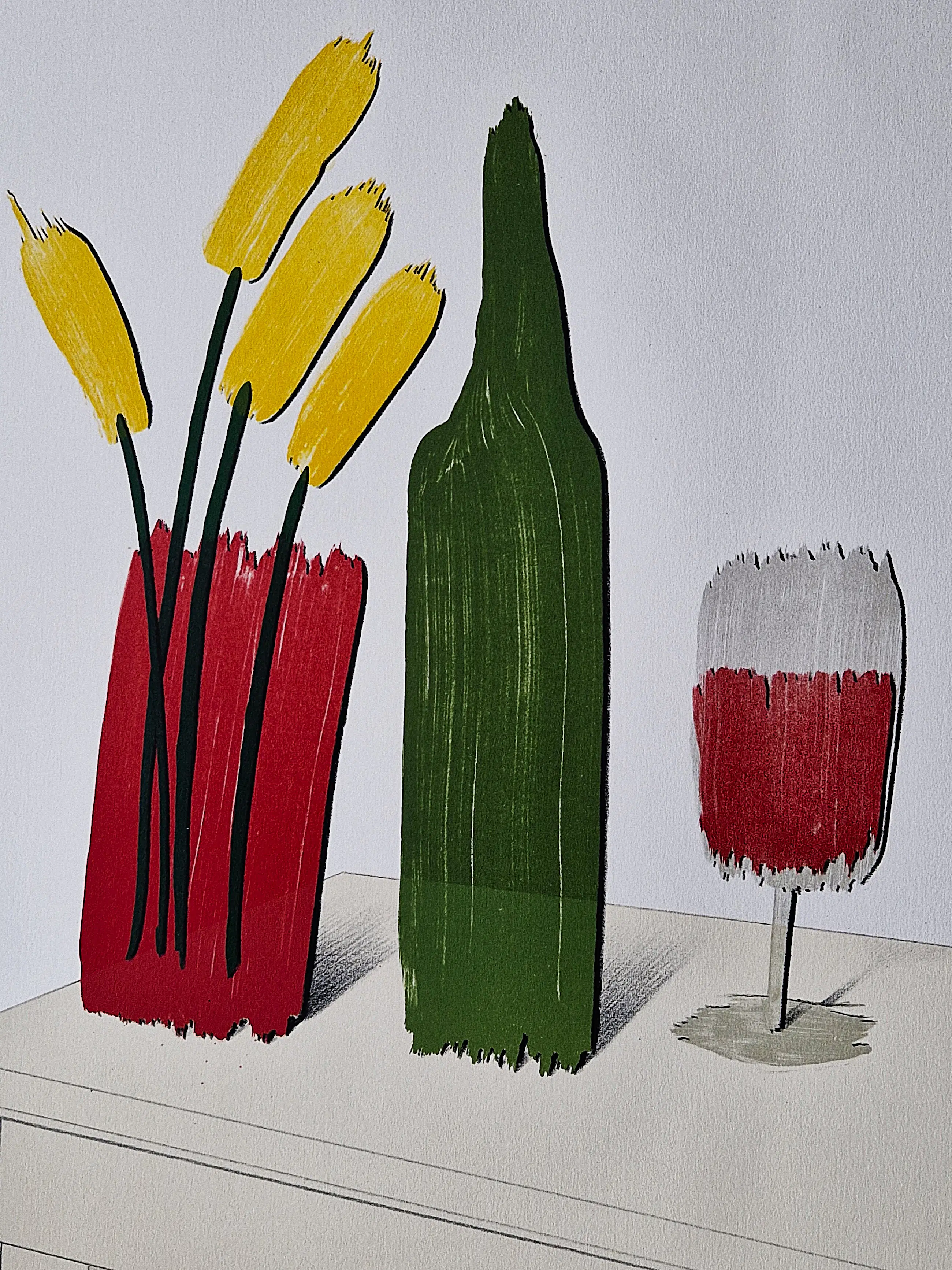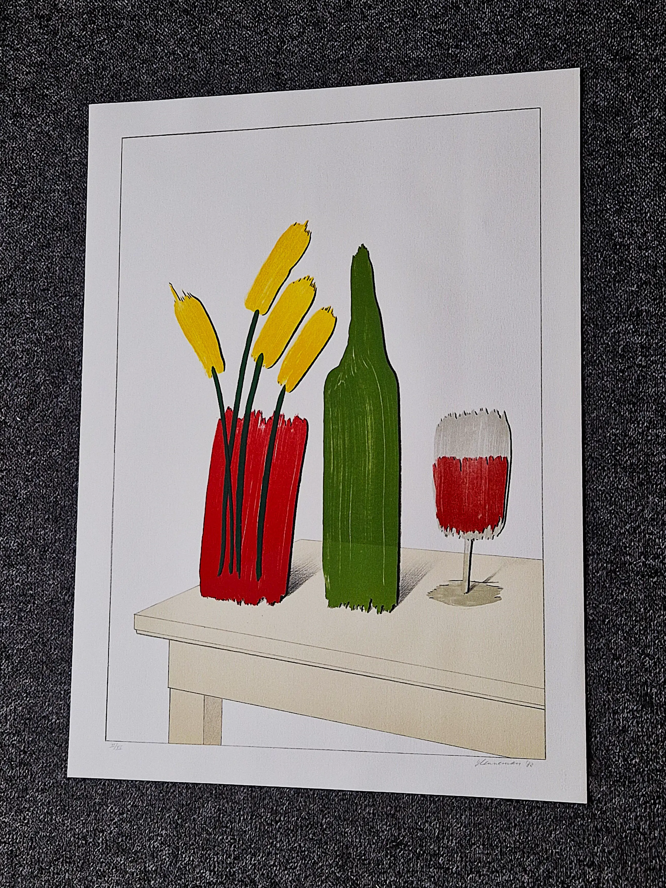 - Dit bijzonder fraaie kleurenlitho was in 1982 onderdeel van het portfolio "Stillevens" (uitgeverij Polychrome) die in een voor-oplage van slechts 15 exemplaren aan de meewerkende kunstenaars door de drukker beschikbaar werd gesteld.