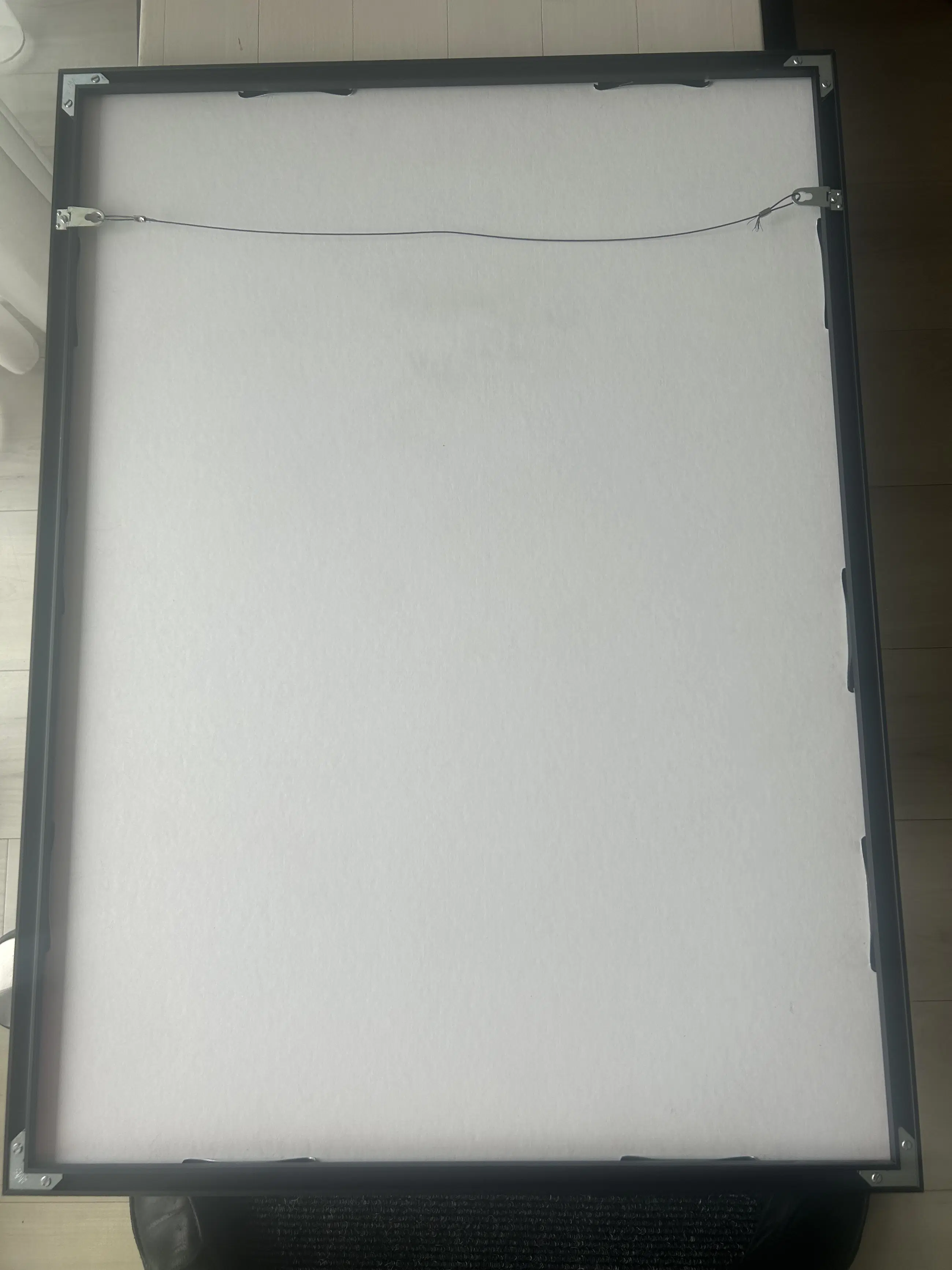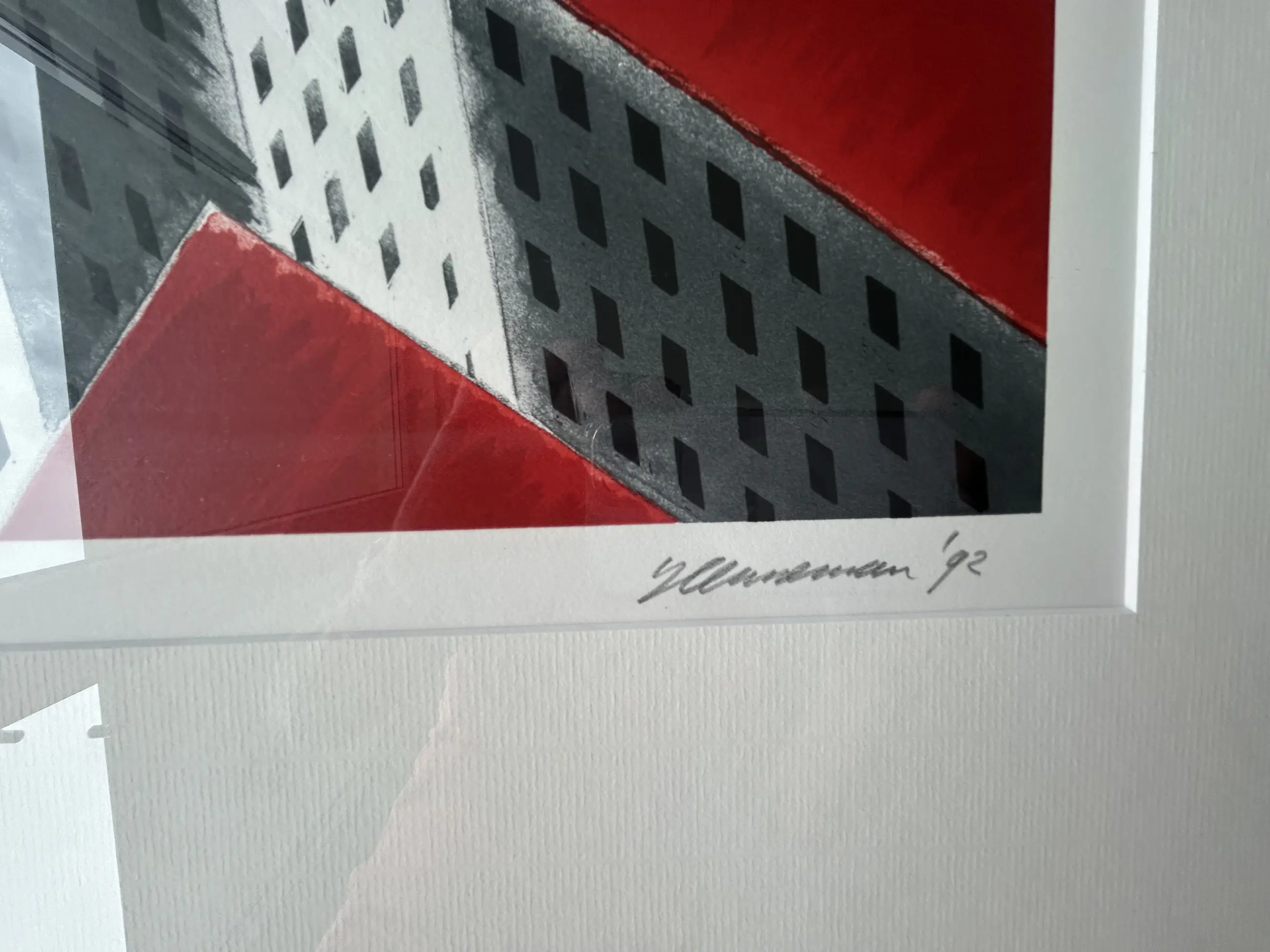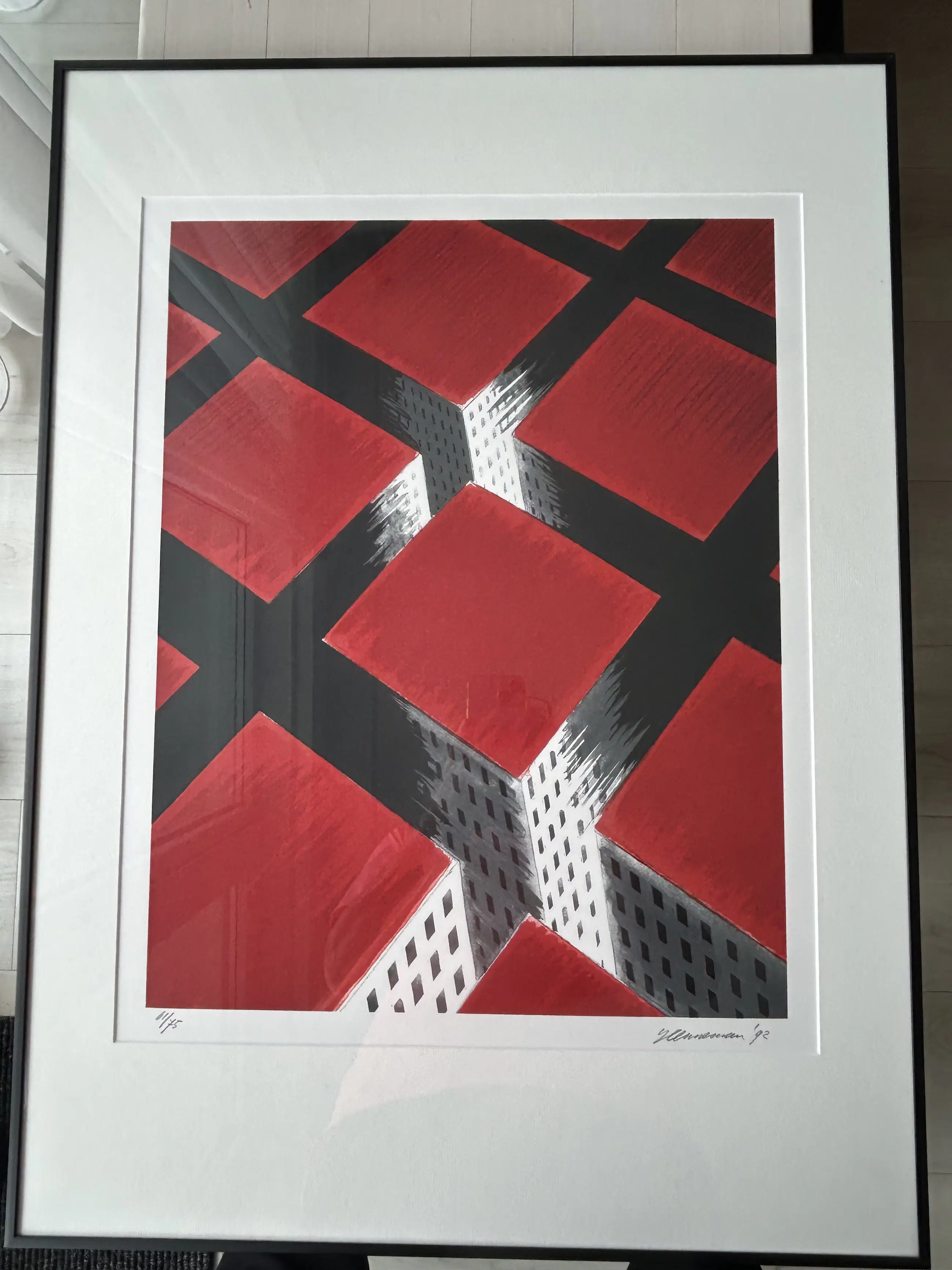 De staat van het werk is uitstekend; ingelijst in een strakke, kwalitatief goede, zwarte lijst, achter glas