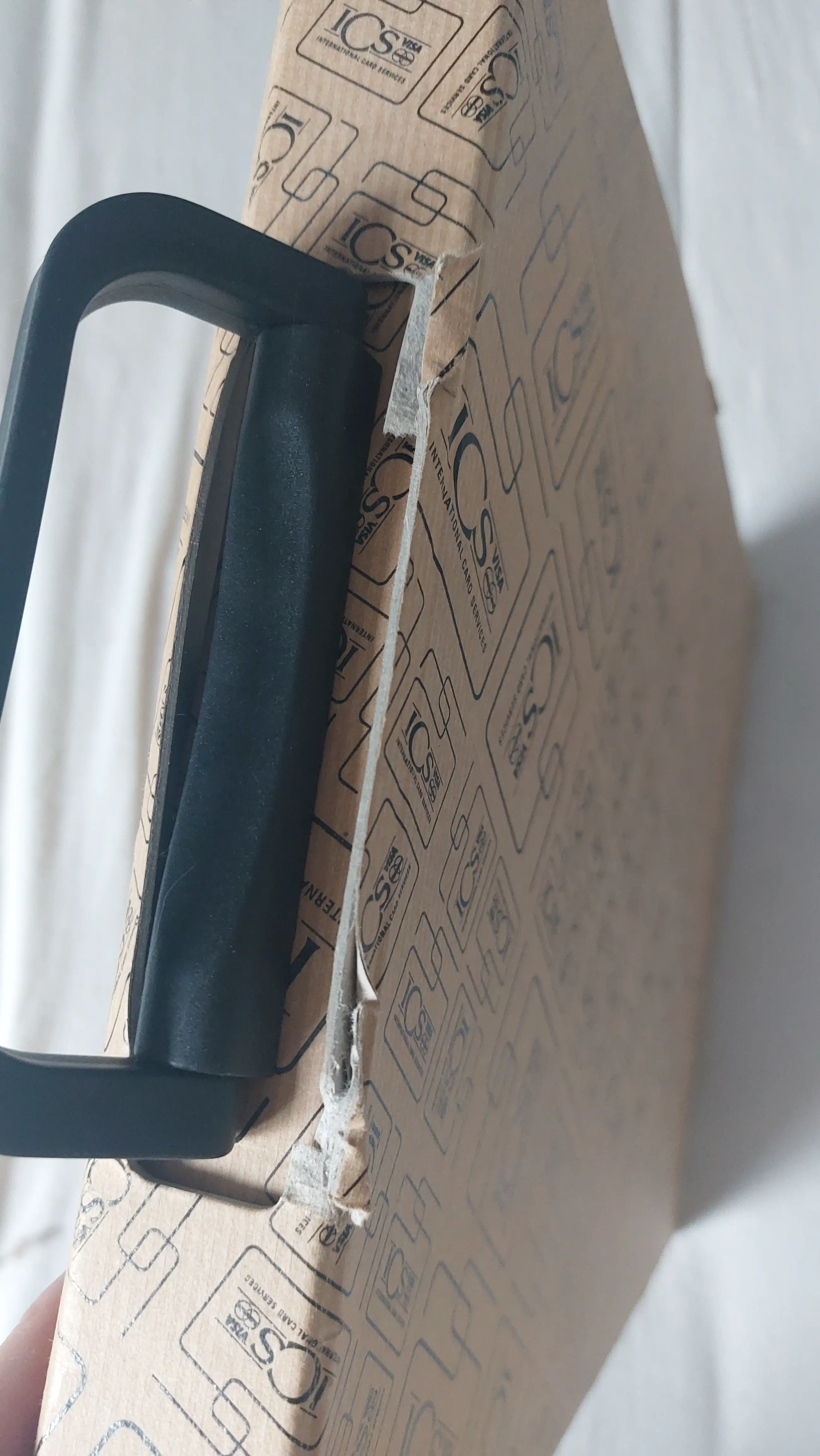 Kunstwerk is slechts 2 maal(bij ontvangst en bij het maken van de foto's) uit de doos geweest. De doos is in de opslag iets beschadigd. (Zie foto's)