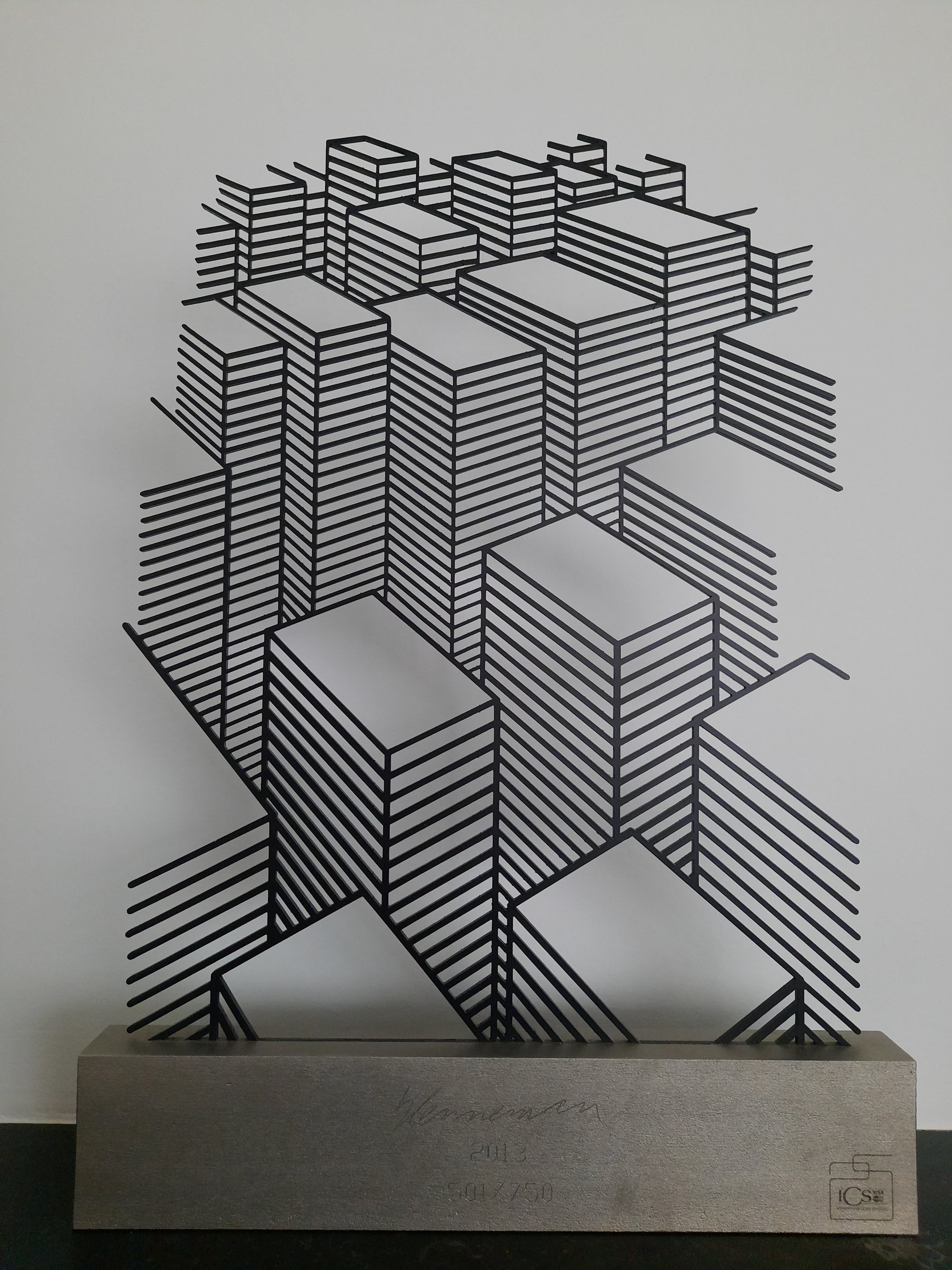 Een prachtig modern en speciaal beeld gemaakt door beeldend kunstenaar Jeroen Henneman. Het beeld is tussen de 35 en 40 cm hoog en is gemaakt voor het 25 jarig bestaan van ICS in 2013.