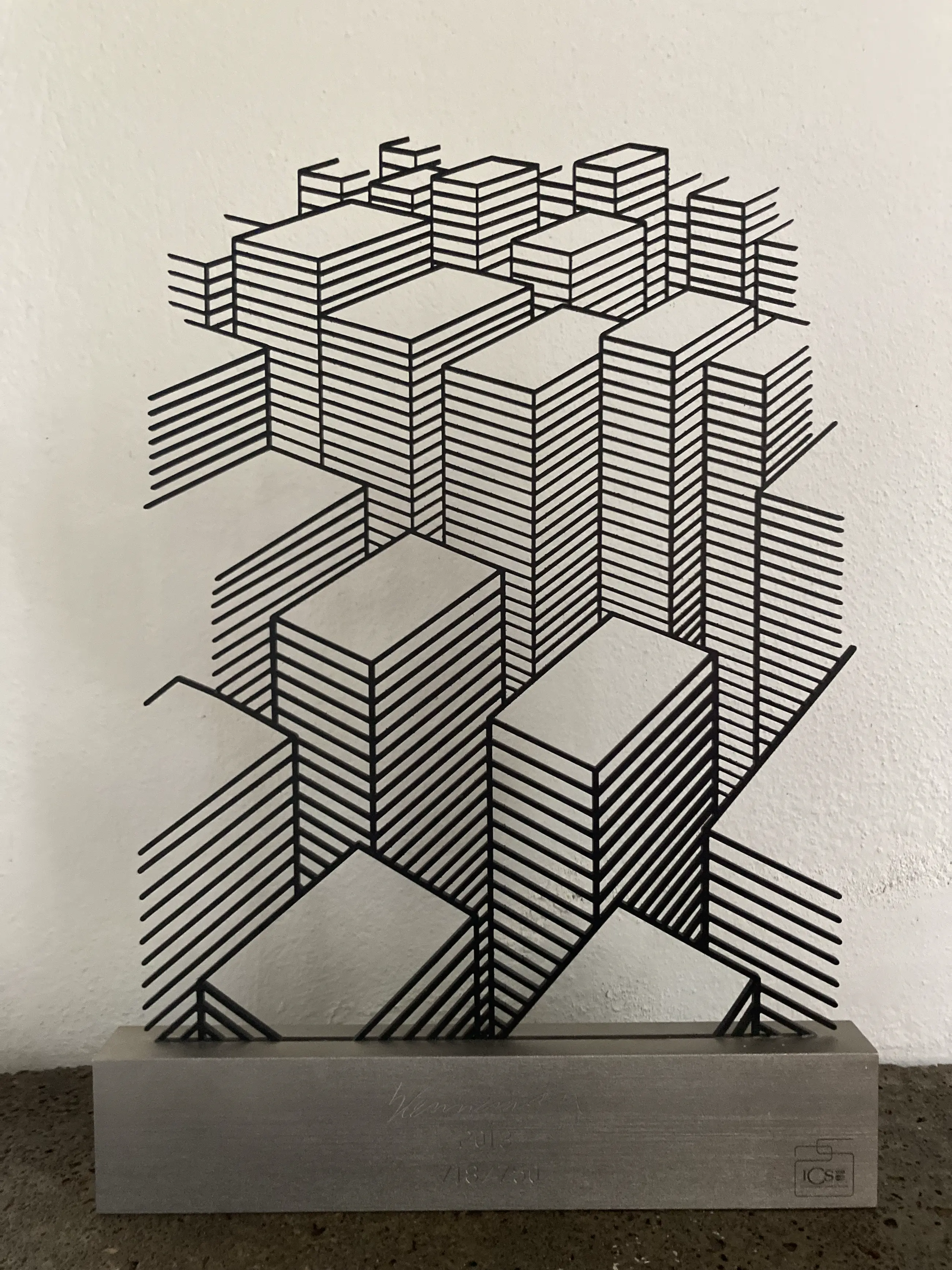 Een strak modern 3D kunstwerk, gemaakt door beeldend kunstenaar Jeroen Henneman, voor het 25 jarig bestaan van ICS in 2013. Het beeld is tussen de 35 en 40 cm hoog. Het beeld is vergezeld van een boekje geschreven door Rudi Fuchs, een certificaat op naam en een CD-rom.
