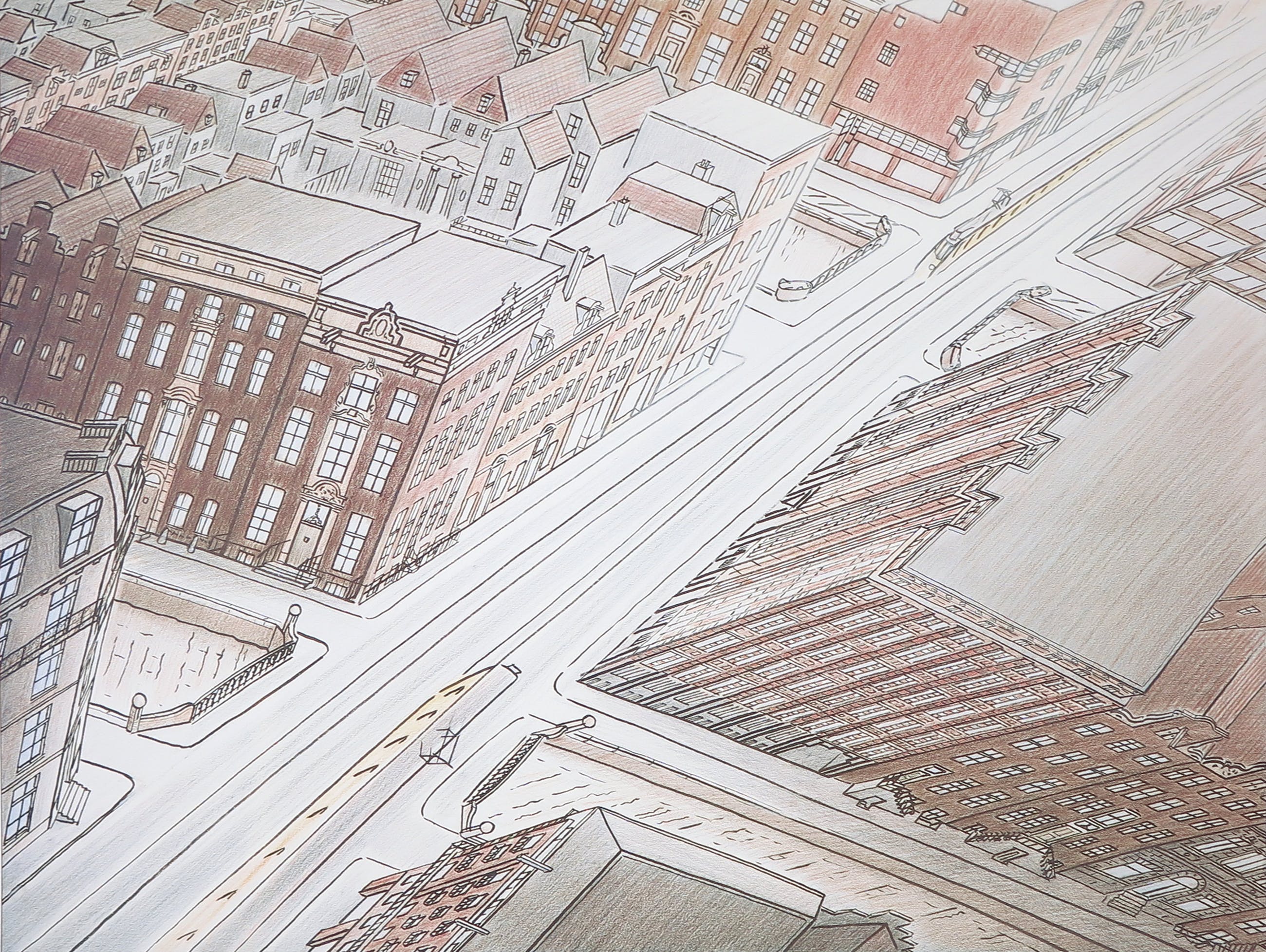 Aantal vouwen langs de rand van het blad. Buiten de voorstelling en in een passe-partout niet zichtbaar. | |||||||||||
