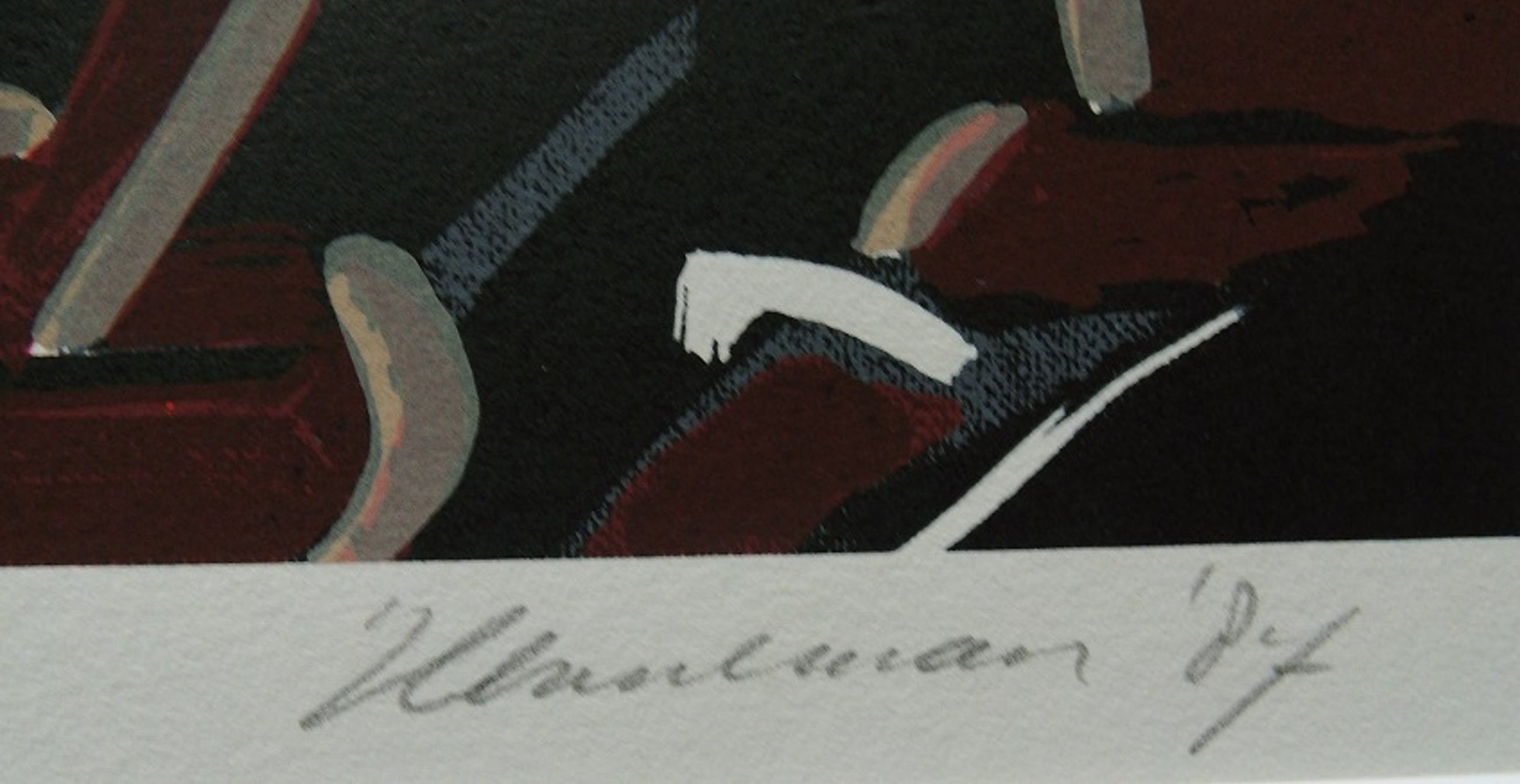 Kunstenaar: Jeroen Henneman; Techniek: zeefdruk: Jaar: 1987; Gesigneerd. in druk gedateerd en ingelijst; uit de Albert Hein serie;