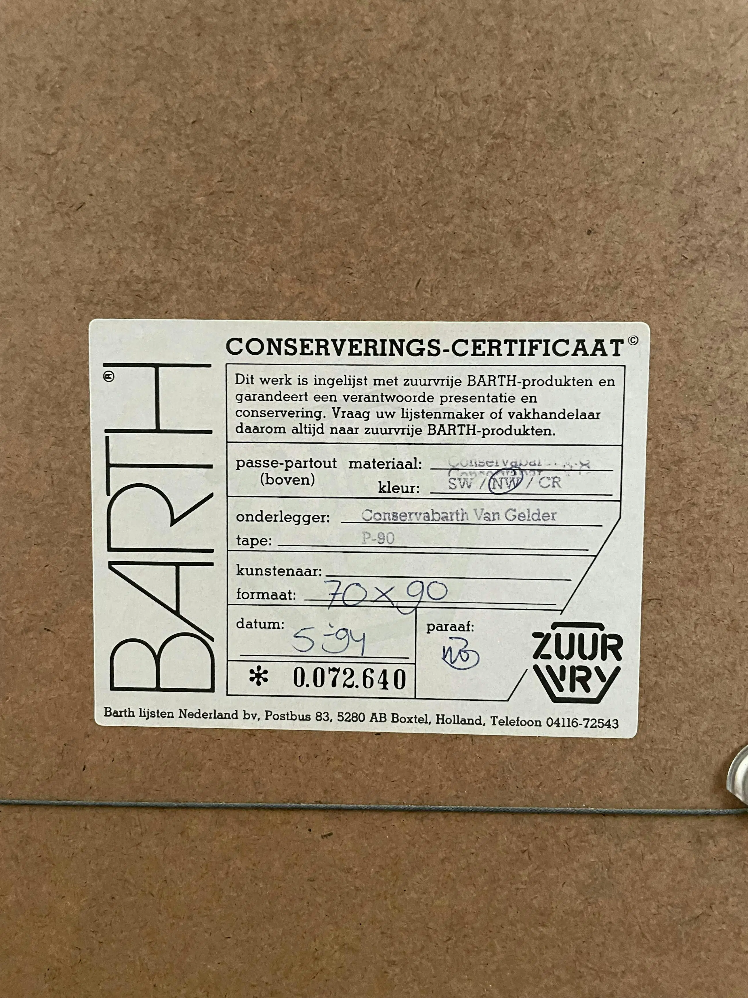 Fraai ingelijst werk (zuurvrije maatwerk Barth lijst) Herkomst: ING collectie (zelf gekocht op veiling) Nummer 14/50