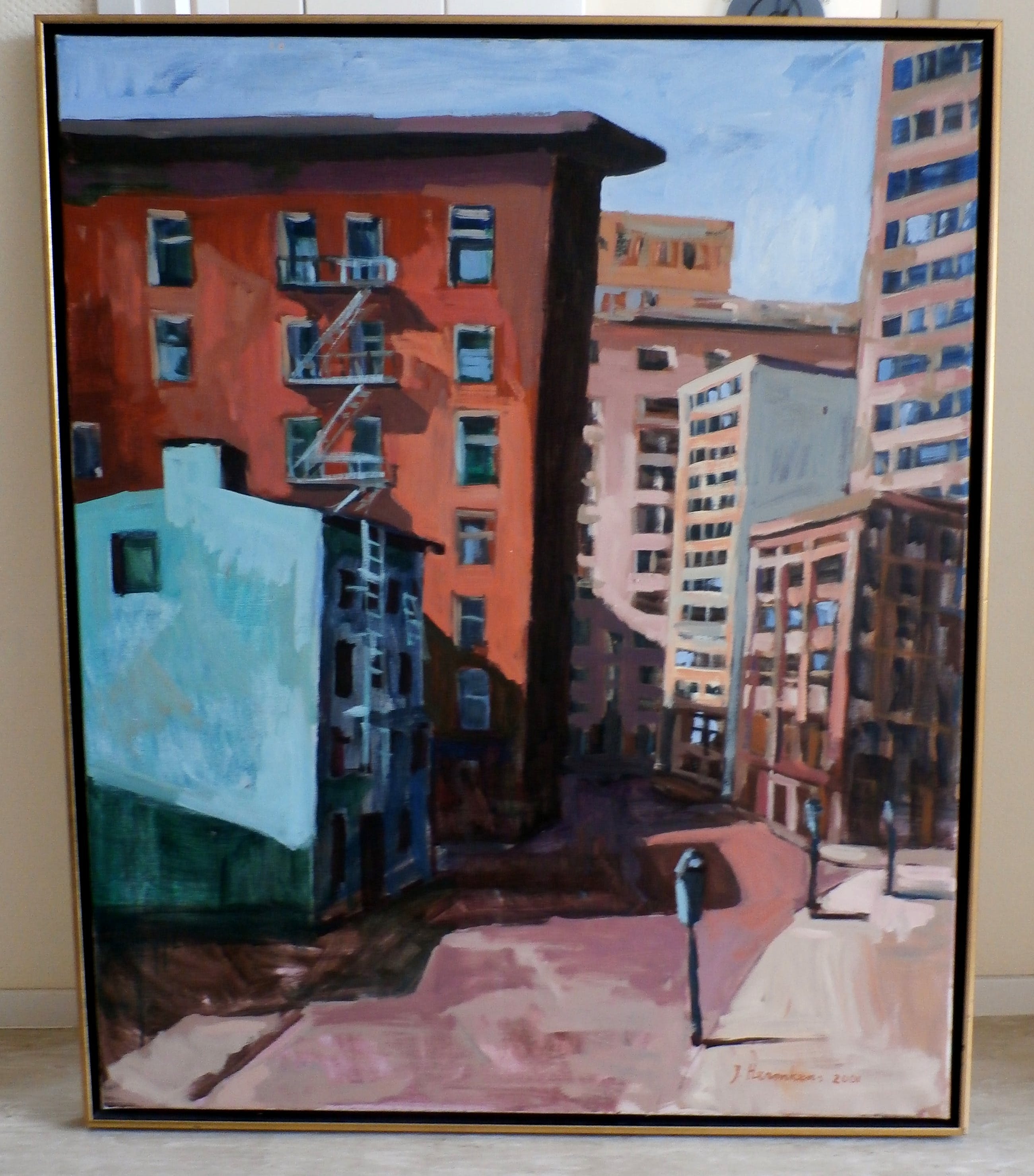 Prachtig schilderij van Jeroen Hermkens. Dit is zonder enige twijfel één van de betere New York schilderijen die hij heeft gemaakt. Hij heeft gebruik gemaakt van mooie heldere kleuren. Er is ook fantastisch met de lichtwerking gespeeld". Titel: New York. Jaar: 2001. Afmetingen werk: H120 x b100 cm. Conditie: In goede staat. Het werk is rechtsonder gesigneerd en gedateerd. De authenticiteit van dit werk wordt voor 100% verzekerd. Een certificaat kan, op aanvraag, worden gemaild.