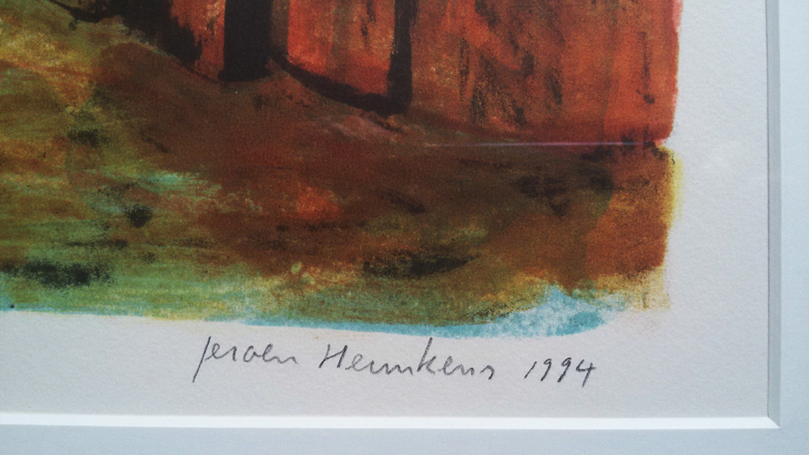 Prachtige litho van Jeroen Hermkens uit 1994. Met potlood gesigneerd, gedateerd, getiteld en genummerd (15/77). In mooie lijst, achter glas en smetteloos passe-partout. In uitstekende staat.