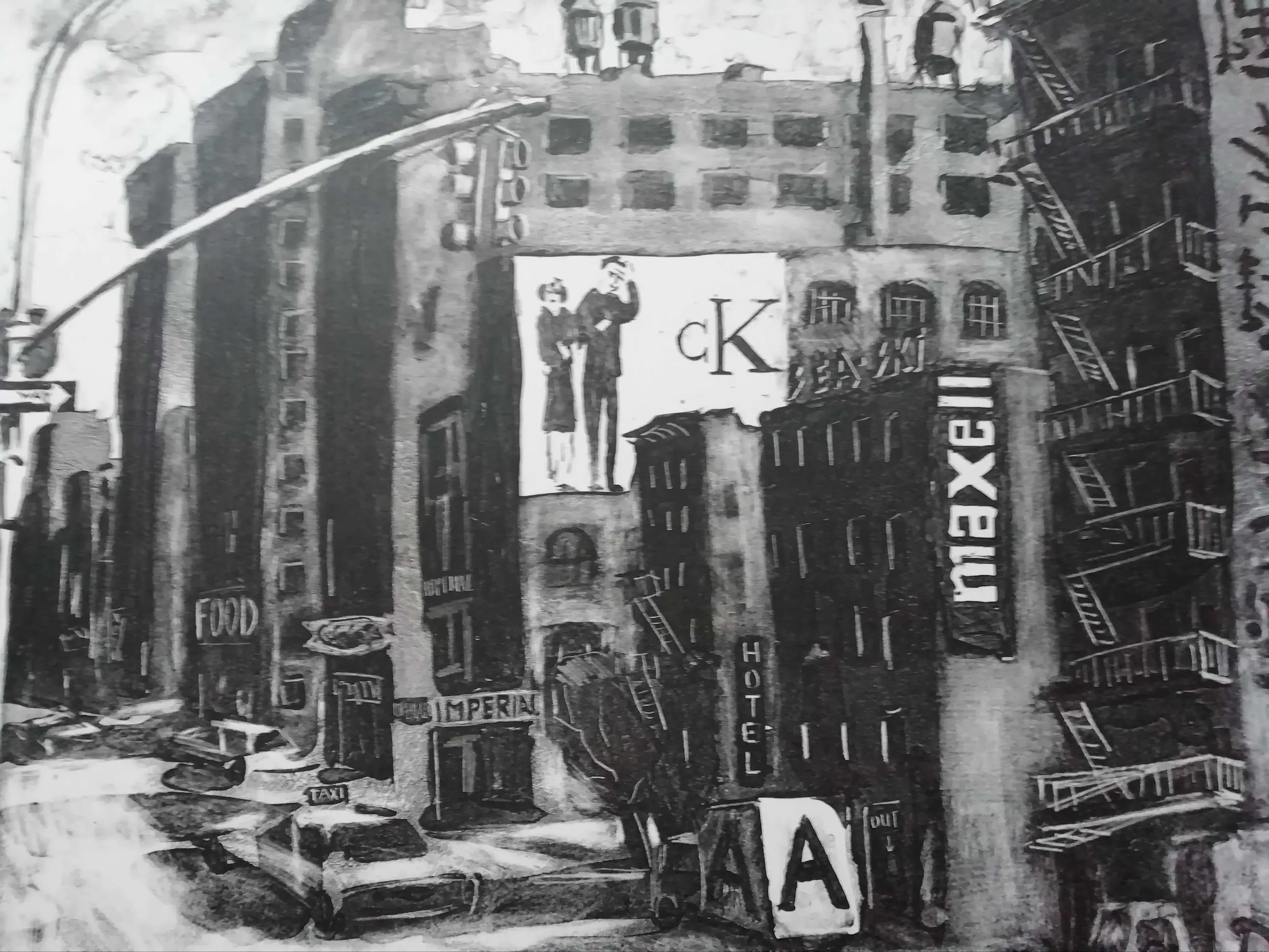 Technisch zeer mooie lithotechniek toegepast door het diepste zwart met daarin witte contrastrijke lijnen.