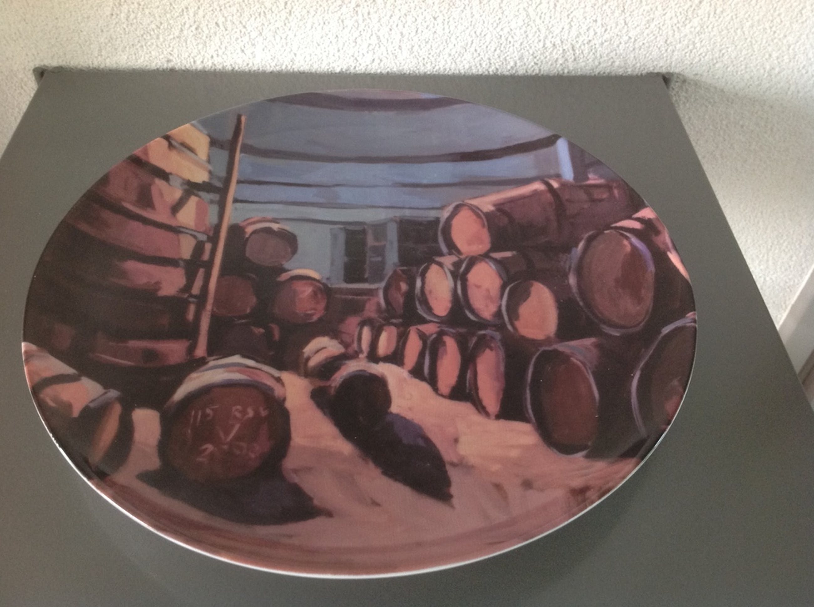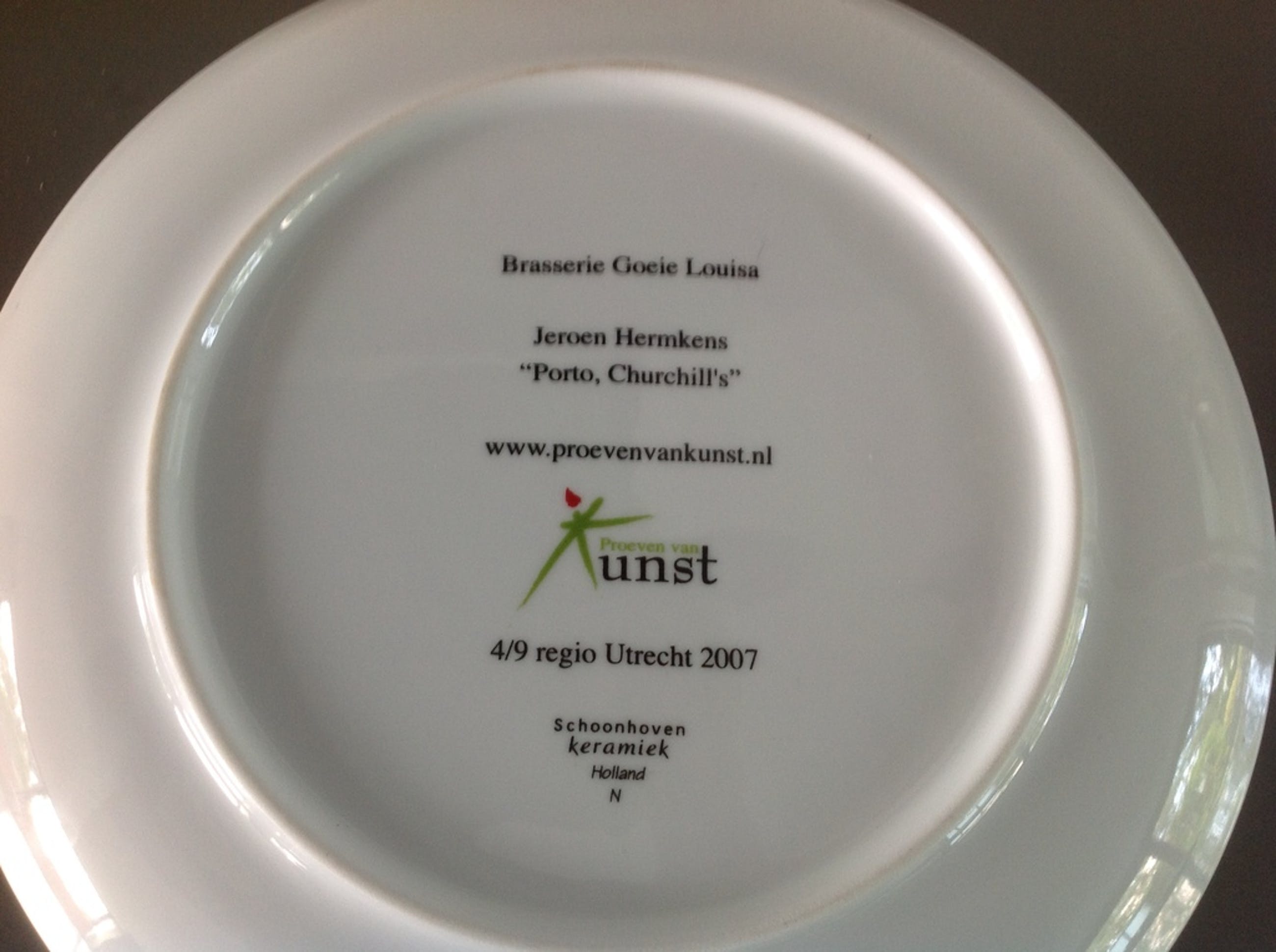 Het bord heeft een afbeelding van een schilderij van de Utrechtse kunstenaar Jeroen Hermkens (1960).