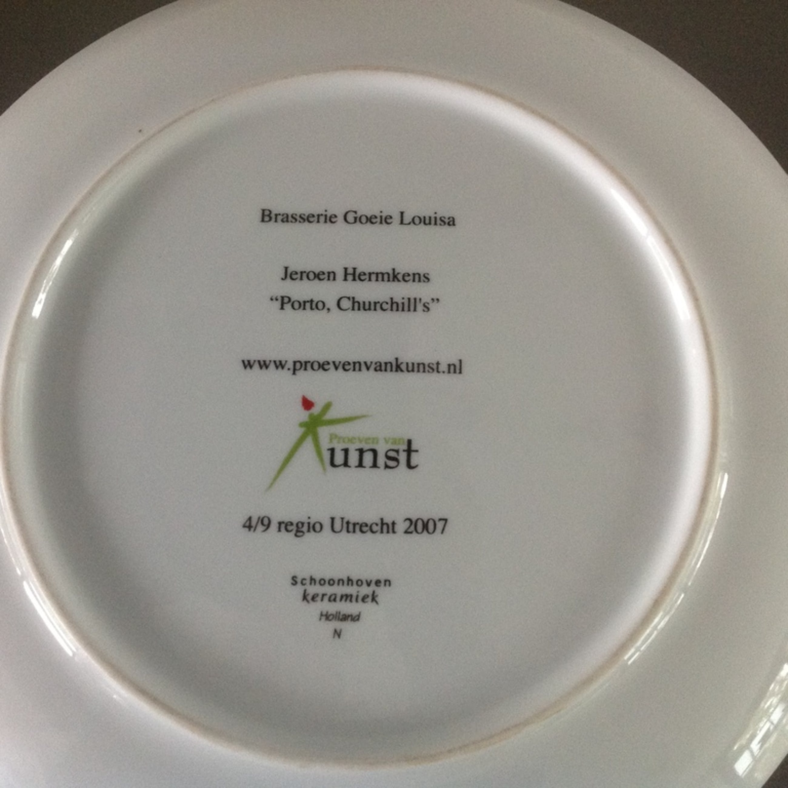 Het bord draagt een afbeelding van het werk "Porto, Churchill's" van de kunstenaar Jeroen Hermkens (Utrecht, 1960).