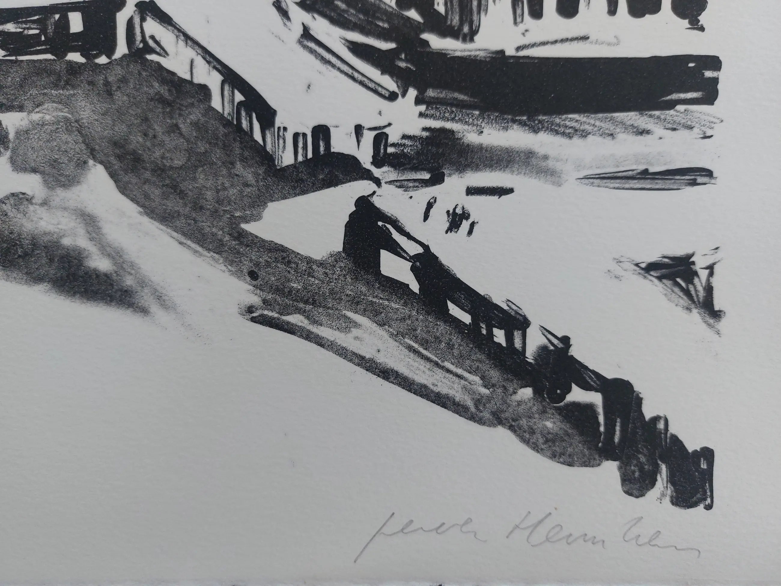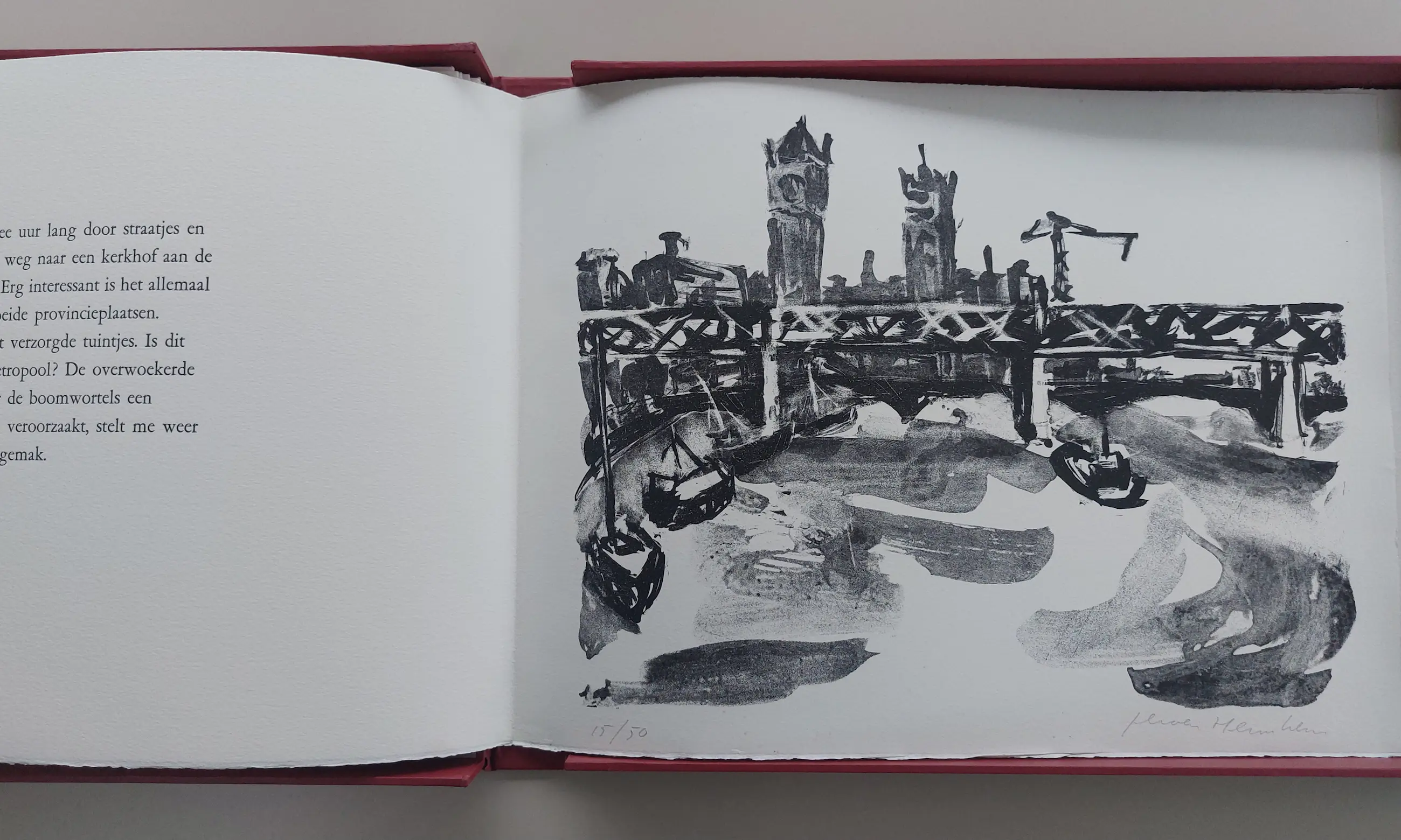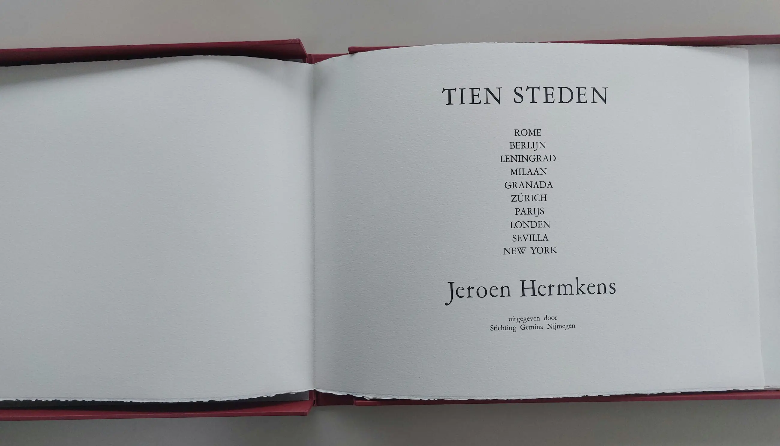 Mooie complete boxset van Jeroen Hermkens zoals uitgeggeven door stichting Gemina te Nijmegen. Bevat 10 gesigneerde zwartwit litho's van wereldsteden. De box als geheel is nogmaals gesigneerd. Titel = Tien steden: Rome, Berlijn, Leningrad, Milaan, Granada, Zürich, Parijs, Londen, Sevilla, New York.
