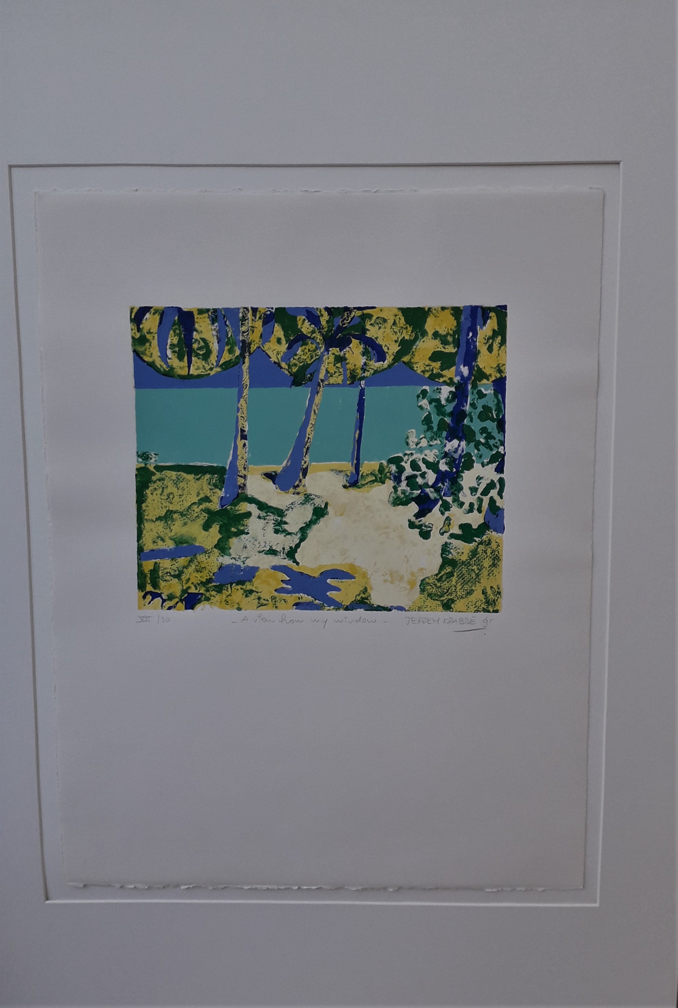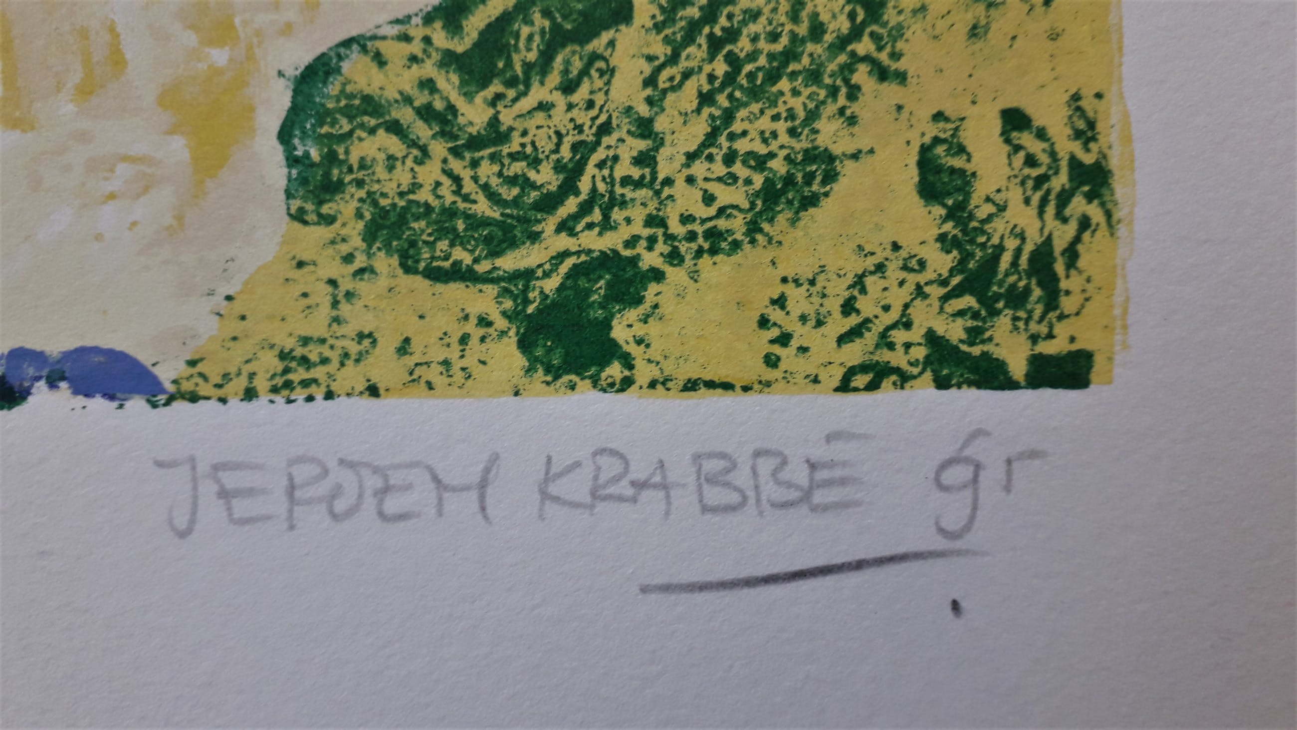 2 zeefdrukken uit een speciale editie van 30 exemplaren waarbij Jeroen Krabbé naast de nummering en signering ook de titels van de werken heeft opgeschreven.