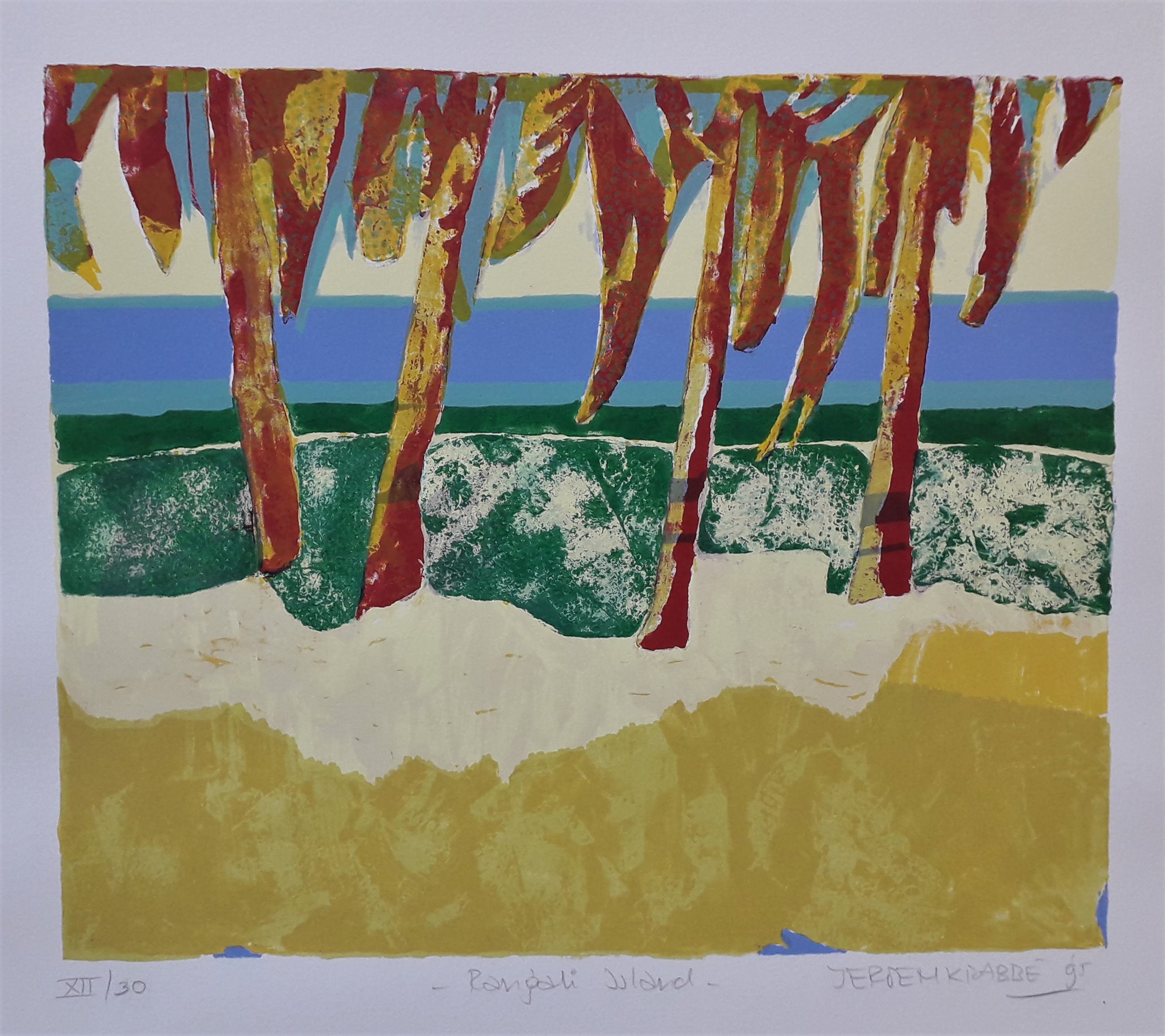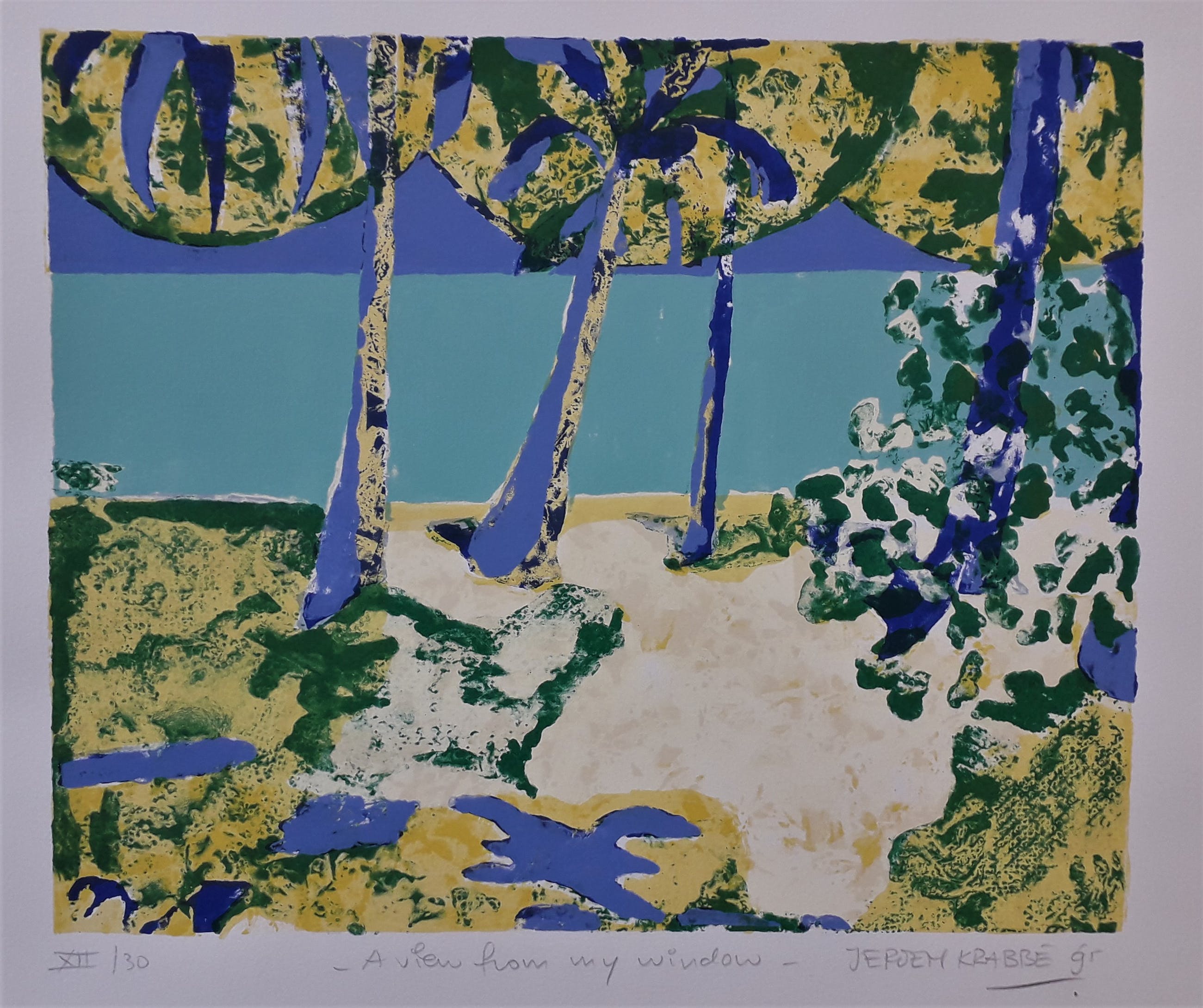Een van die bijzondere bestemmingen was Vanuatu, een eilandengroep in de Stille Zuidzee. Jeroen Krabbé is daar van 10-1989 tot 01-1990 voor de opnames van de speelfilm 'Till there was you'. Zelden heeft een plek meer invloed op hem gehad. "Vanuatu heeft mijn leven veranderd, niet alleen als reiziger, maar vooral ook als schilder. Een onontdekt, ongeschonden en vooral onaangetast landschap trof ik daar". Galerieprijs € 3000.-