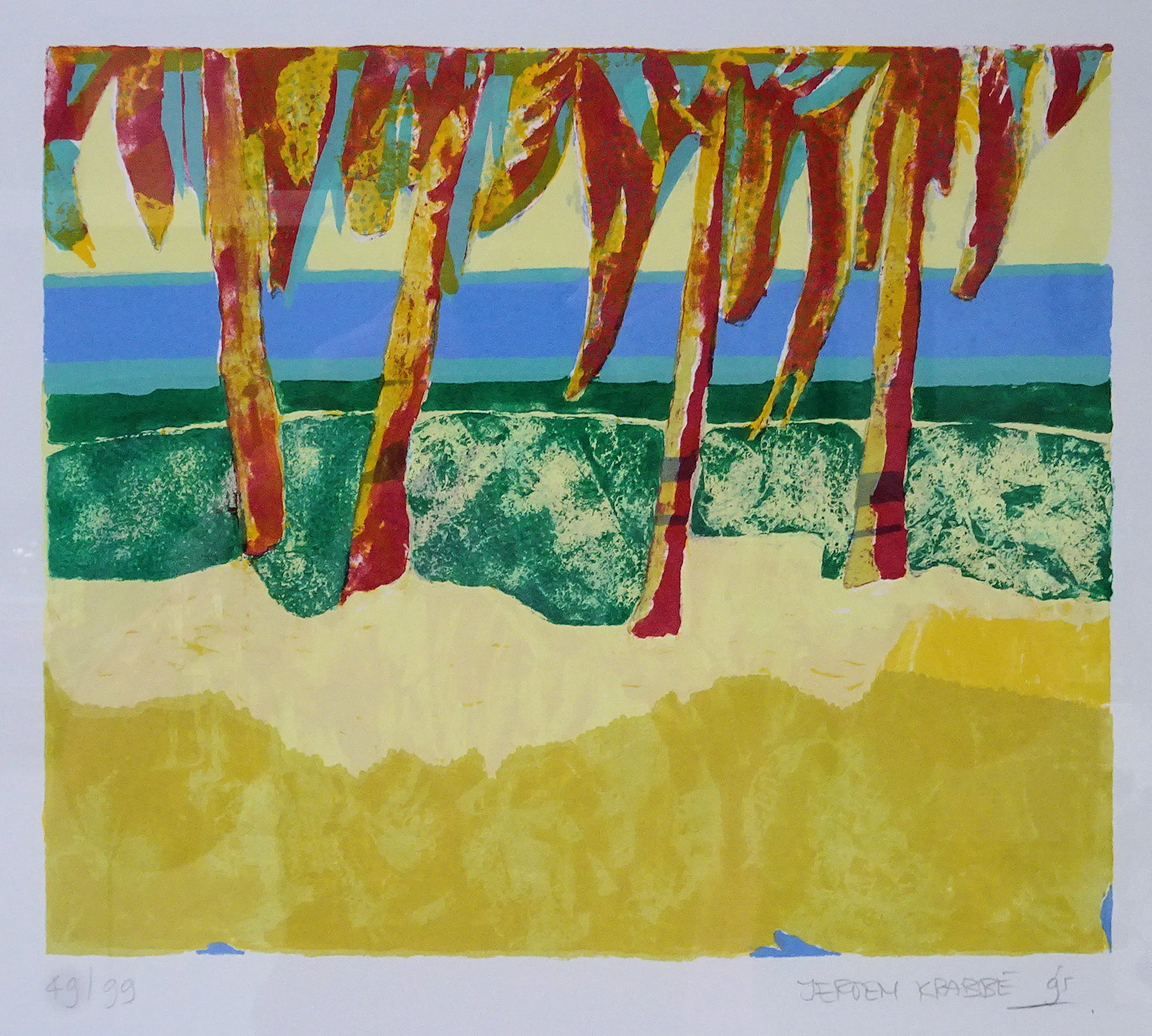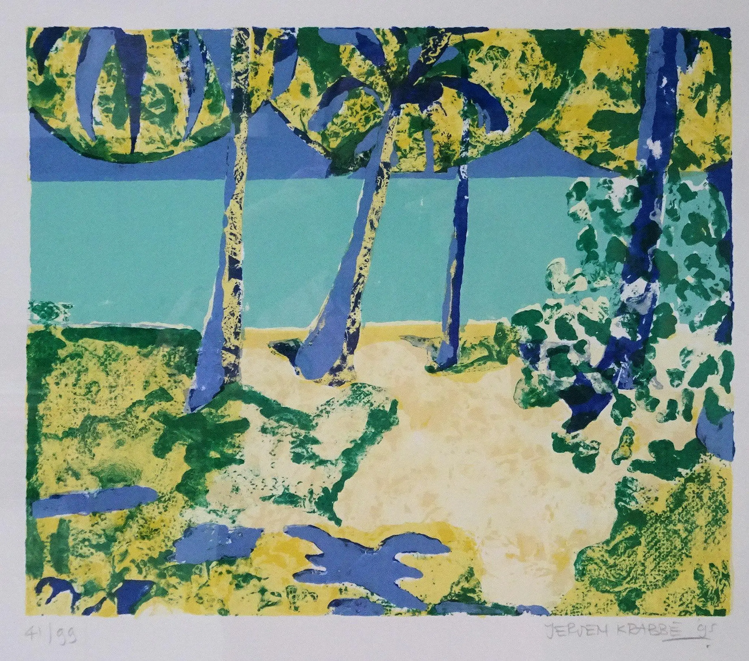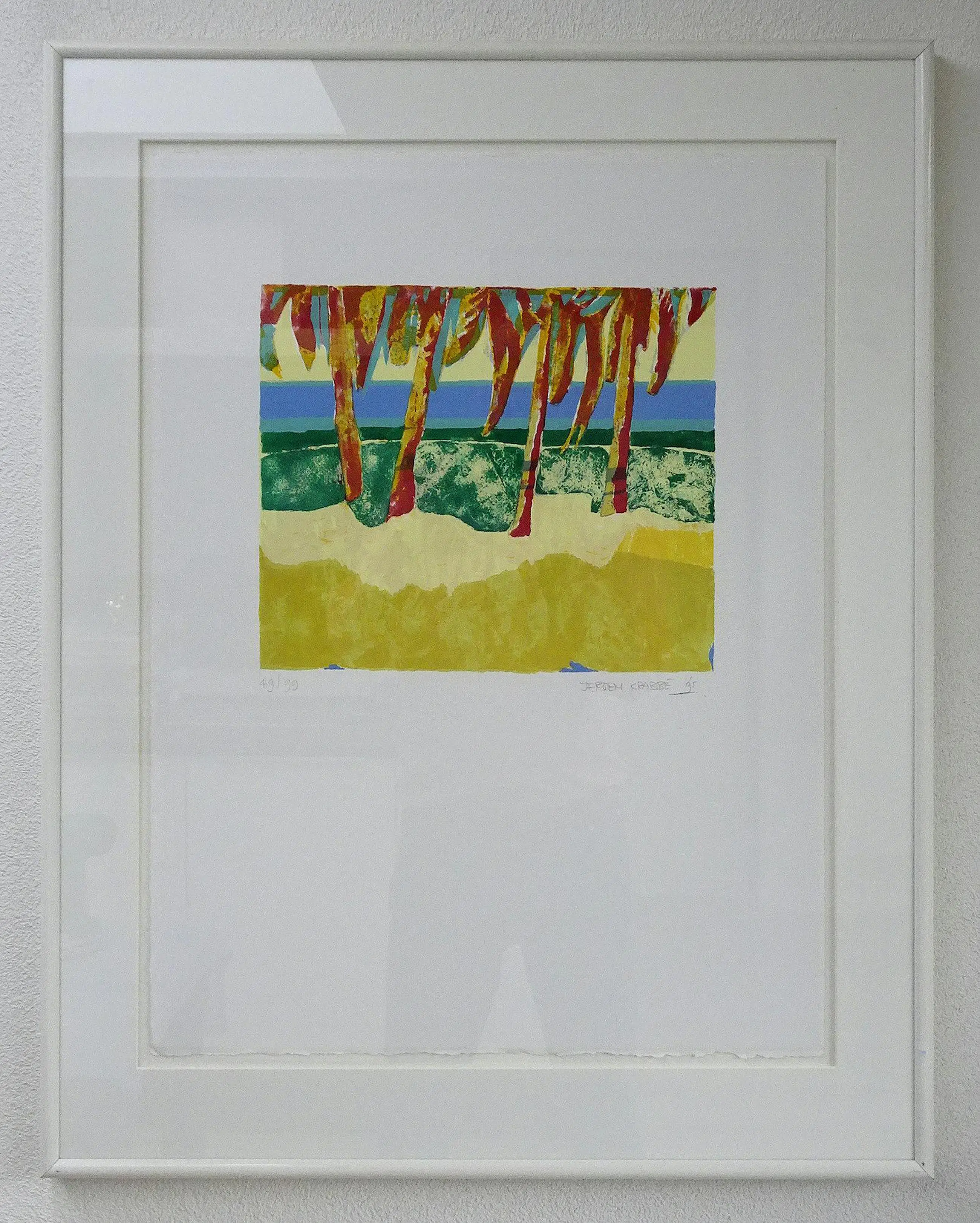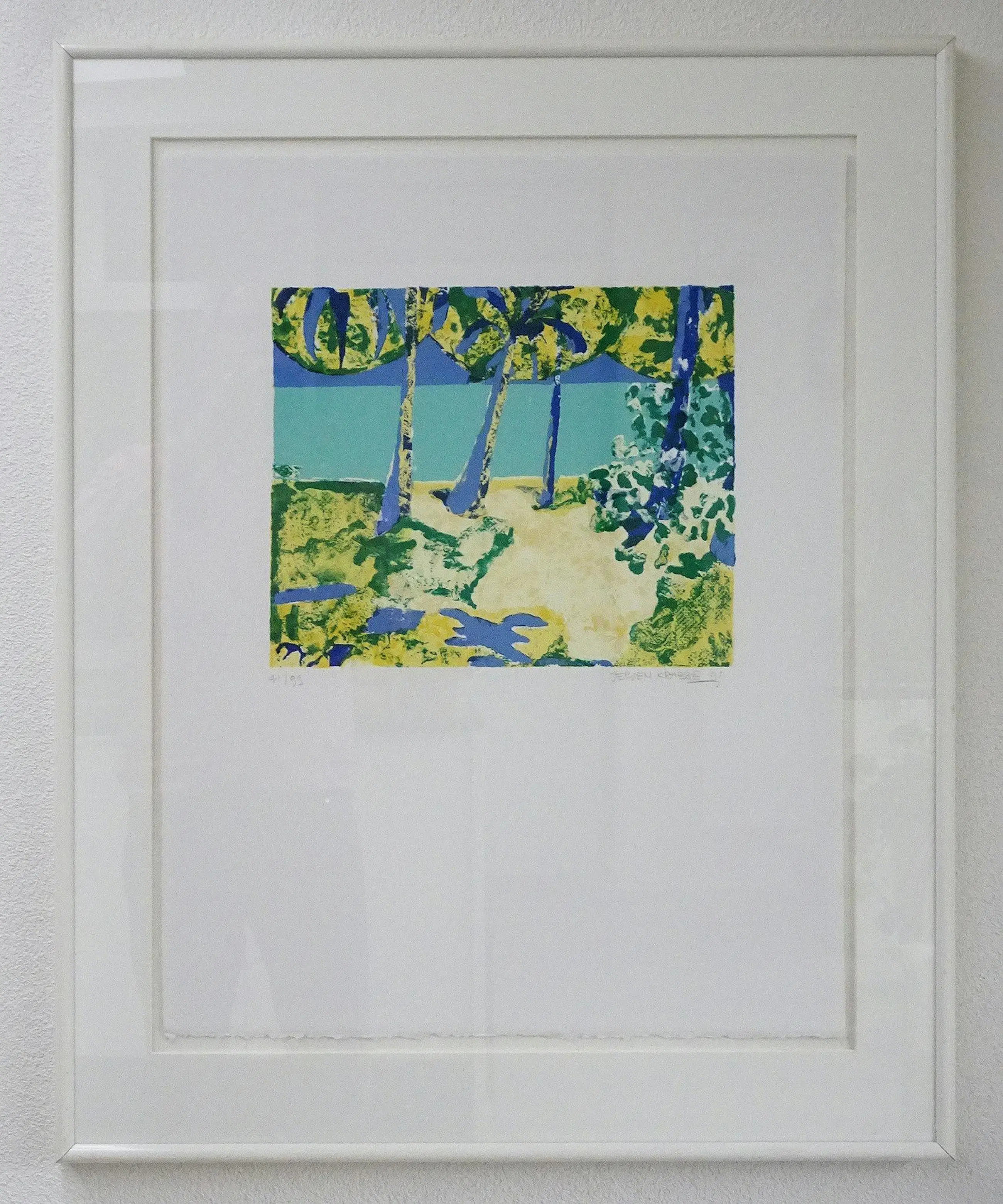 Een zeer frisse zeefdruk welke zeer fraai combineert met mijn andere zeefdruk van Jeroen Krabbé - ‘Rangali Island’ welke hij ook tijdens zijn vakantie in 1995 op de Maladieven geschilderd (zie mijn andere aanbieding en foto 9 en 10)