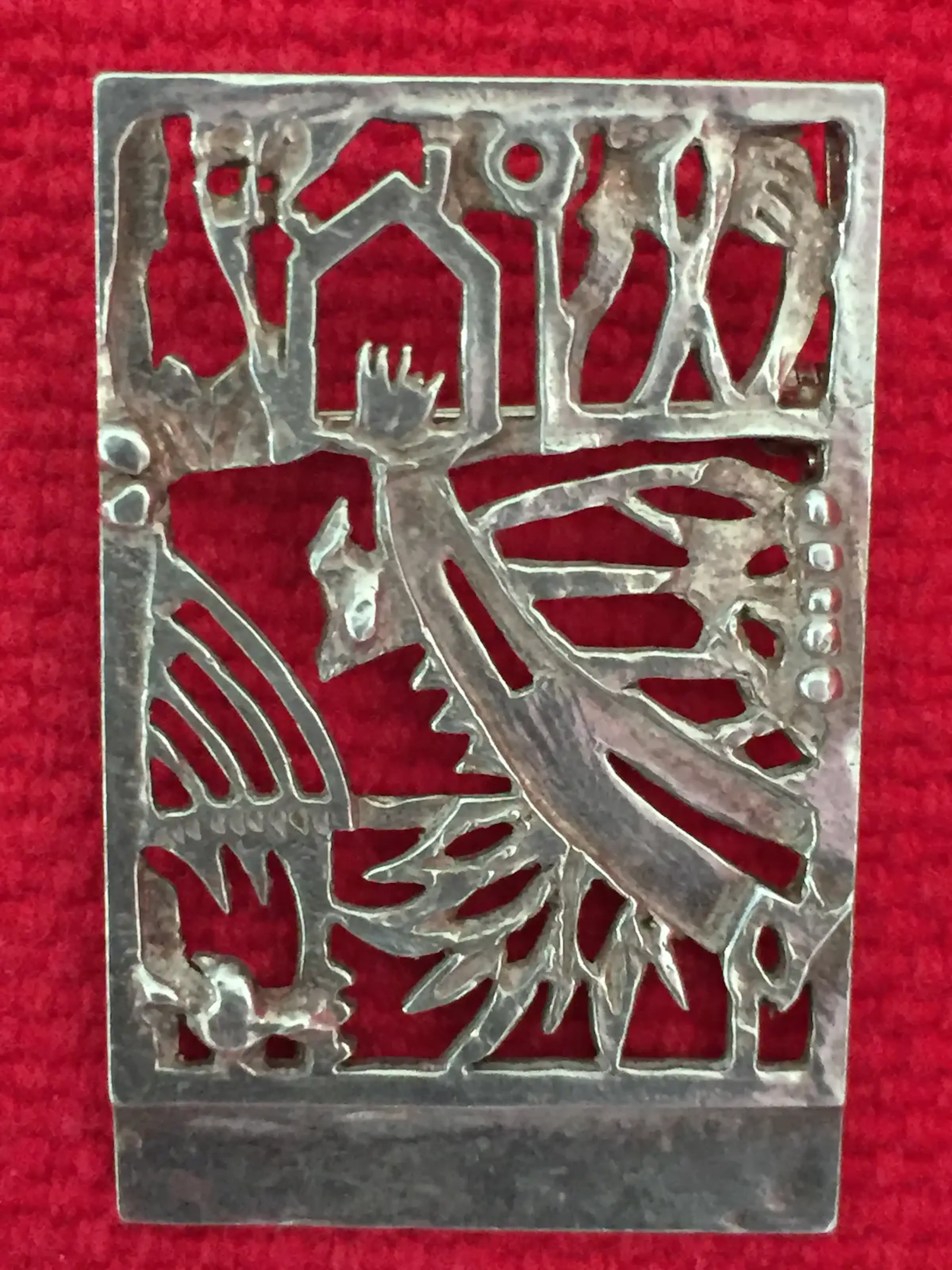 Het sieraad kan als broche of hanger worden gedragen Tuinpad leidt naar een knus huisje in de natuur