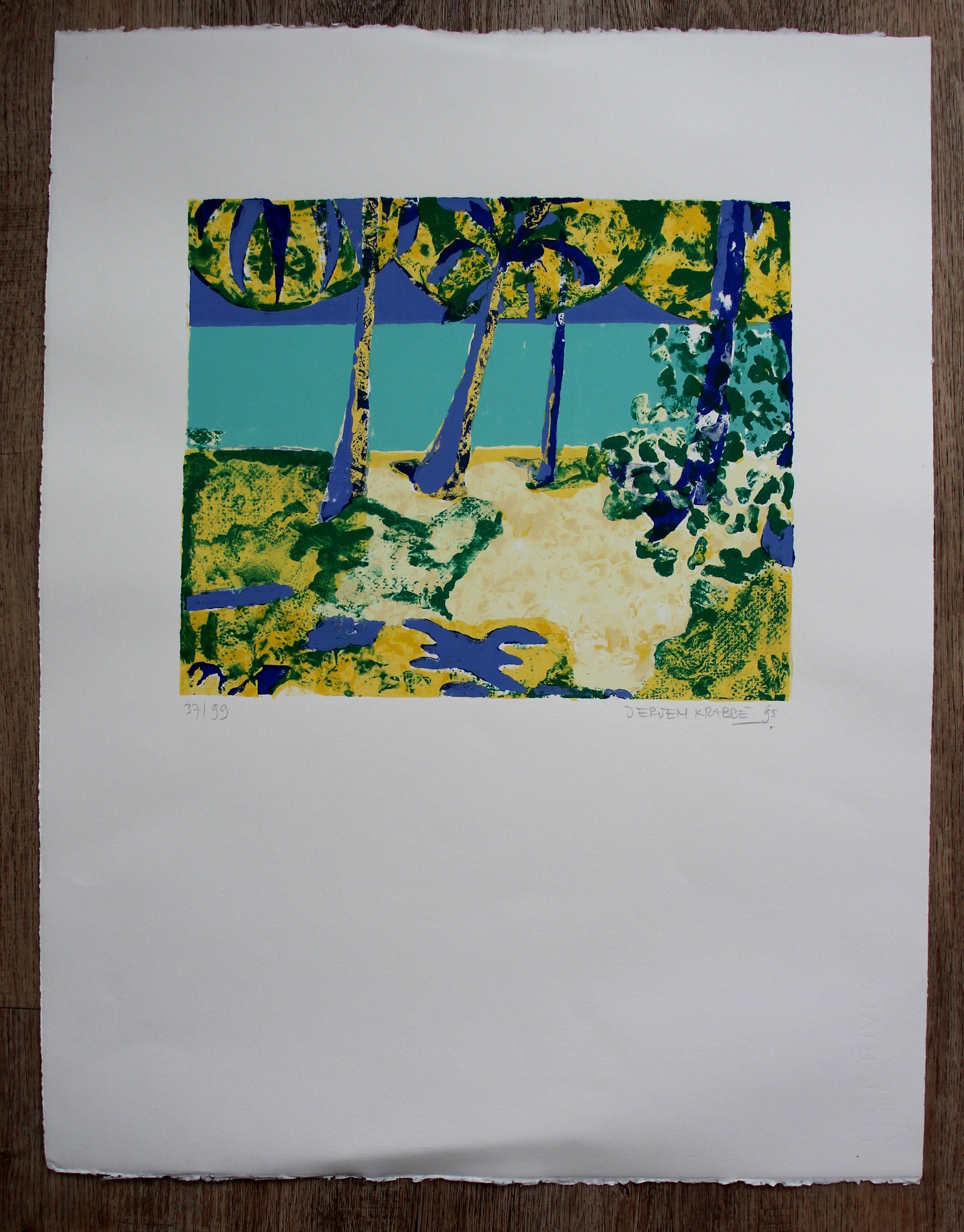 Zeefdruk van Jeroen Krabbe uit 1995. Titel: A view from my window. Nummer: 37/99. Afmetingen werk: H66 x b50.5 cm. Afmetingen voorstelling: H28 x b34cm. Het werk is rechtsonder gesigneerd door de kunstenaar. De authenticiteit van het, aangeboden, werk wordt volledig gegarandeerd. Een certificaat van echtheid kan, op aanvraag, worden gemaild.