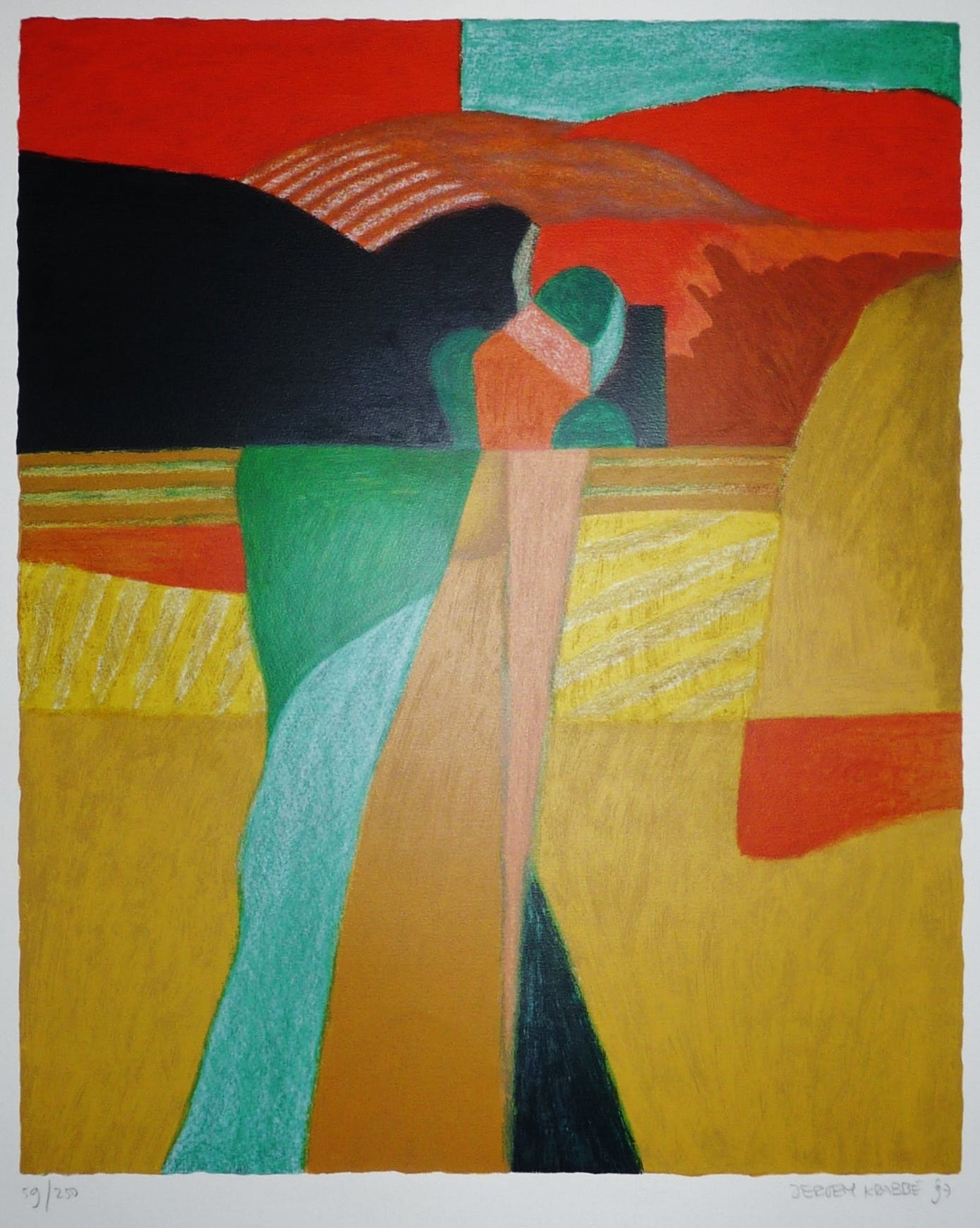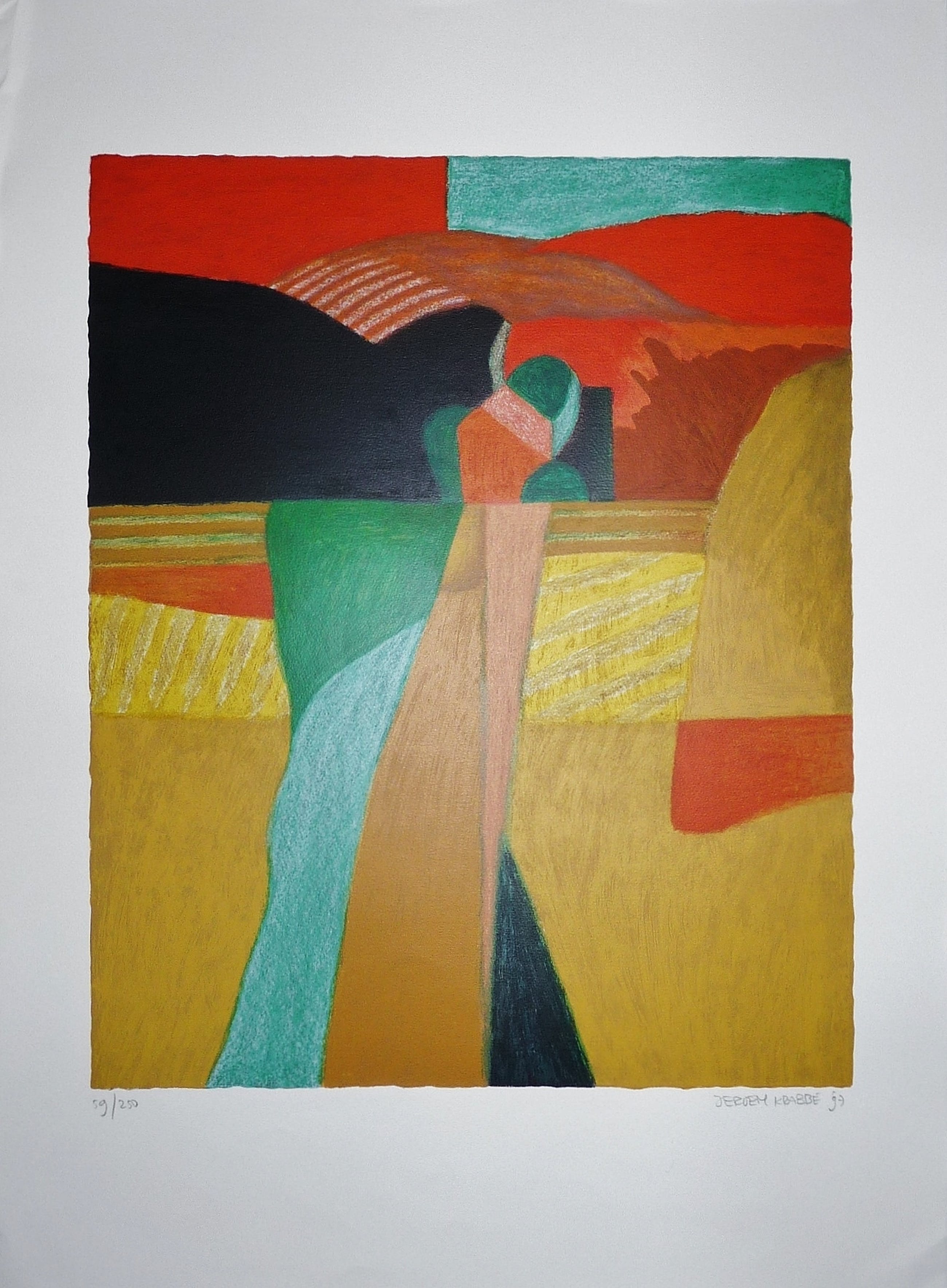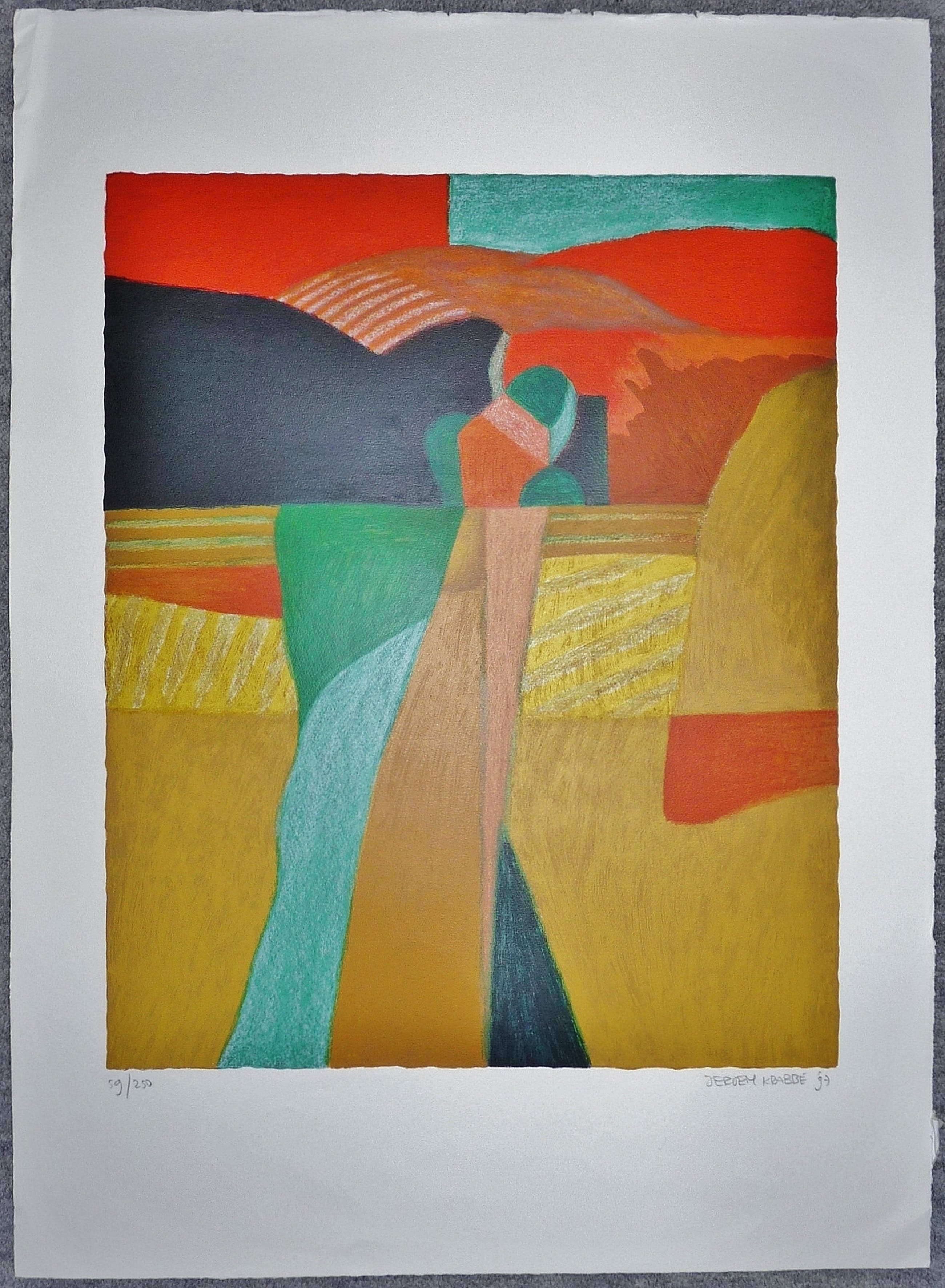 Fraaie zeefdruk van Jeroen Krabbe. Enige tijd geleden kwam deze prent zeer regelmatig op de markt. Nu inmiddels meer schaars geworden.