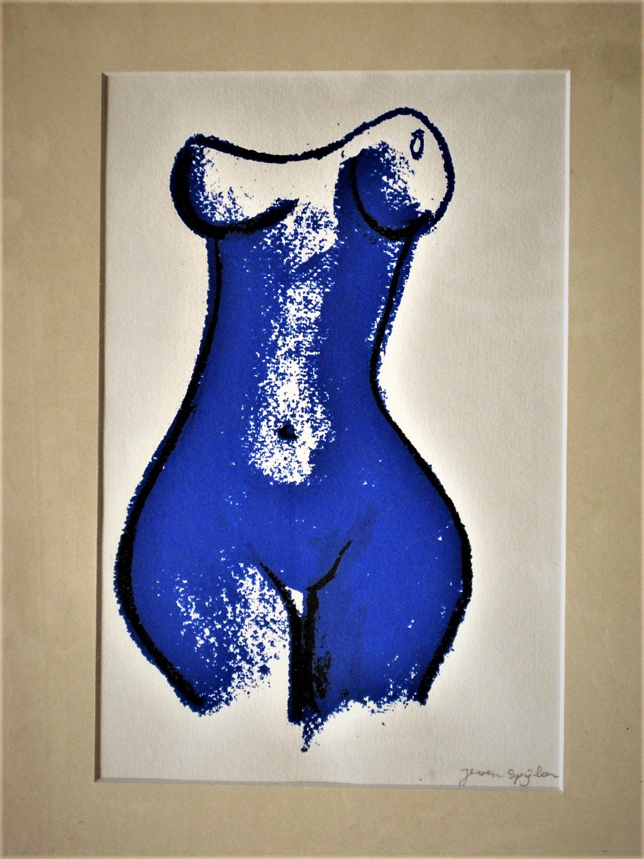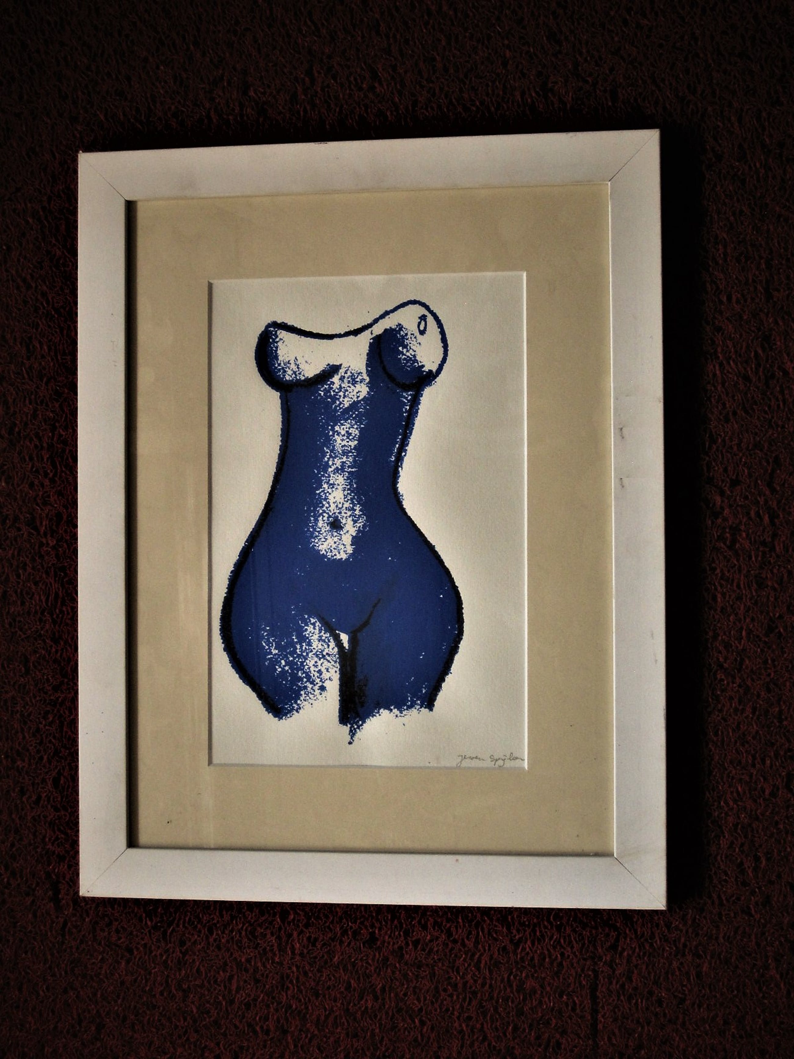 | diepblauwe kleuren. Professioneel gelijst. | |||
