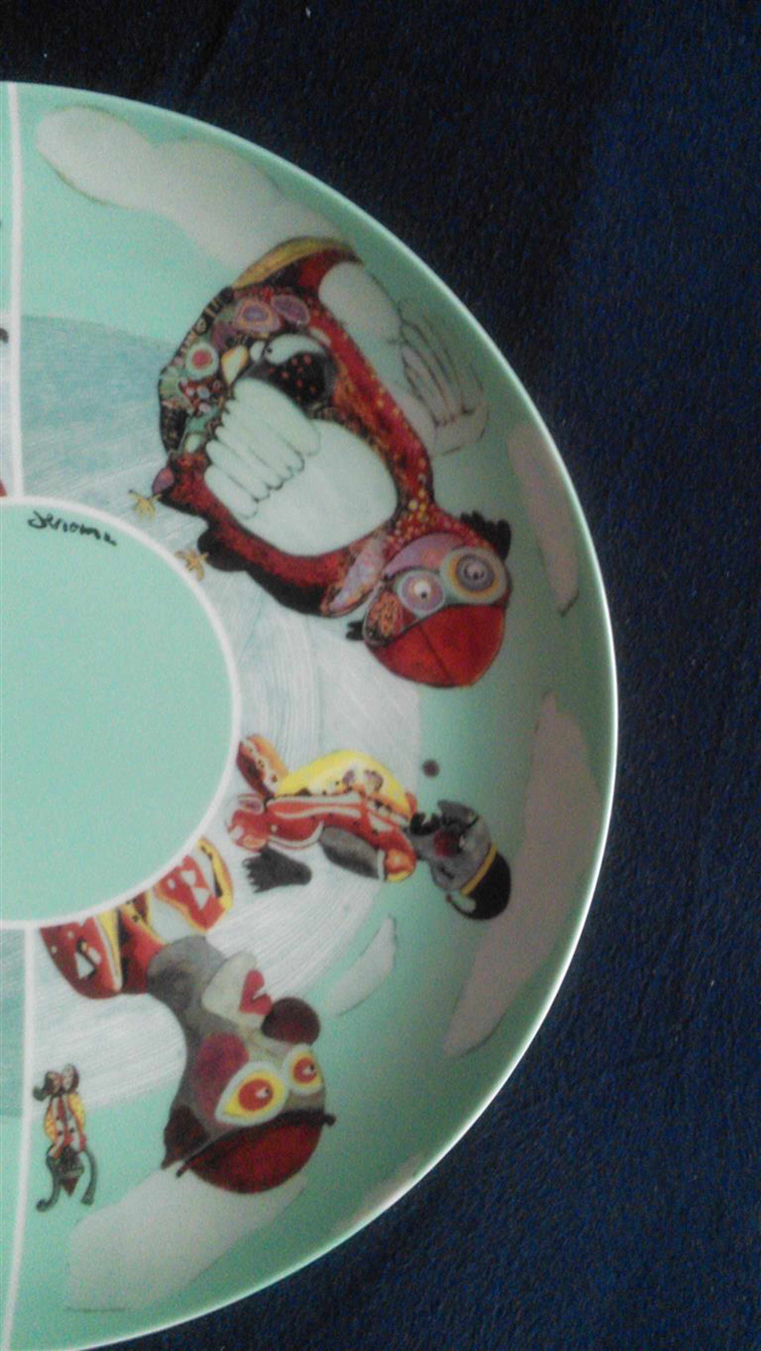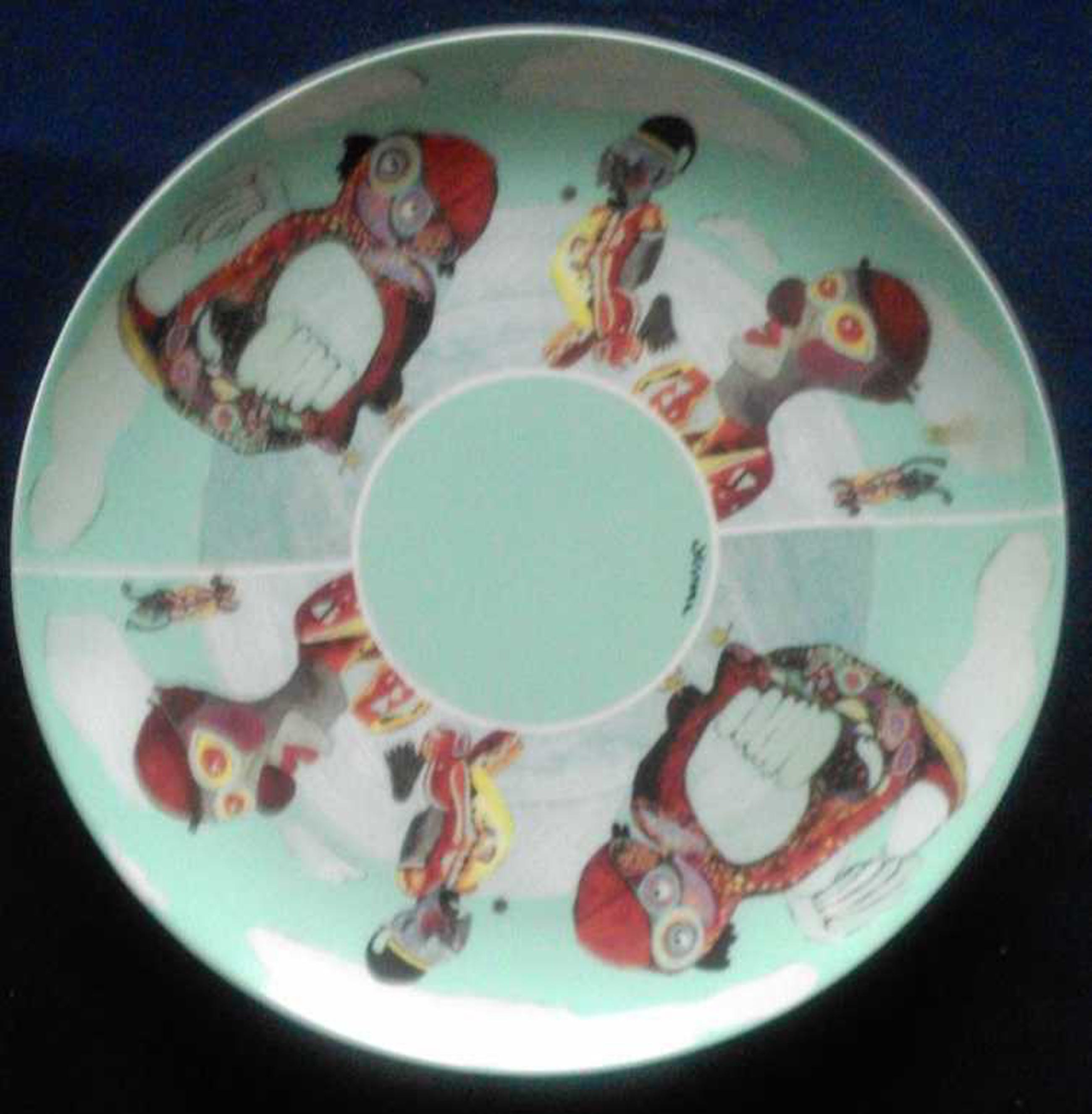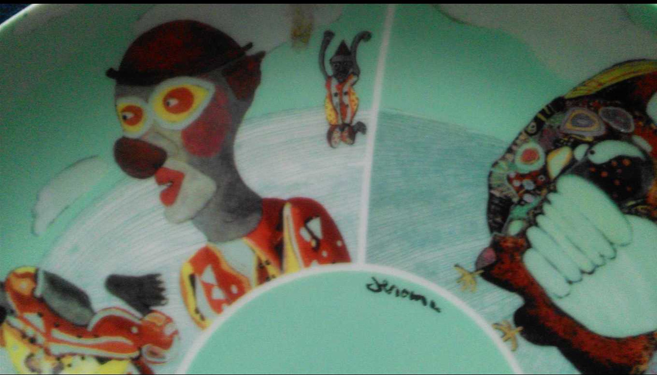 Proeven van Kunstbord van Romantik hotel restaurant 't Jagershuis (Ouderkerk aan de Amstel) gemaakt bij Schoonhoven Keramiek decor Jerome Bech met titel : Sometimes it takes courage to be free De figuren op het bord durven het