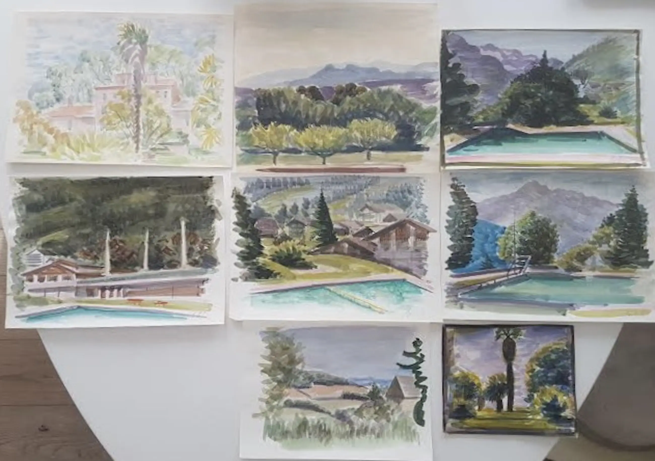 Nice collection of drawings, watercolors and gouaches by Polish artist Jerzy Mierzejewski. 16 works of art , 8 x landscape and 8 x portraits and nudes , different sizes ( most 45 x30, 35 x 25 ) most of them signed in pencil , period 1970 en 1980's .
