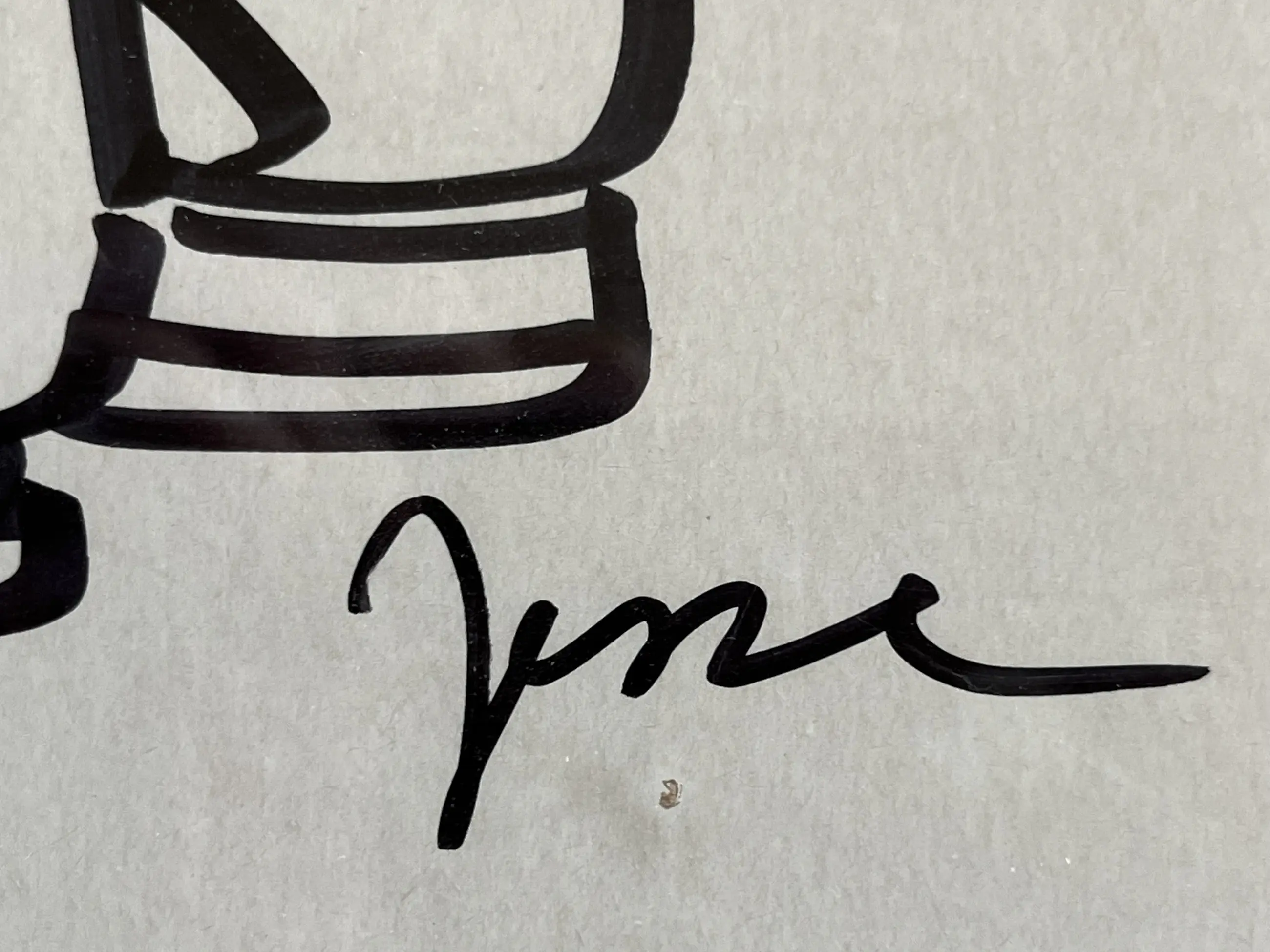 Leuke tekening uit de voormalige RABO collectie. Tekening is gelijst in aluminium wissellijst. Afmeting 62,5 x 89,5 cm.