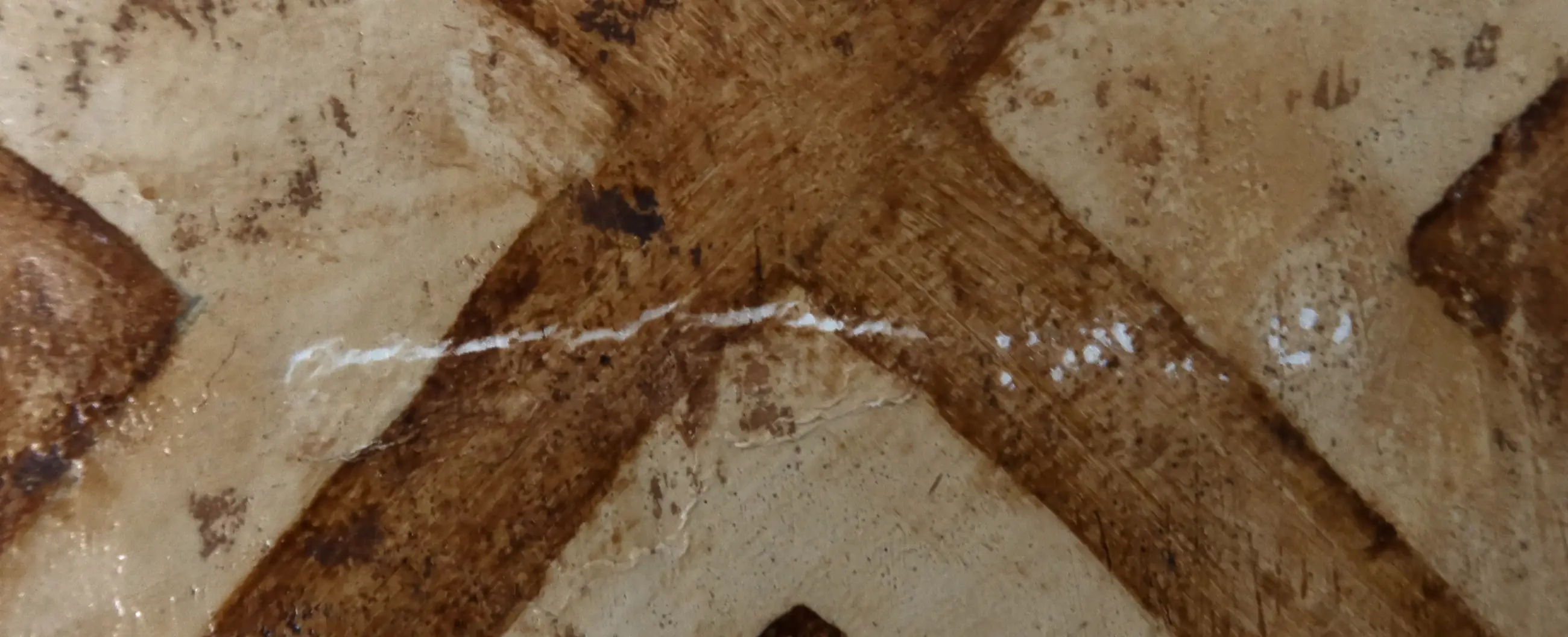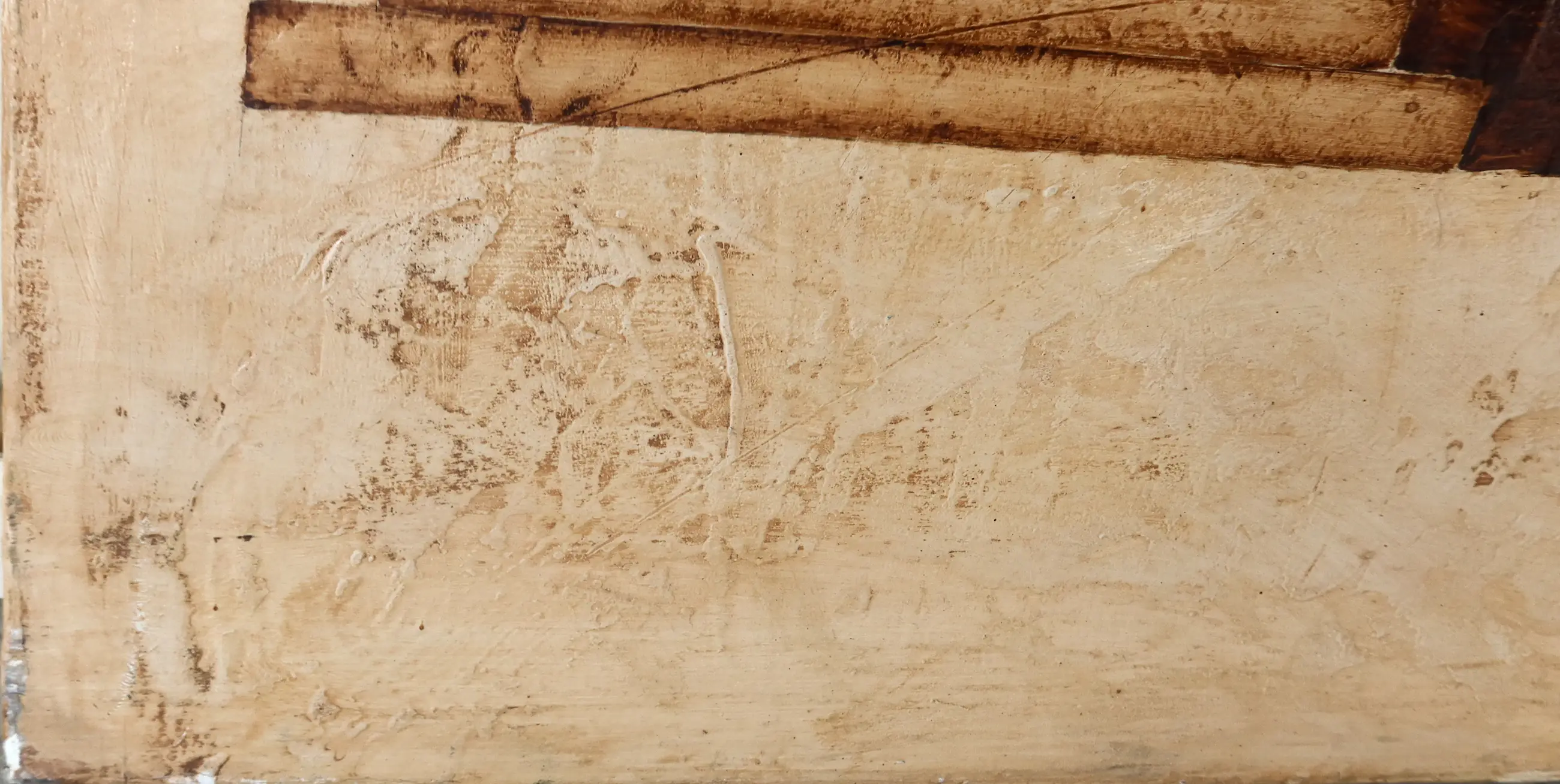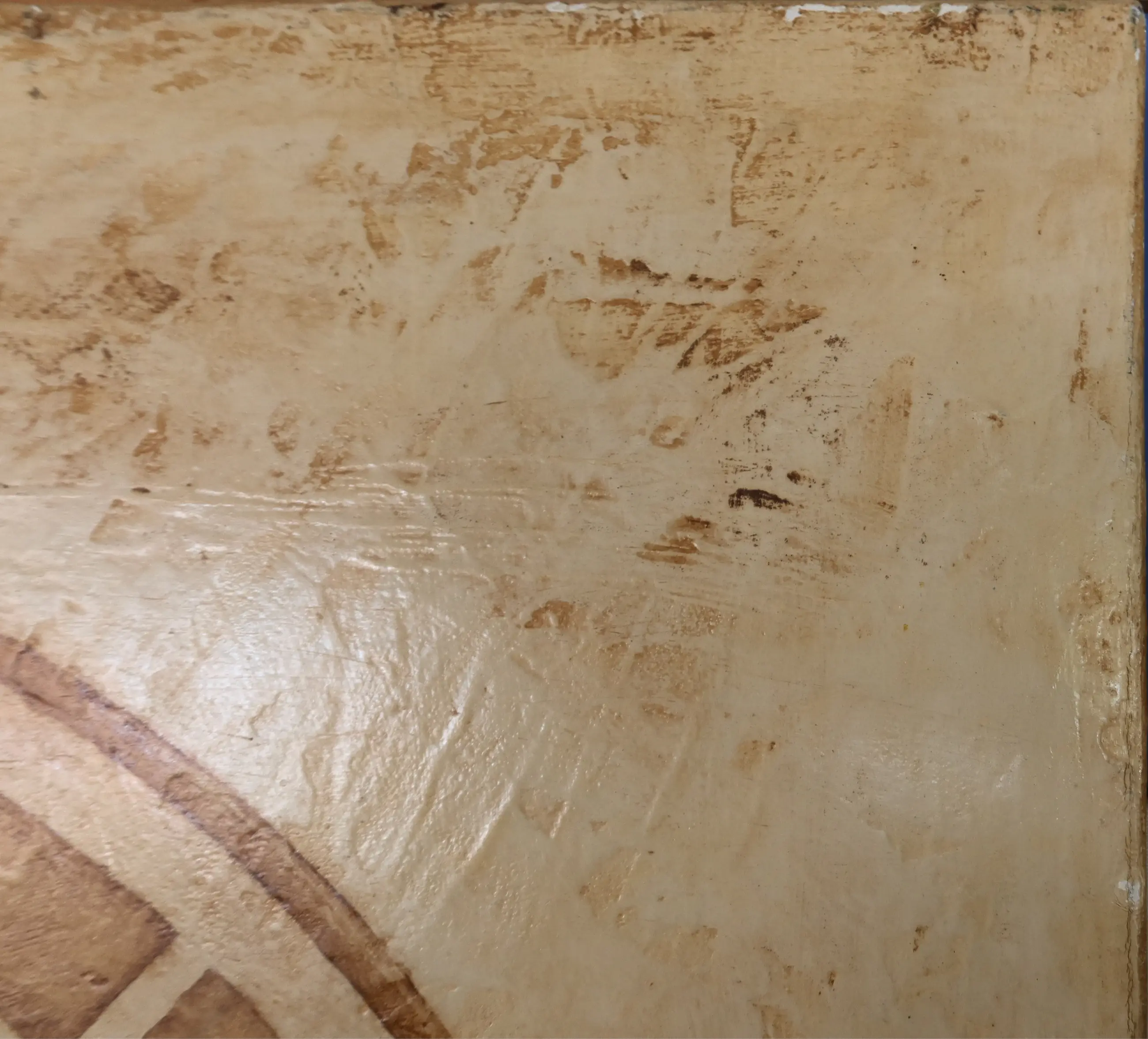 | Kleine plekjes verfschade, voornamelijk aan de randen en in de hoeken. | |