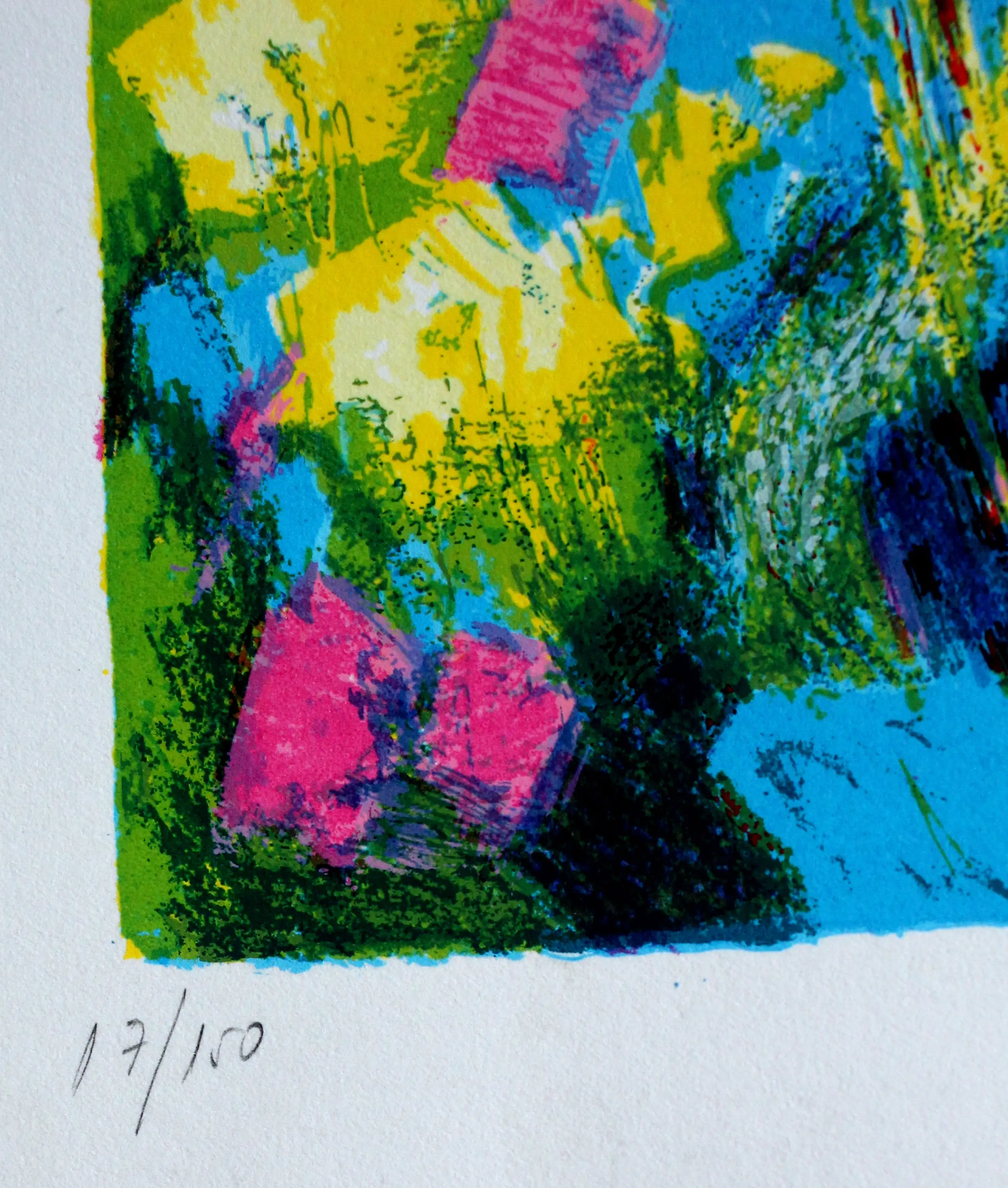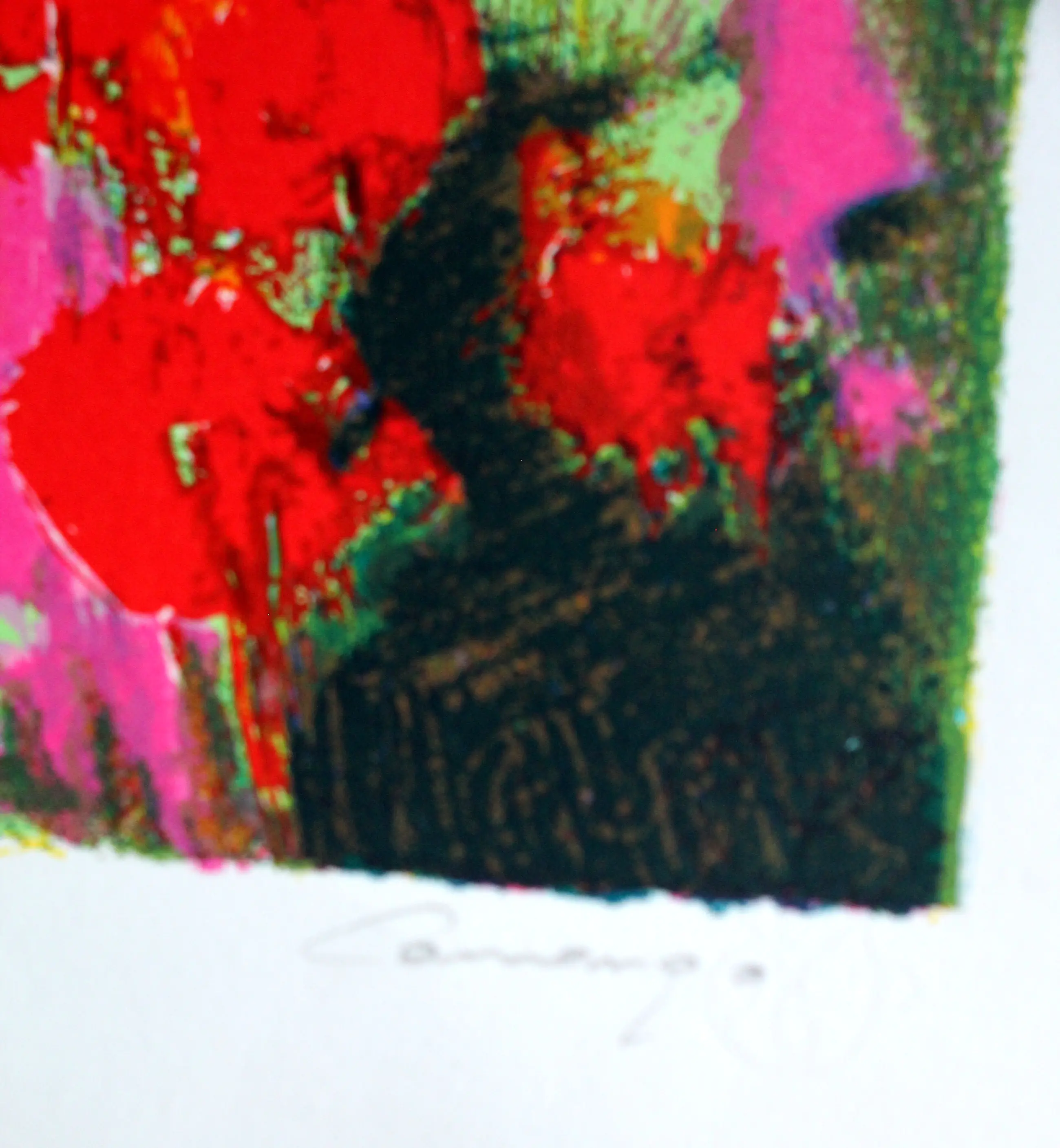 Kleurrijke zeefdruk van Jesus Pablo Camargo. Nummer: 17/150. Afmetingen voorstelling: H50 x b62 cm. Het werk is rechtsonder gesigneerd door de kunstenaar. De authenticiteit van dit werk wordt volledig gegarandeerd. Een certificaat van echtheid kan, op aanvraag, worden gemaild.