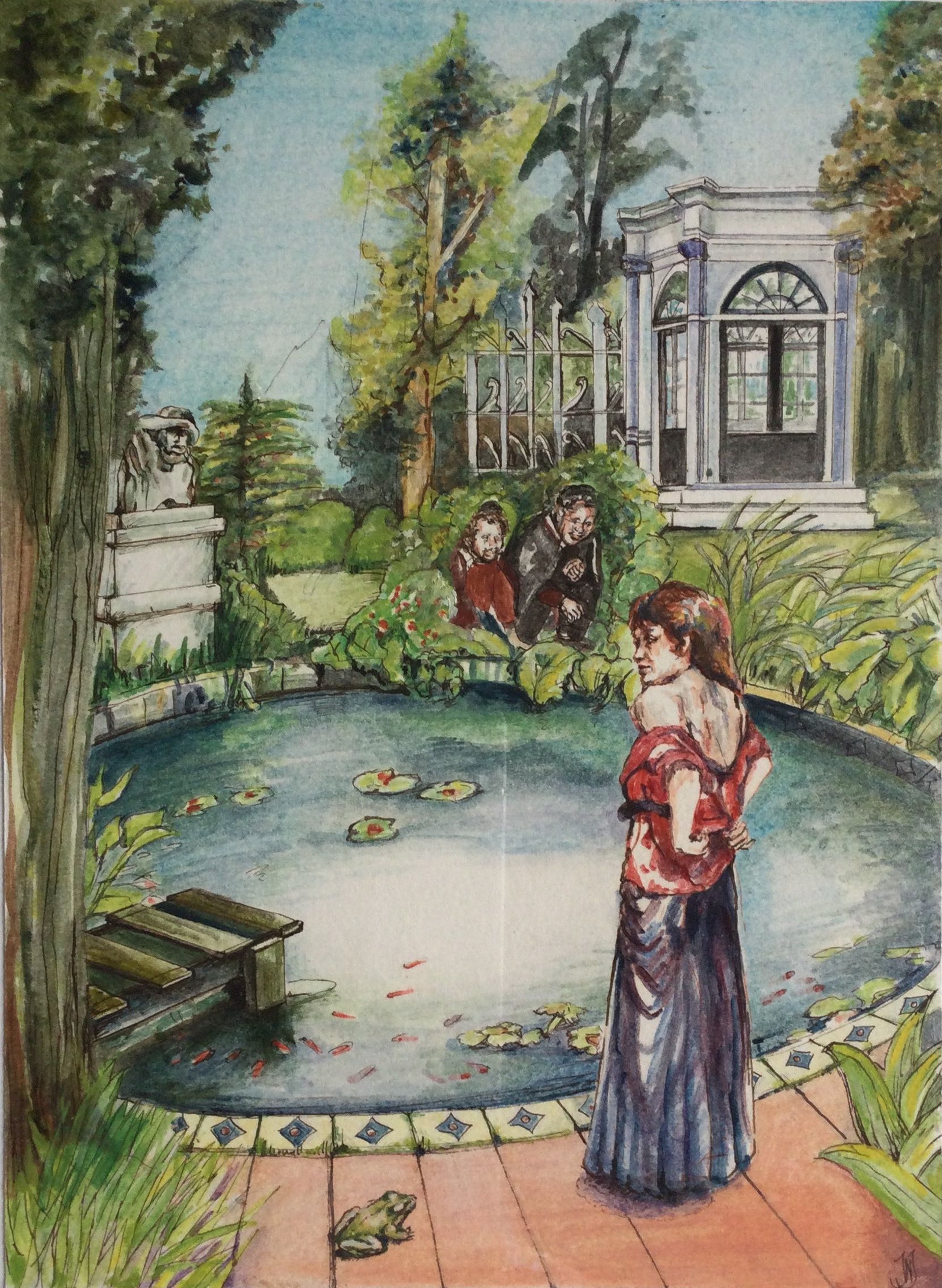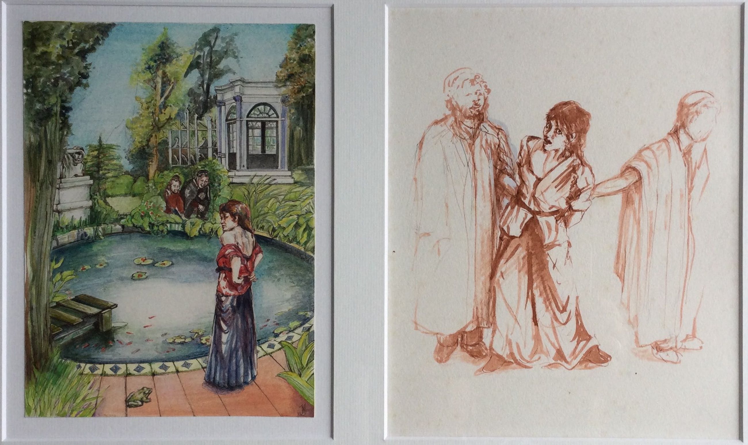 Een uniek serie van 4 ingelijste tekeningen en aquarellen van illustrator en kunstenaar
