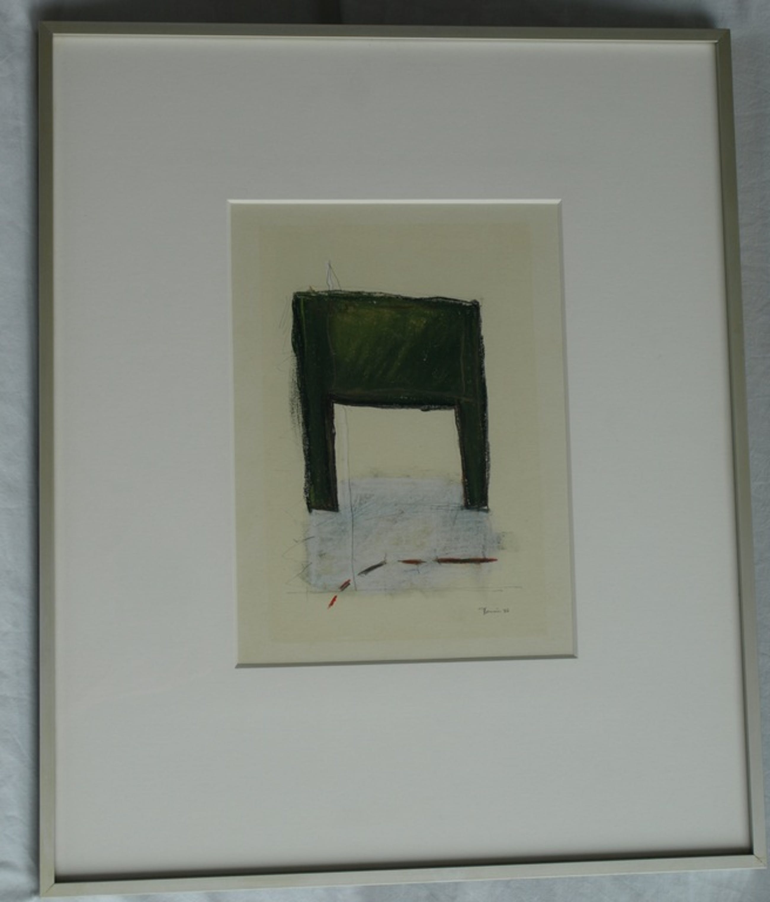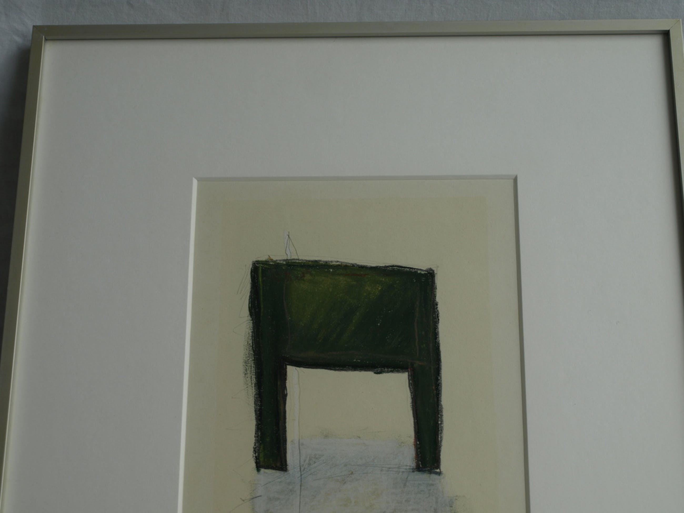 Gesigneerd, gedateerd en ingelijst in een aluminium lijst met passe-partout en glasplaat.