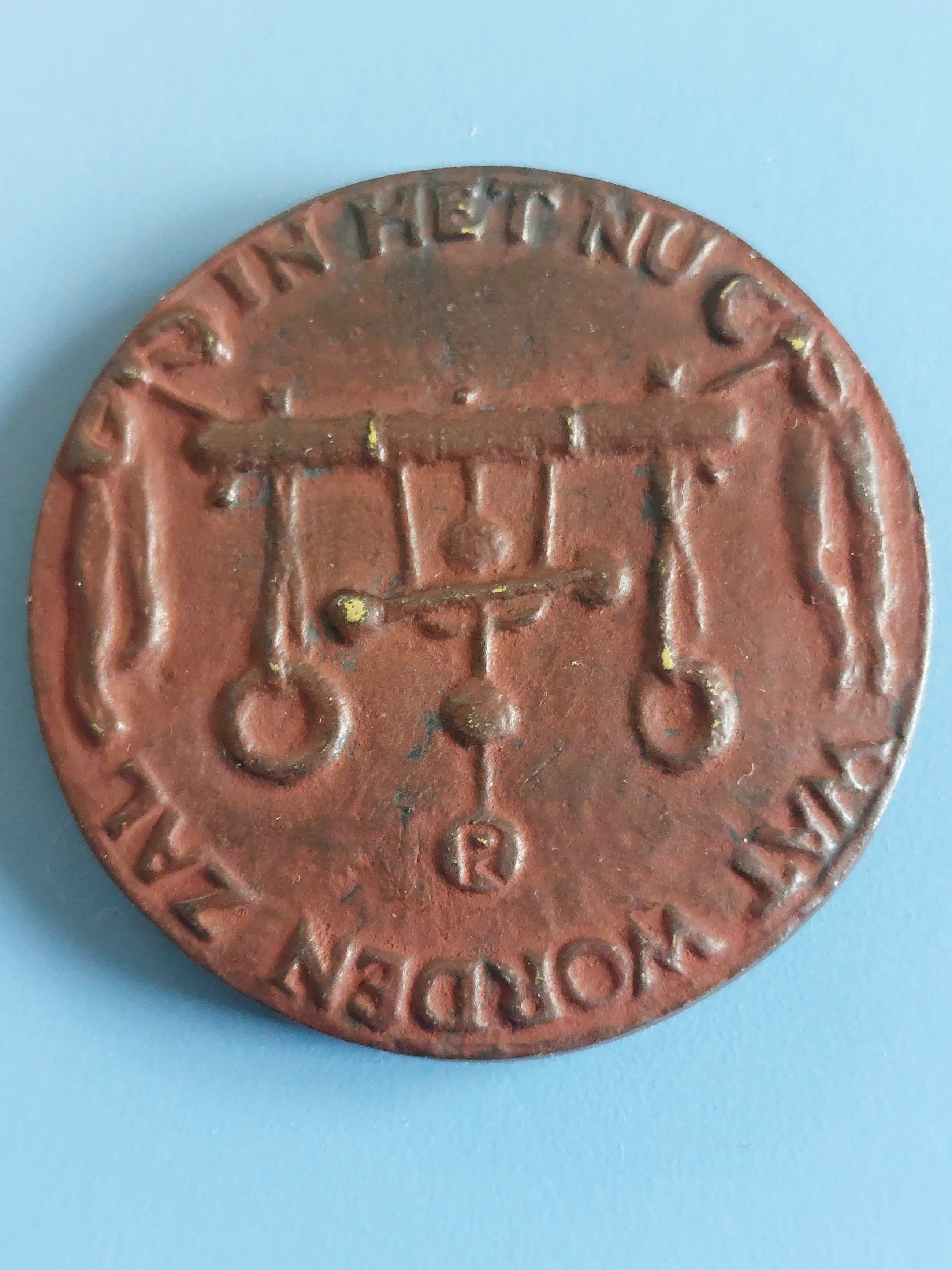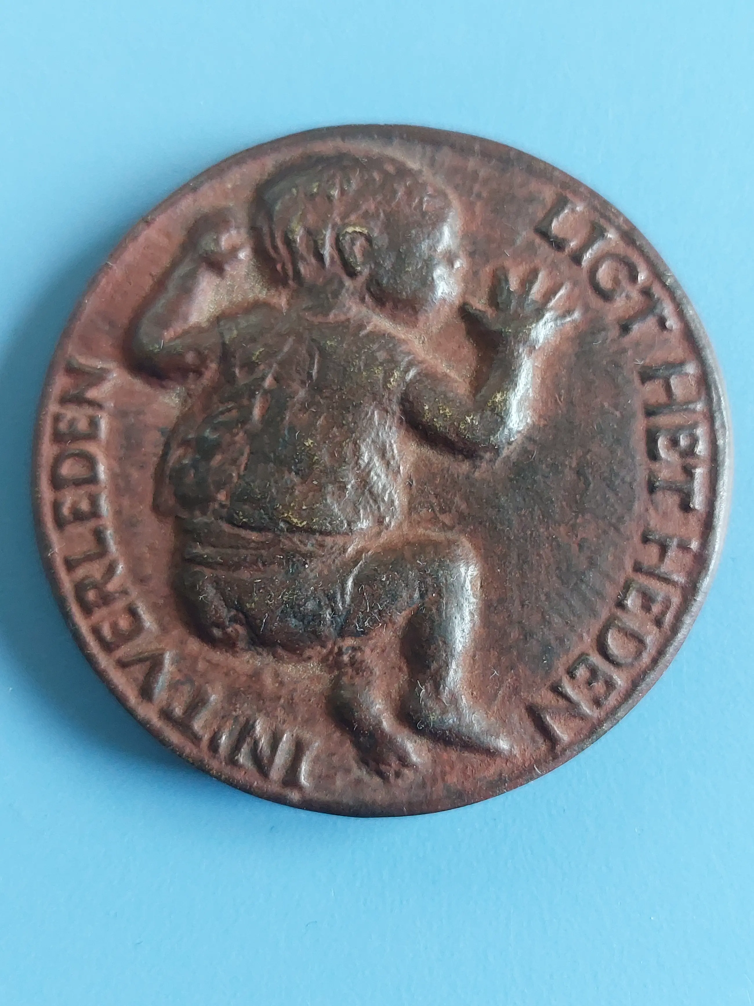 Omdat de Vereniging het belangrijk vindt de traditie van familiale penningen levend te houden is, na de geboortepenning van Christien Nijland uit 1962, opnieuw zo'n opdracht gegeven als jaarpenning, ditmaal aan Jet Schepp. Zij is leerlinge van Esser en Gregoire. Haar liggende kindje met die ontroerende onhandigheid van het nog niet kunnen staan is omgeven door een tekst van Bilderdijk. 'In 't verleden ligt het heden - in het nu wat worden zal'. De tweede regel gaat door op de keerzijde en omcirkelt kinderspeeltuig dat in de box gehangen wordt. In de rand kan een naam gegraveerd worden