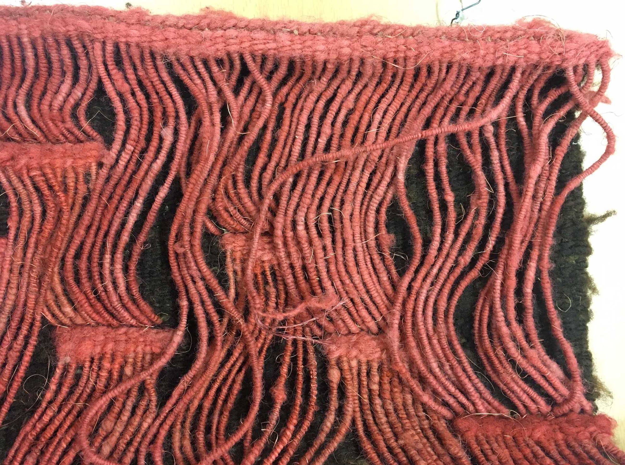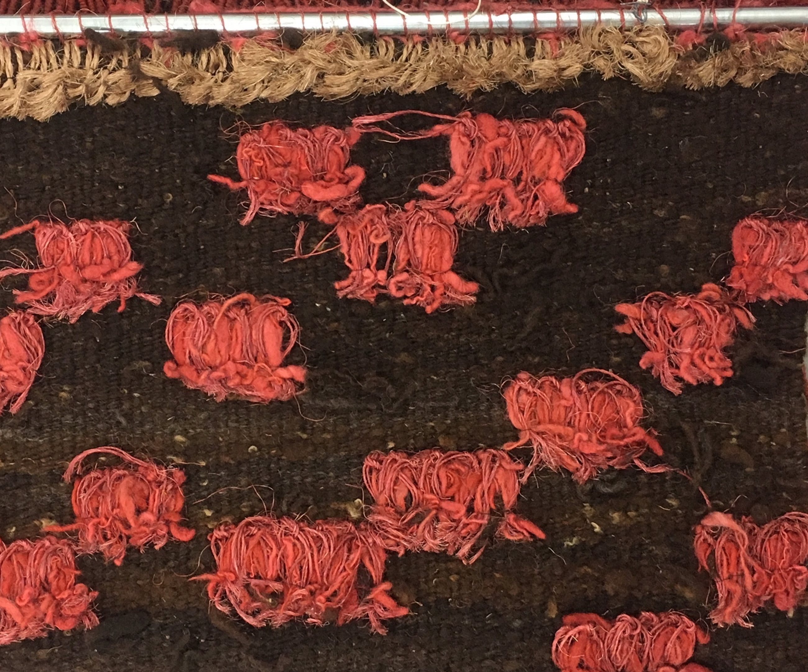 | Er is sprake van slijtage, voornamelijk aan de bovenzijde. Enkele gevlochten strengen zitten hier los. | |||