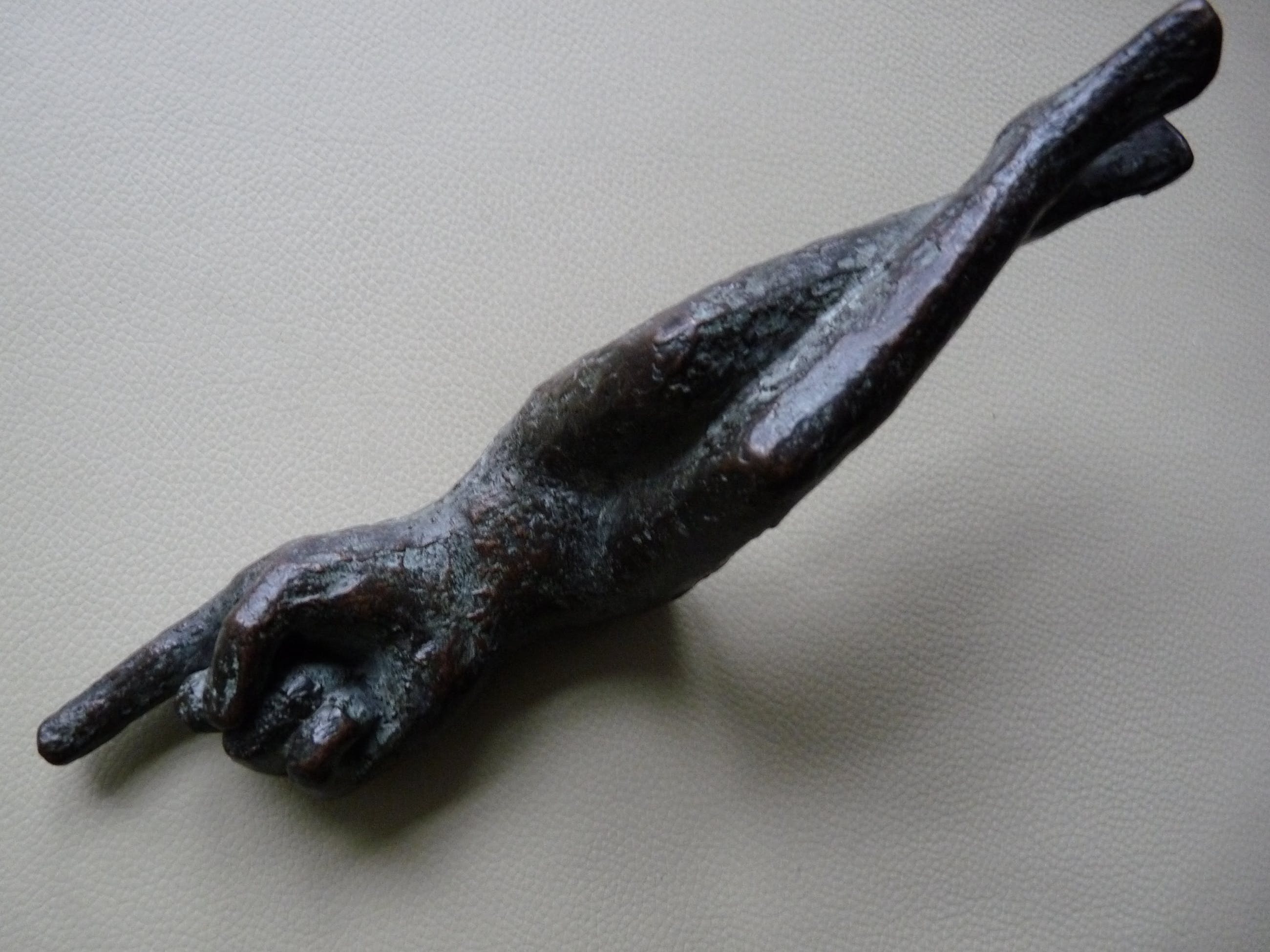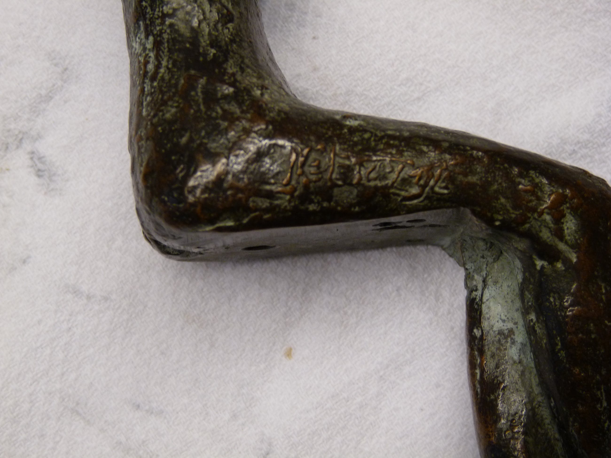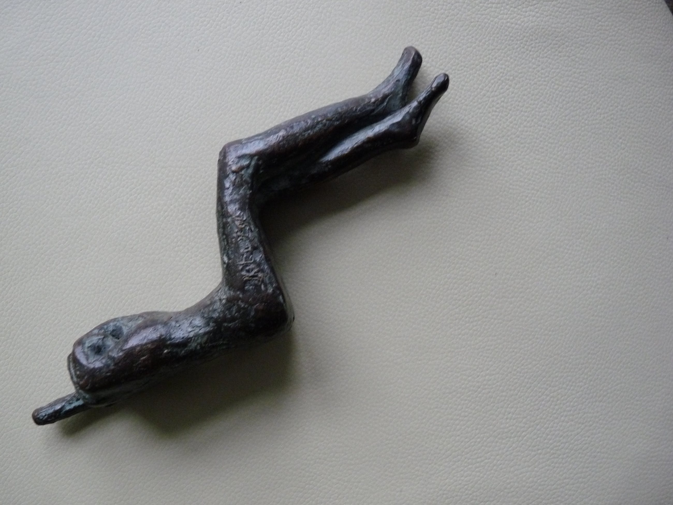 Beeldje is een kleinere uitgave van een beeld wat is afgebeeld in de monografie "Zeggingskracht in brons" van JET VAN ZIJL. Afmeting 21 x 4 x 8 cm. Gesigneerd op buitenkant rechterbovenbeen. (zie detailfoto)