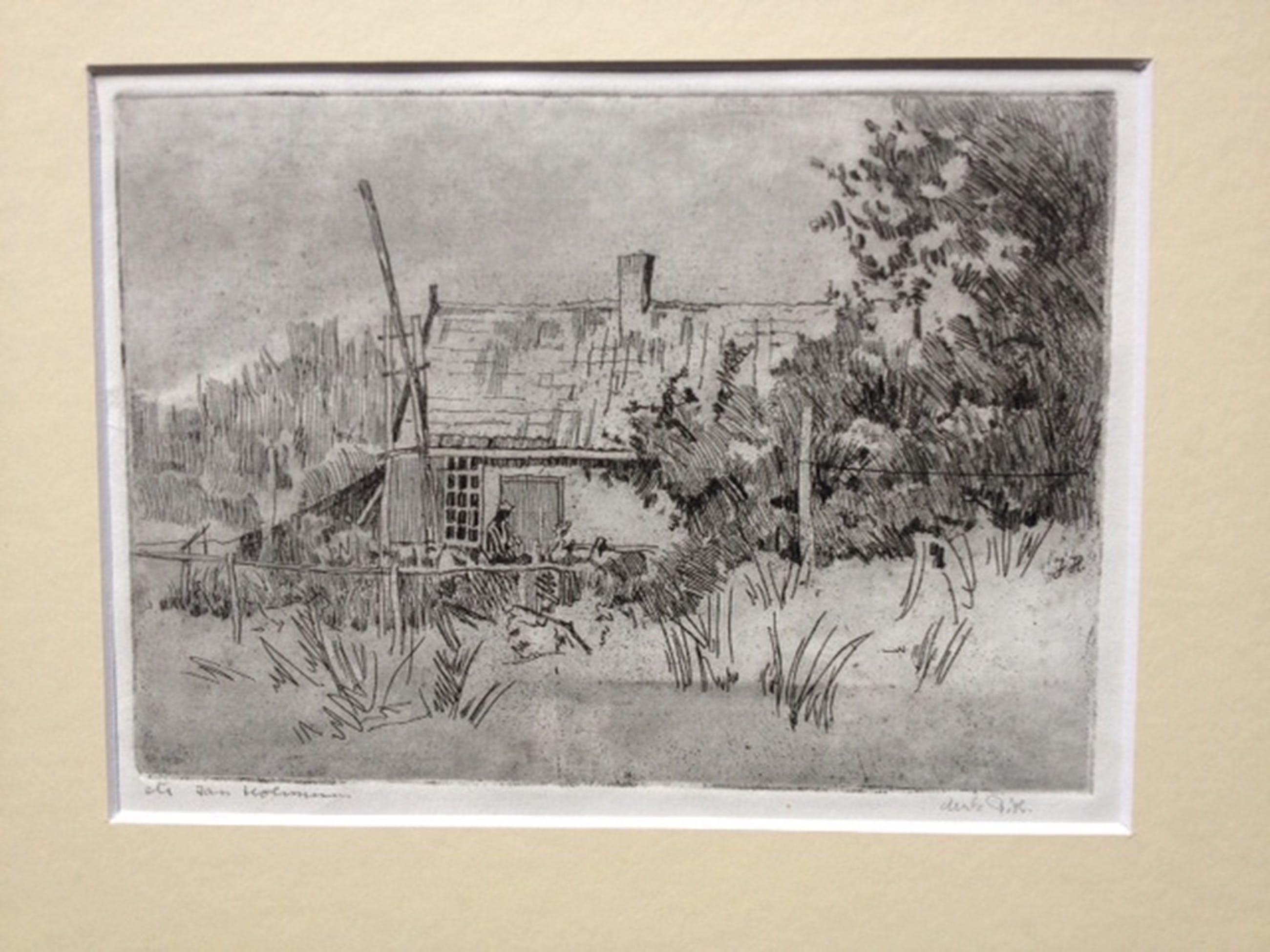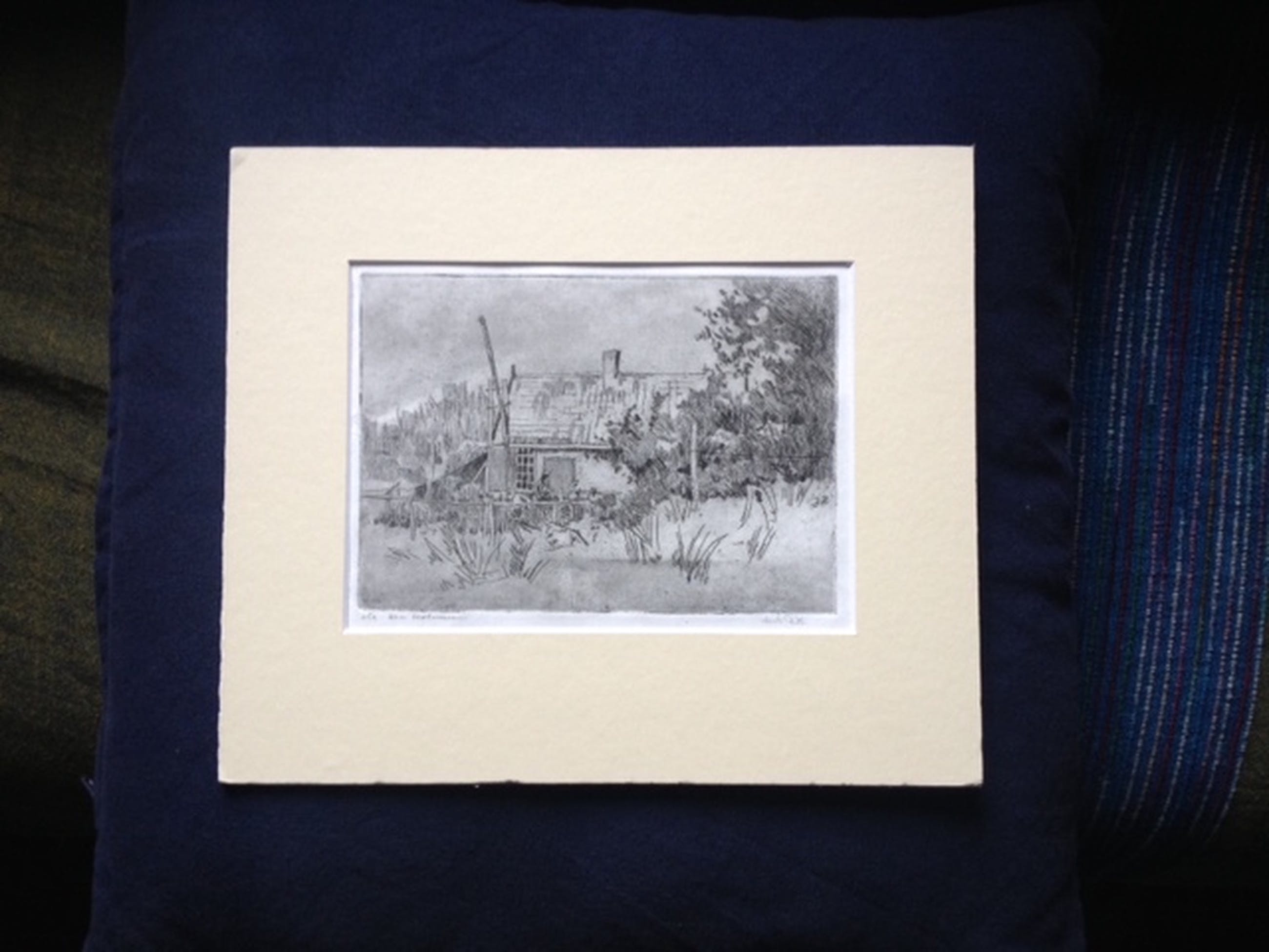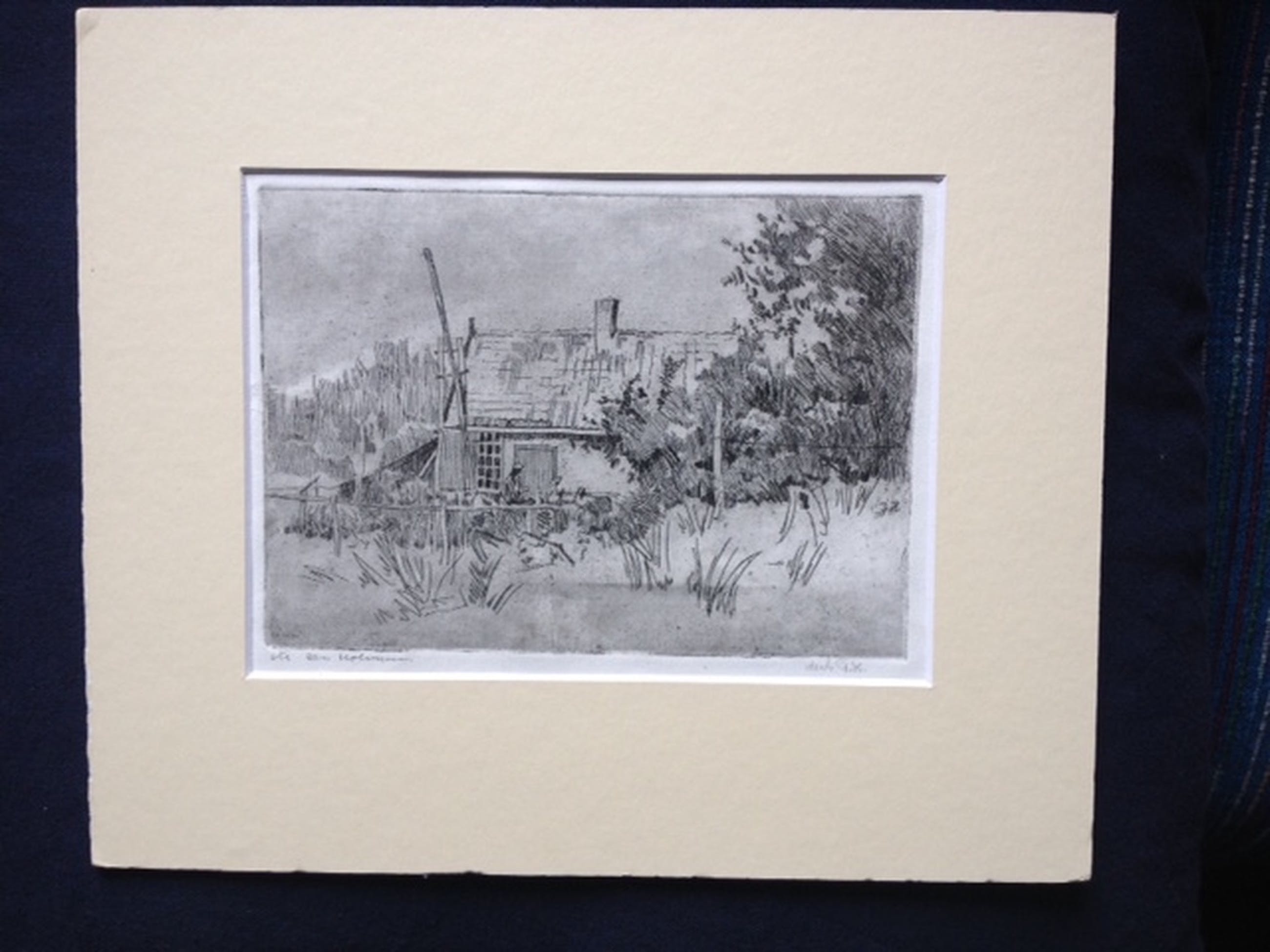 Afmetingen hoogte 15 cm breedte 20,5 cm zonder passe-partout, met passe-partout 26 cm en breedte 30,5 cm. Werk is niet ingelijst.