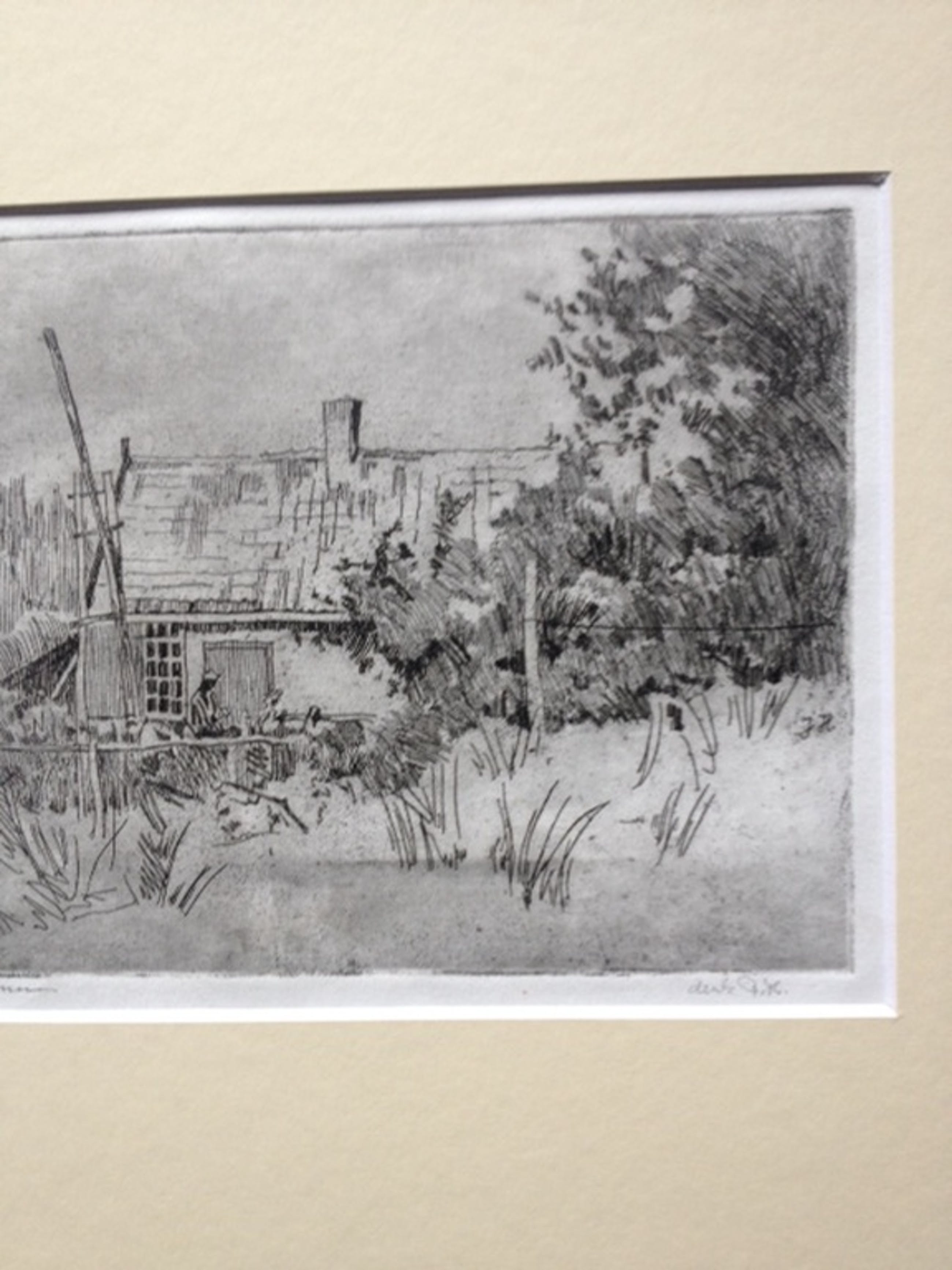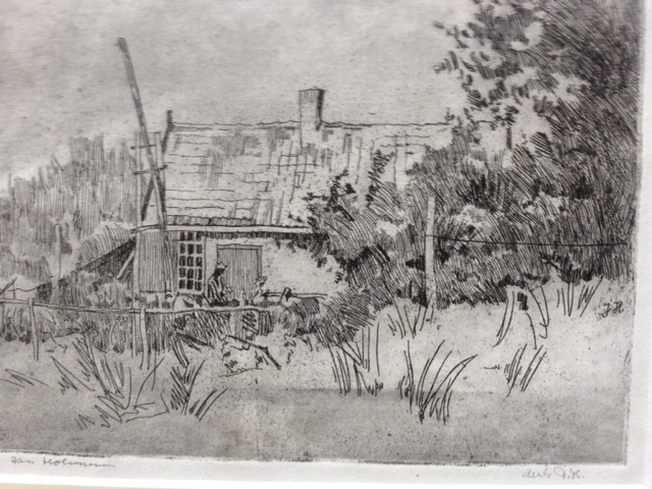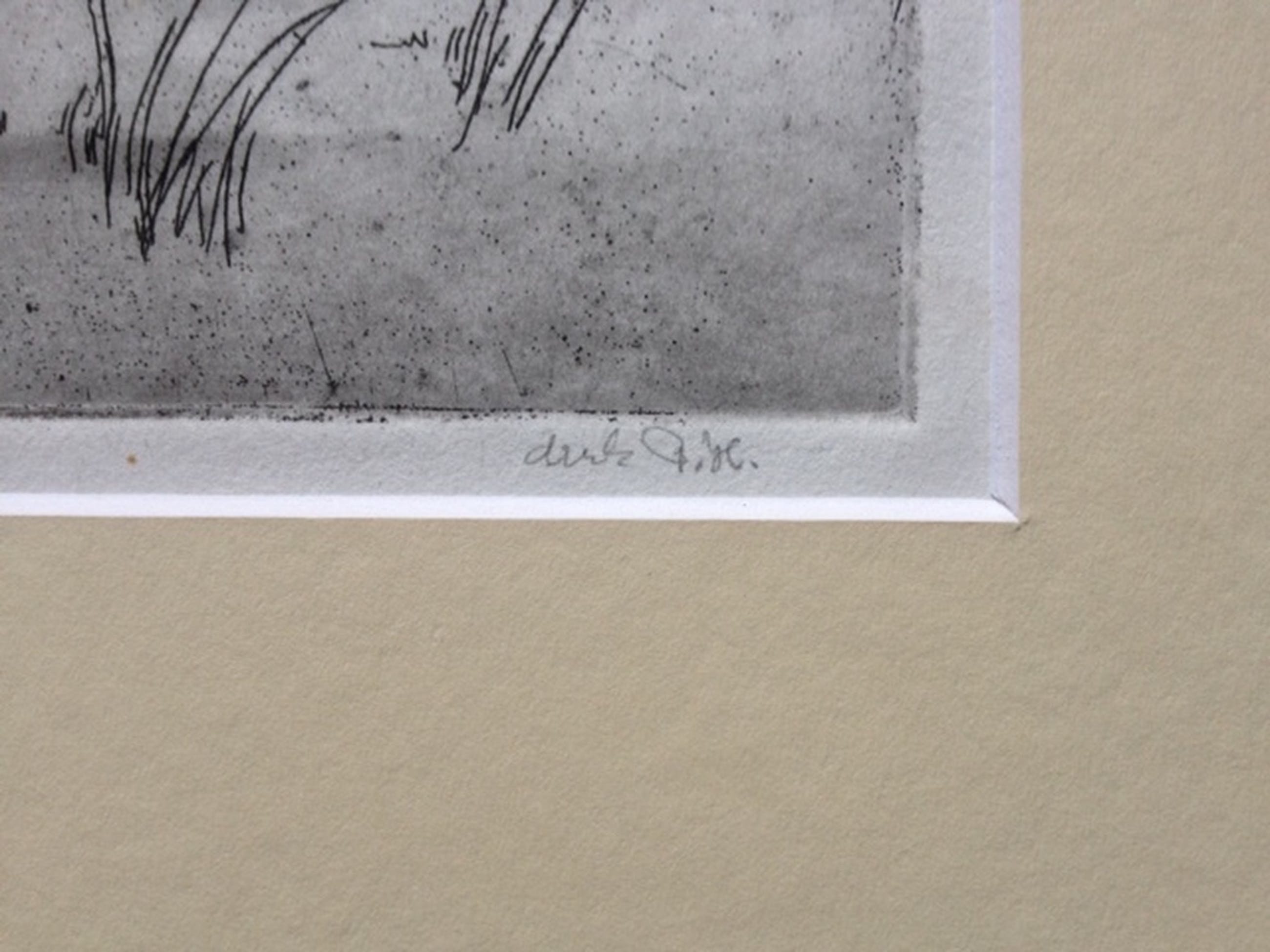 Afmetingen hoogte 15 cm breedte 20,5 cm zonder passe-partout, met passe-partout 26 cm en breedte 30,5 cm. Werk is niet ingelijst.