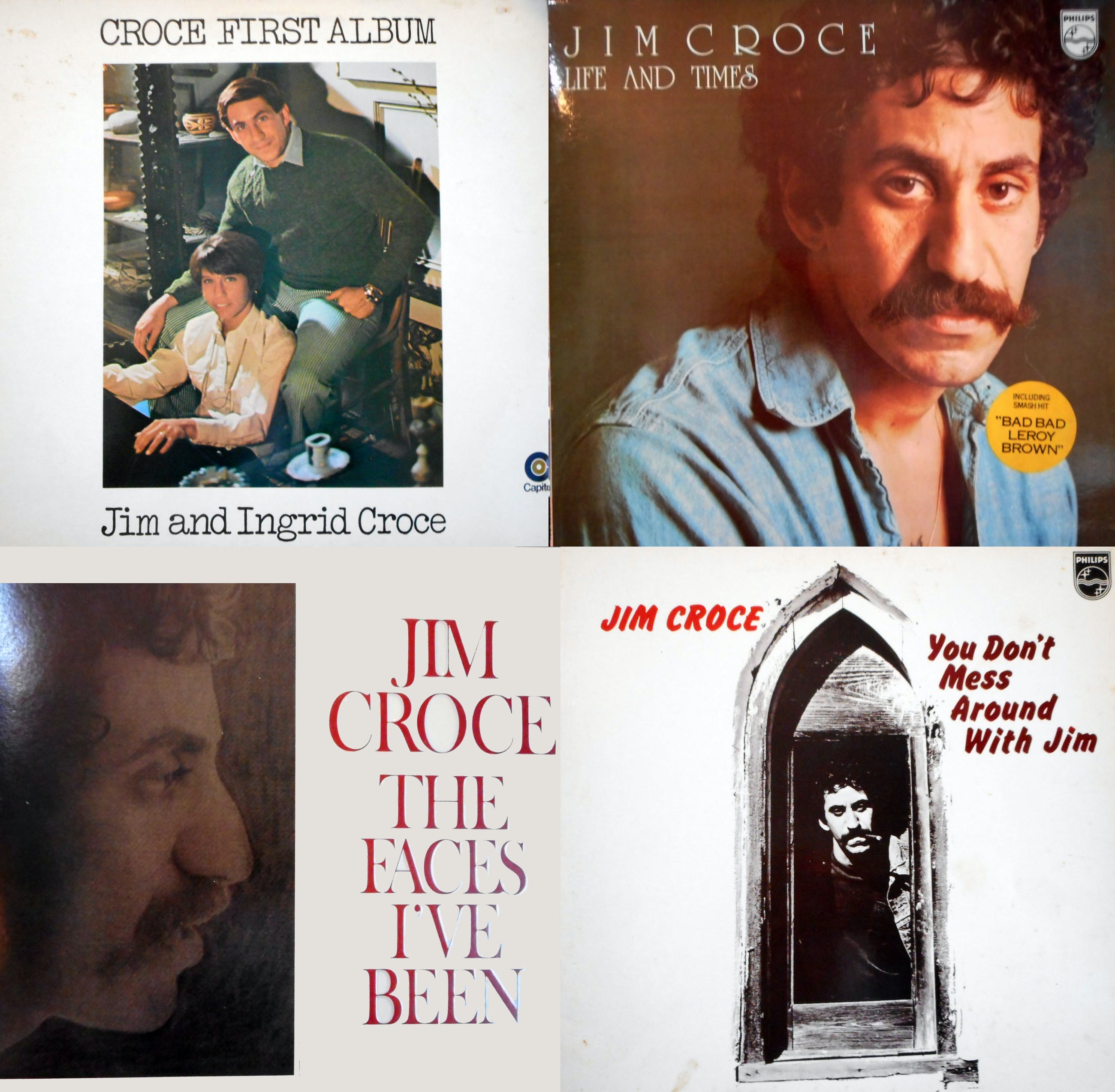 1971: You don't mess around with Jim (Philips) 1972: Life and Times (Philips) 1975: The faces I've been (dubbel LP) (Lovesong Records) 1975: Croce First Album "Jim and Ingrid Croce" (Capitol)