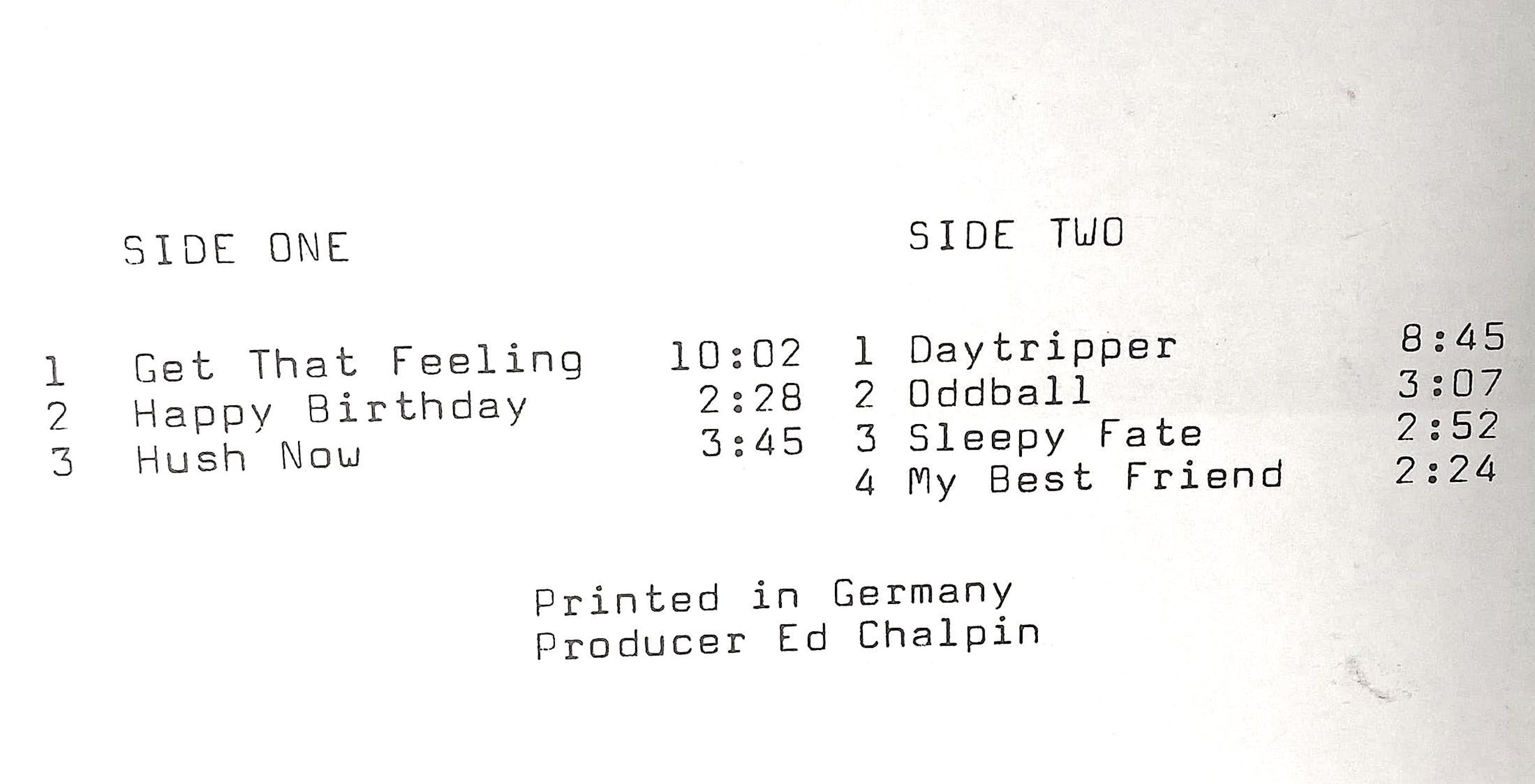 A1 Get That Feeling 10:02 A2 Happy Birthday 2:28 A3 Hush Now 3:45