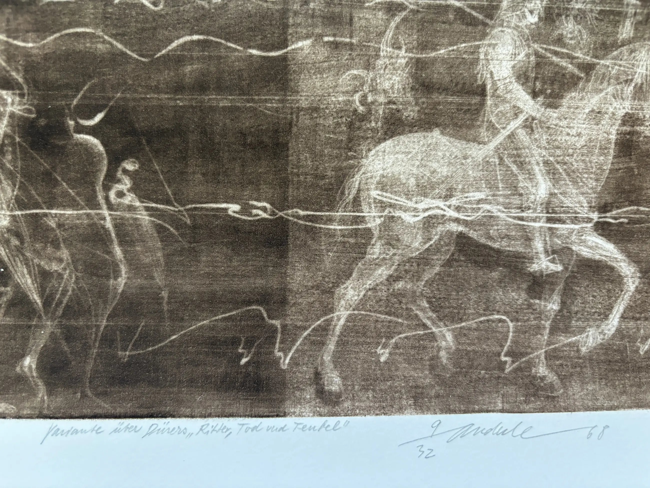ets op papier beeldformaat 64 x 49 cm, handgetekend genummerd