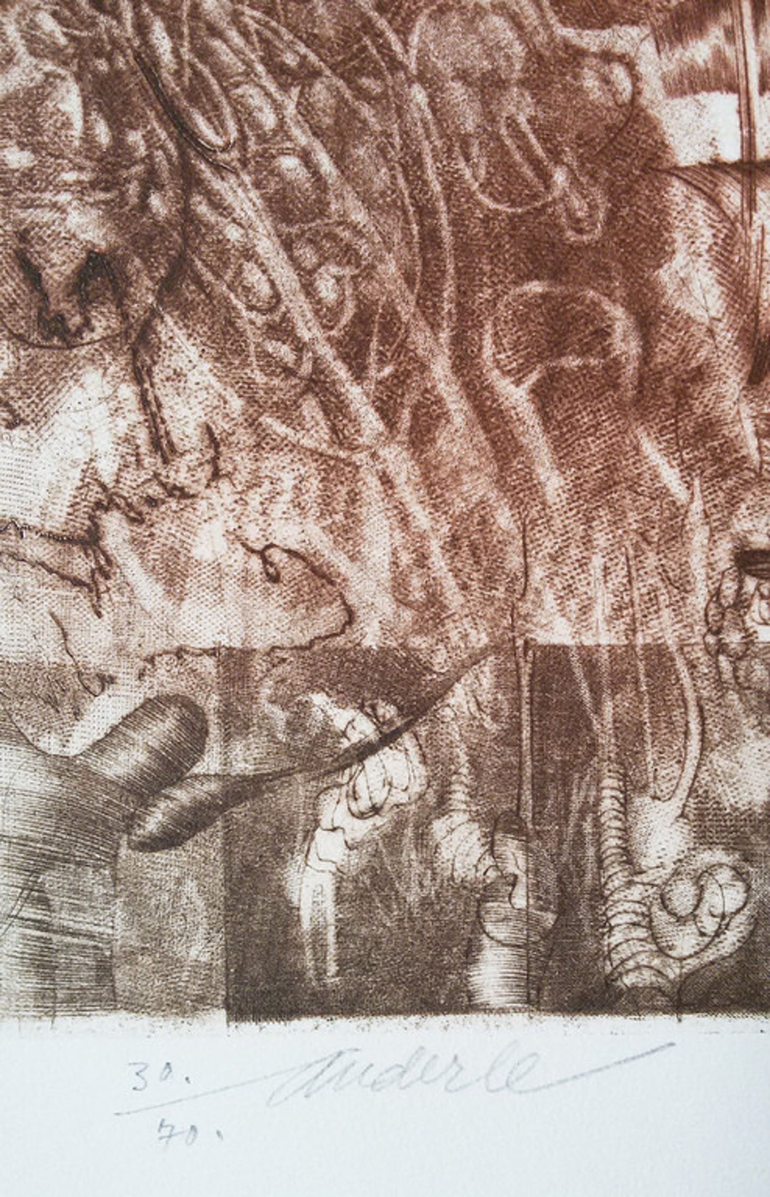 Zeer bekend werk van de wereldberoemde Tsjechische kunstenaar Jiri Anderle. Grote ets uit 1977 op Hahnemühle papier, met potlood gesigneerd en genummerd (30/70). In uitstekende conditie.