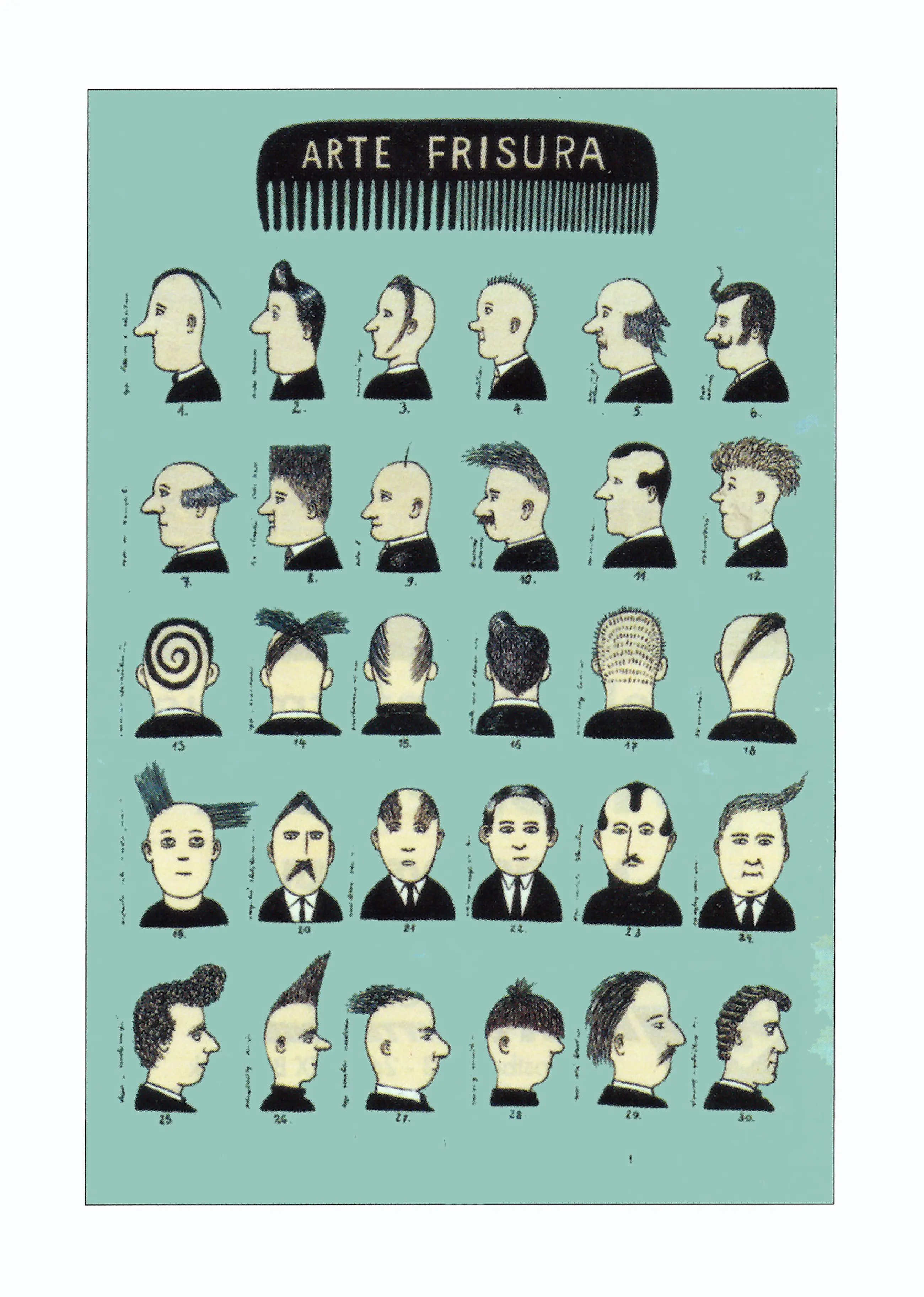 Een echte steendruk (litho) van de Tsjechiscghe kunstenaar Sliva; variaties voor een kapsel