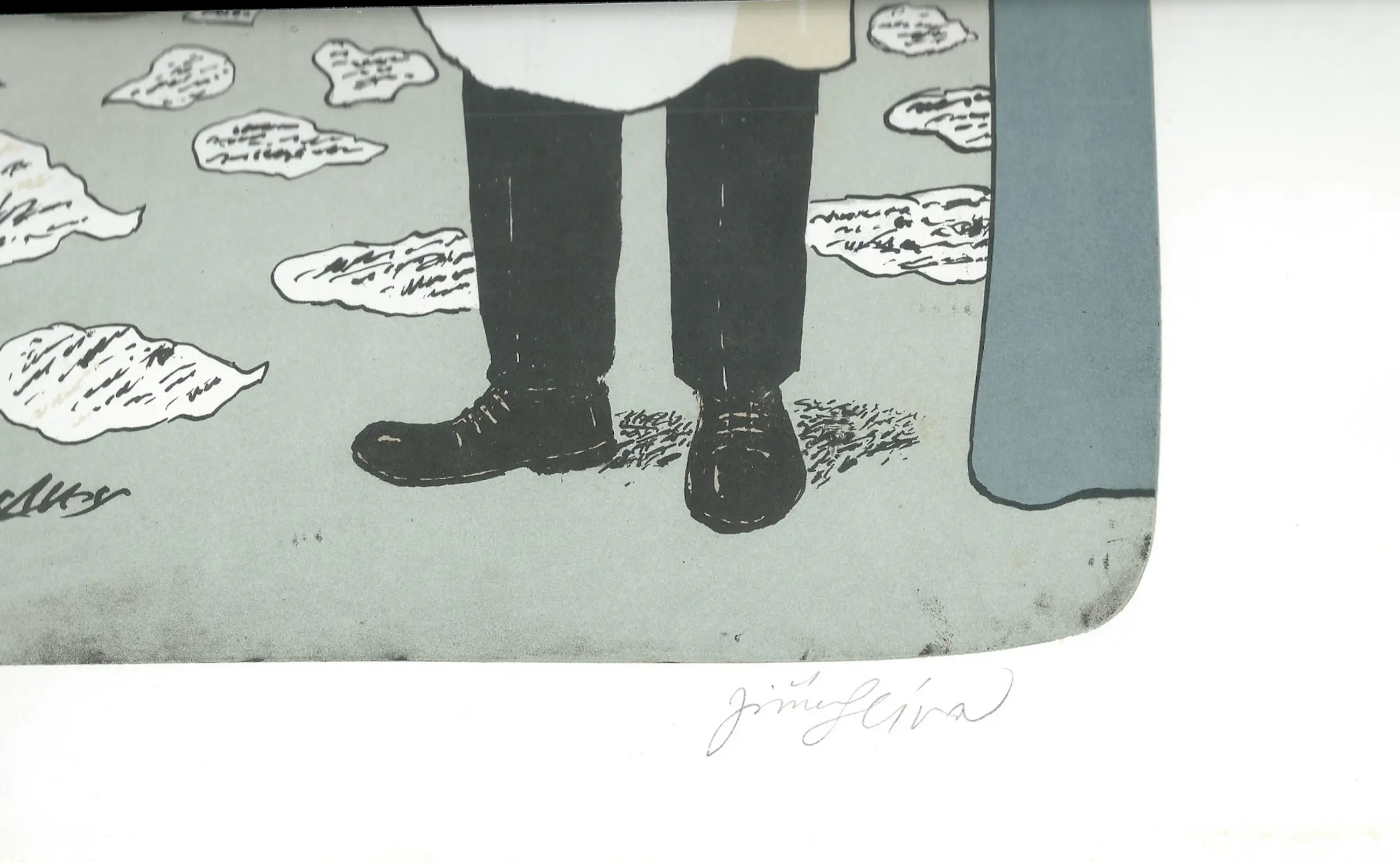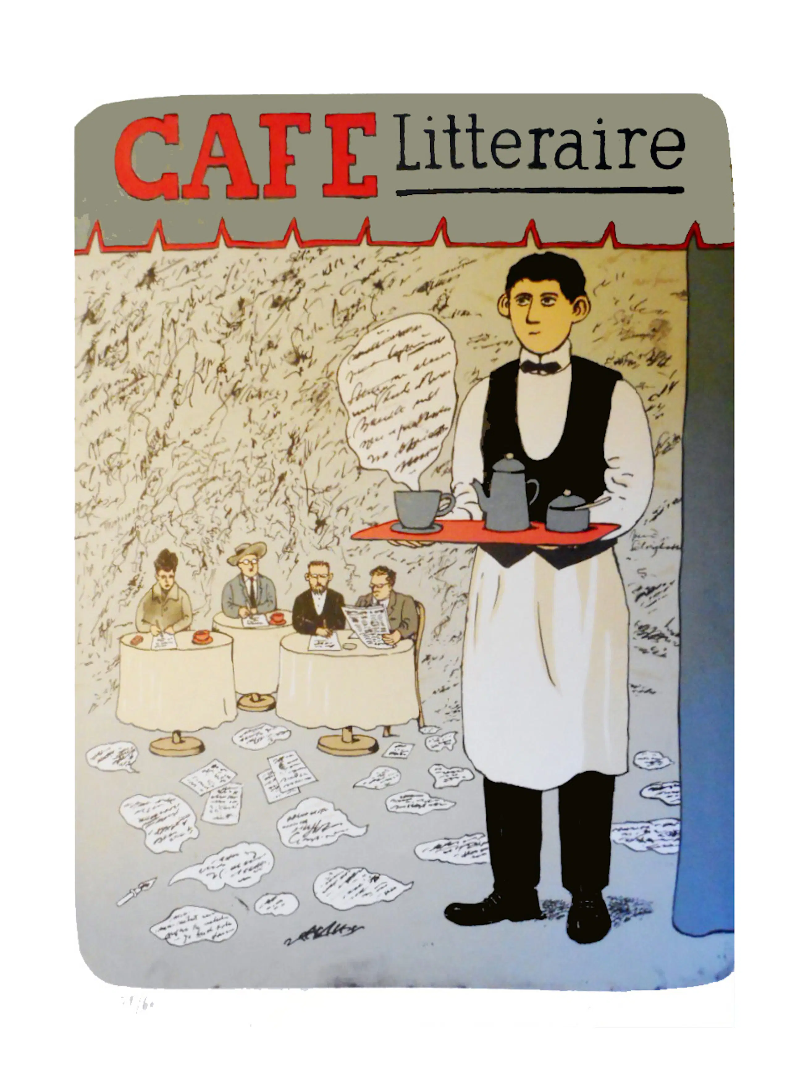 mooi steendruk van Sliva n.a.v. literair café met veel schrijvers die worstelen met hun geschriften